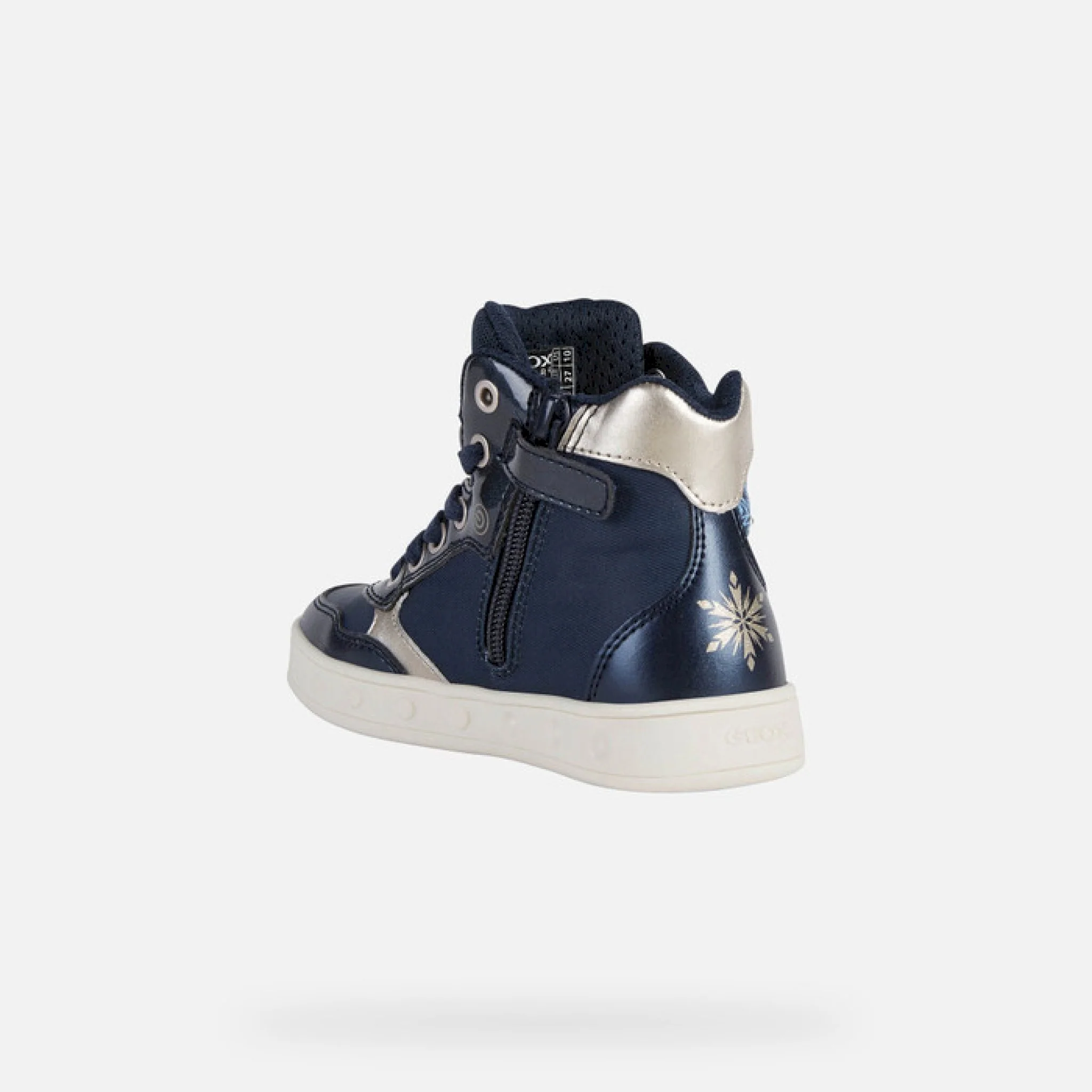 Sneaker mid-cut bambina, con suola dotata di luci, ispirata a frozen 2. resa unica dalle inconfondibili decorazioni disney, la sneaker mid-cut skylin propone una tomaia in tessuto stampato sui toni del blu navy e del platino con incantevoli stampe di elsa sui lati. rifinita con dettagli in materiale effetto pelle perlata, è progettata per donare al piede un comfort e un benessere superiori.