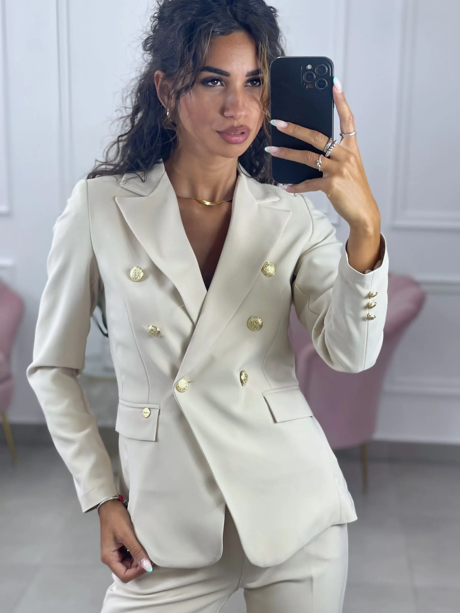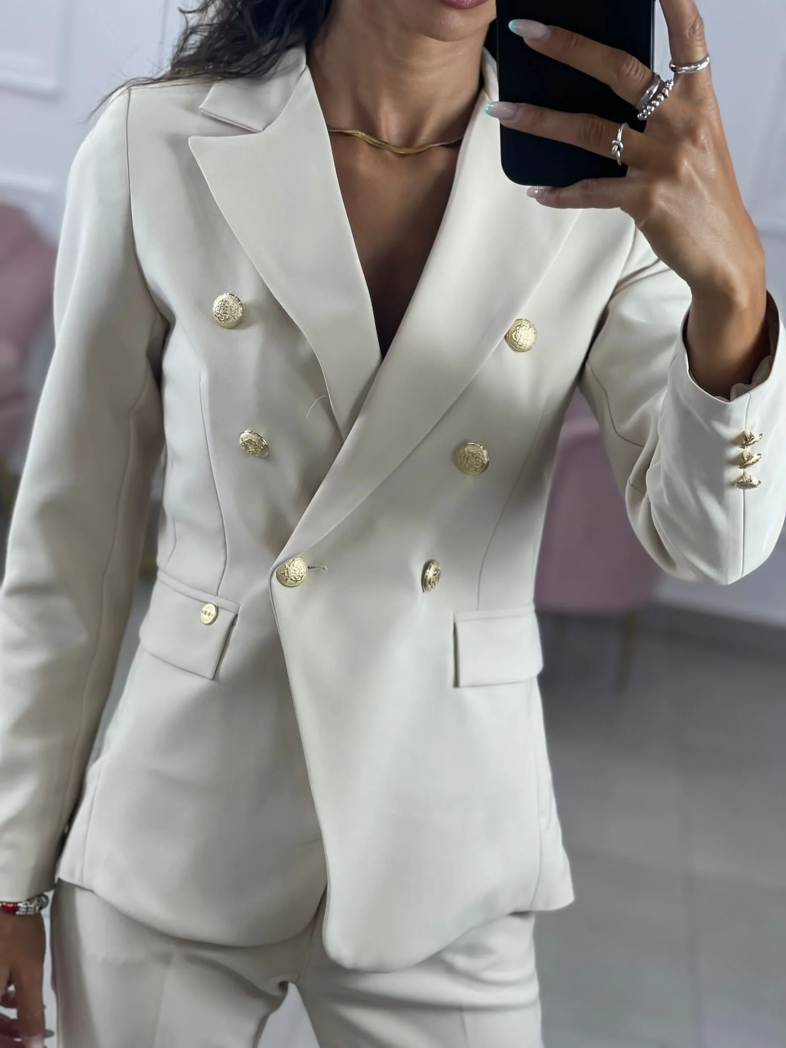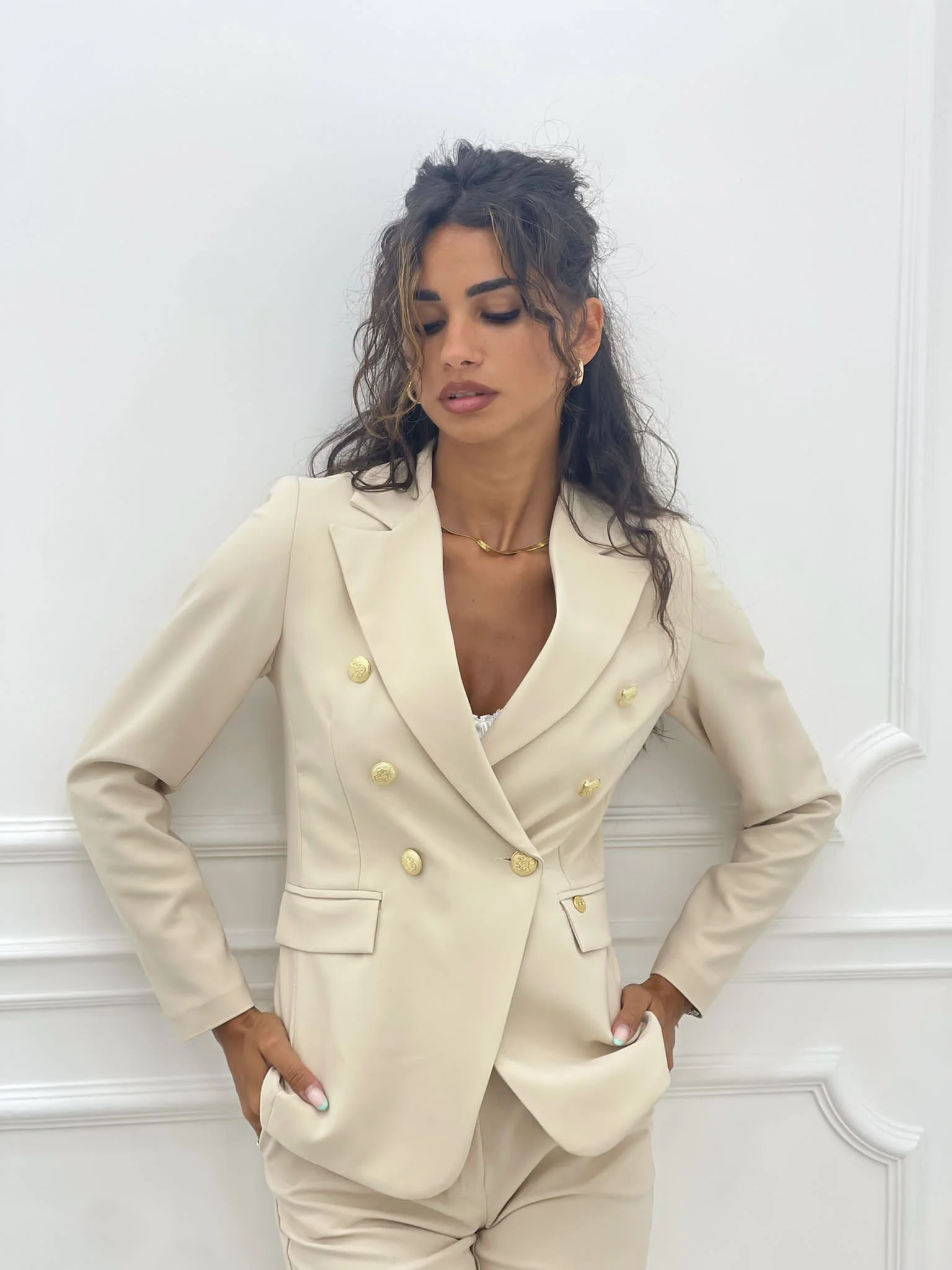 Giacca doppio petto con bottoni oro top quality , tasche finte. Foderata all’interno