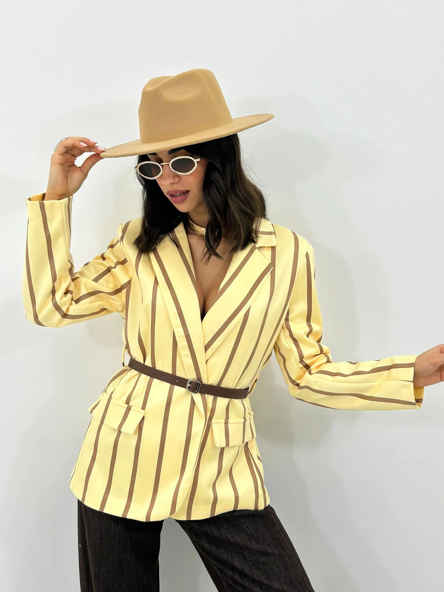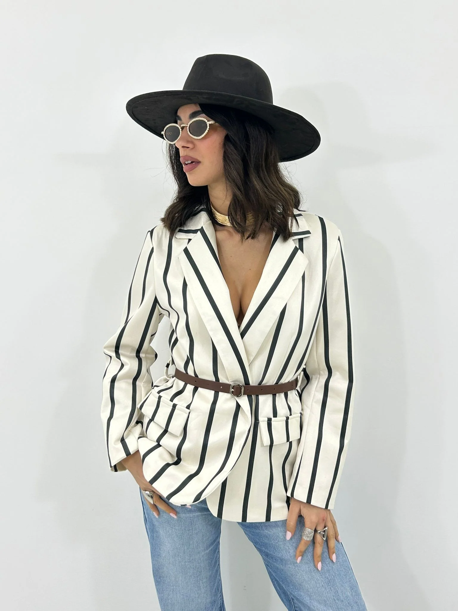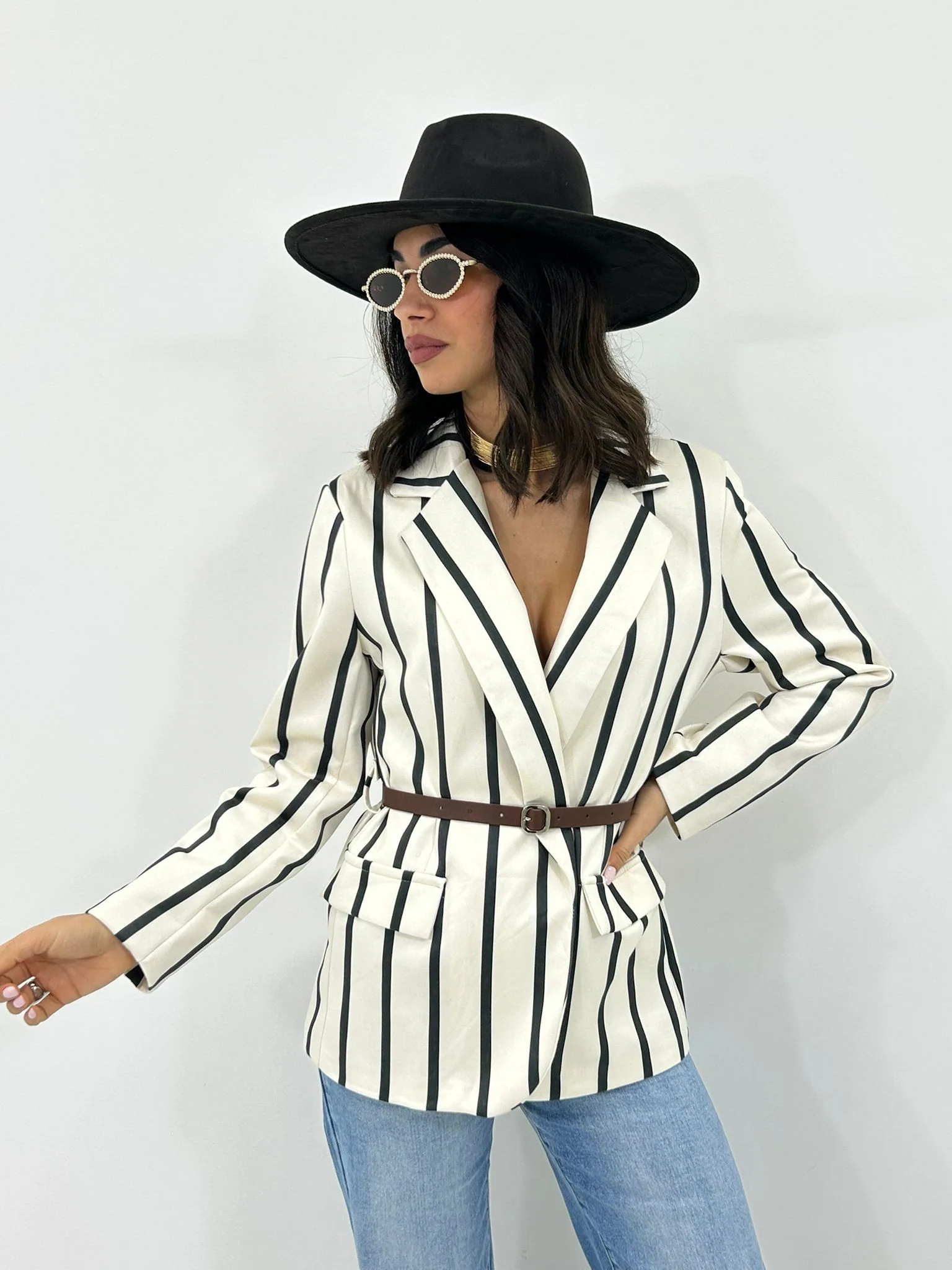 Giacca scamosciata fantasia righe con cinturino,interno foderata