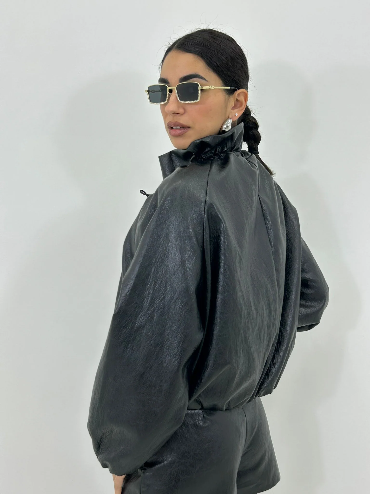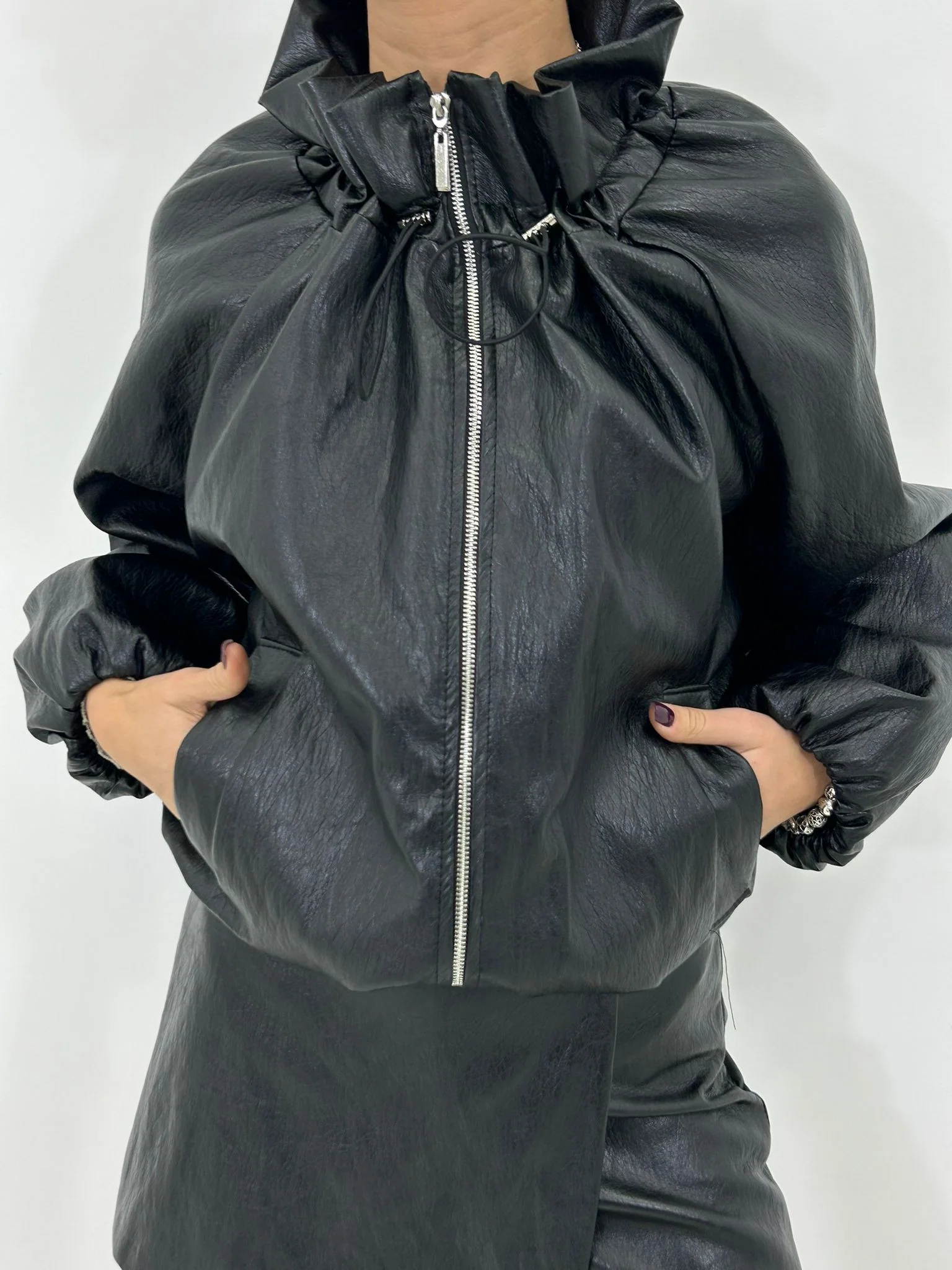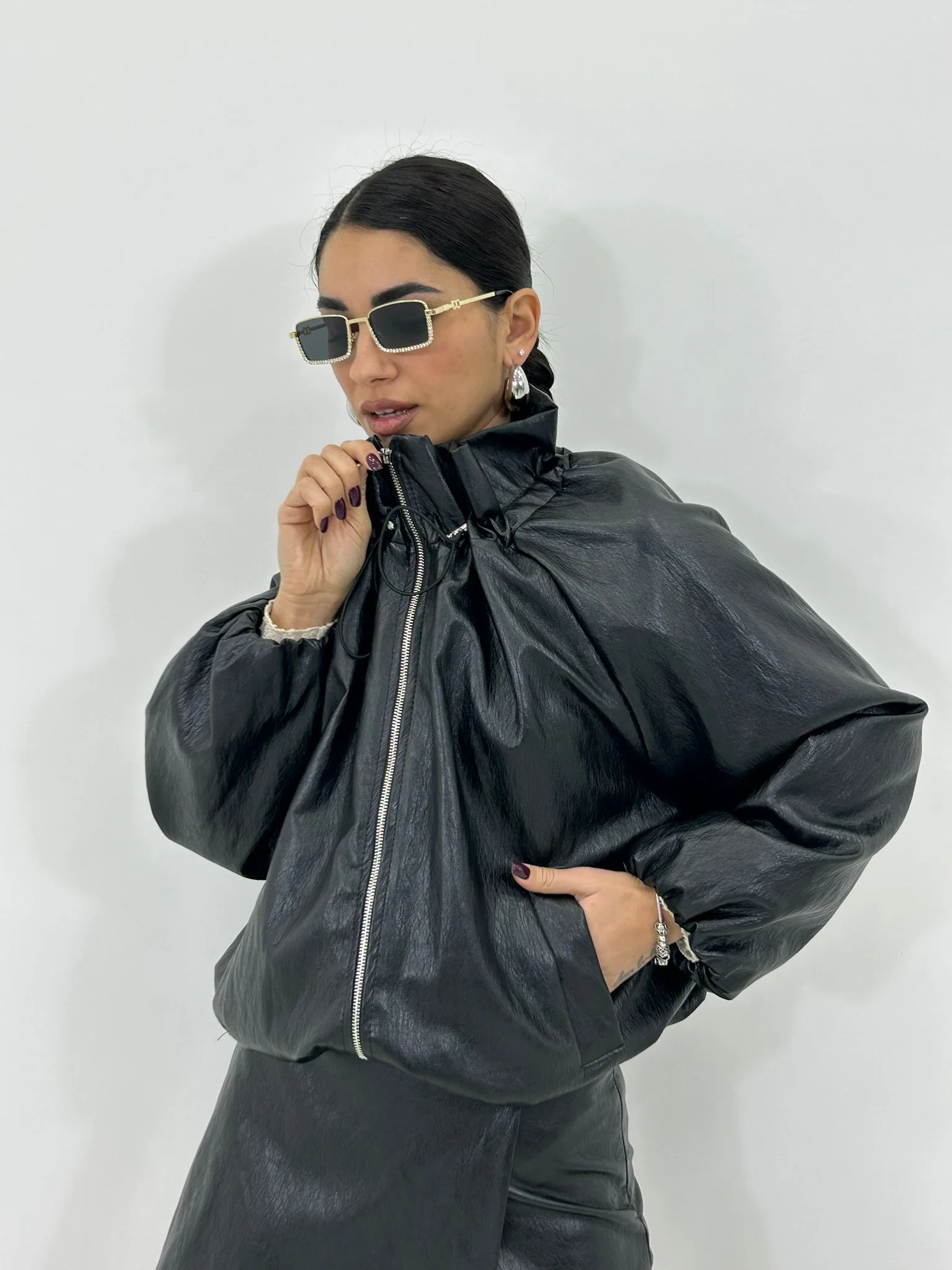 Giubbino balloon in ecopelle con collo arricciato,interno foderato