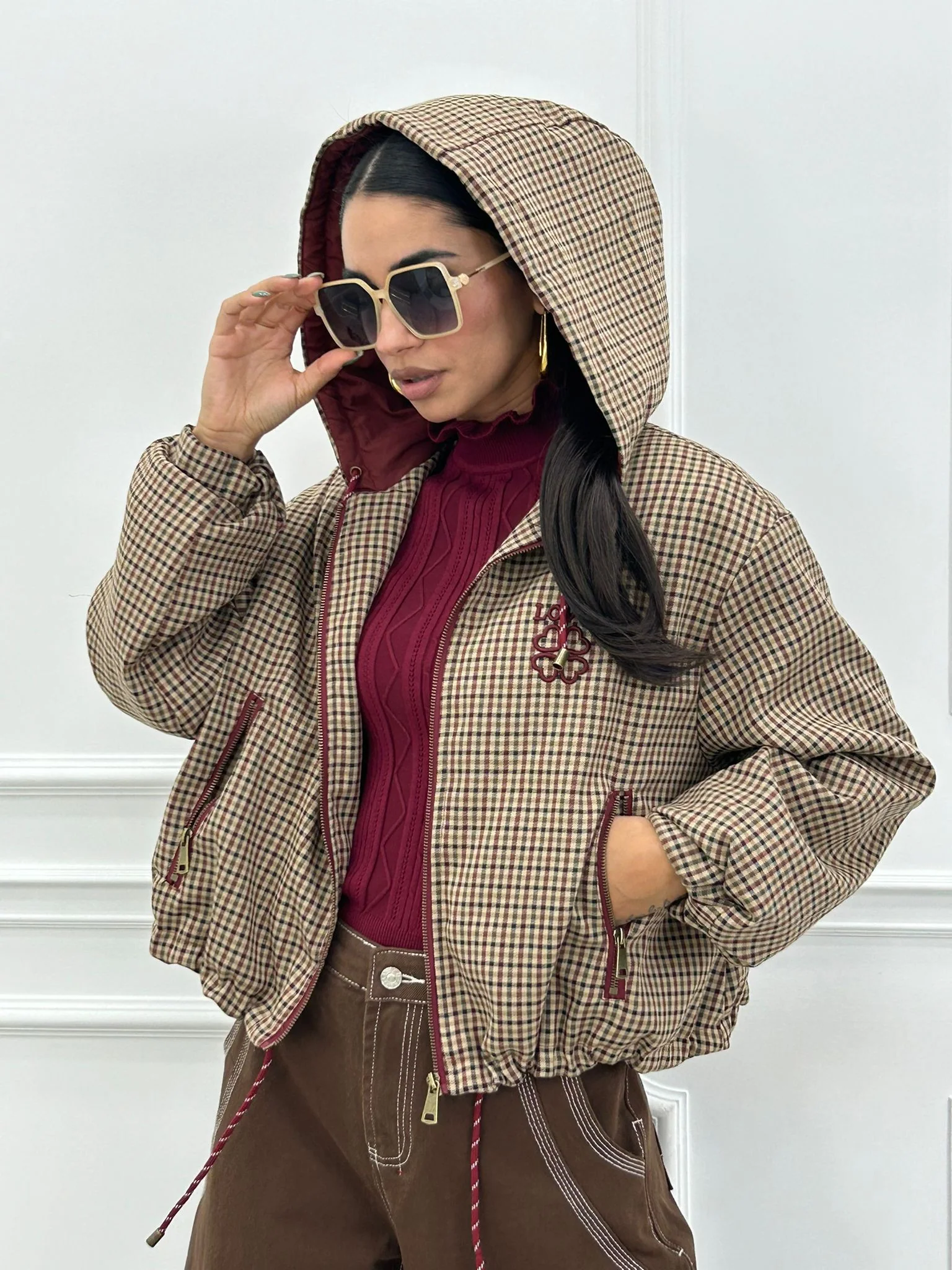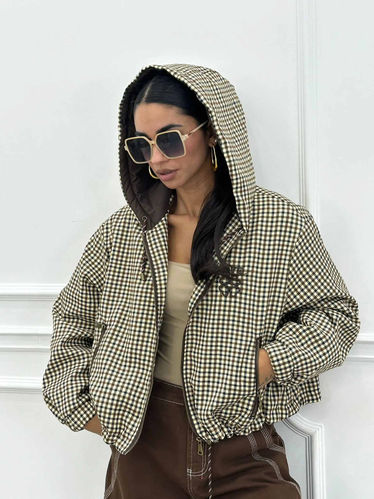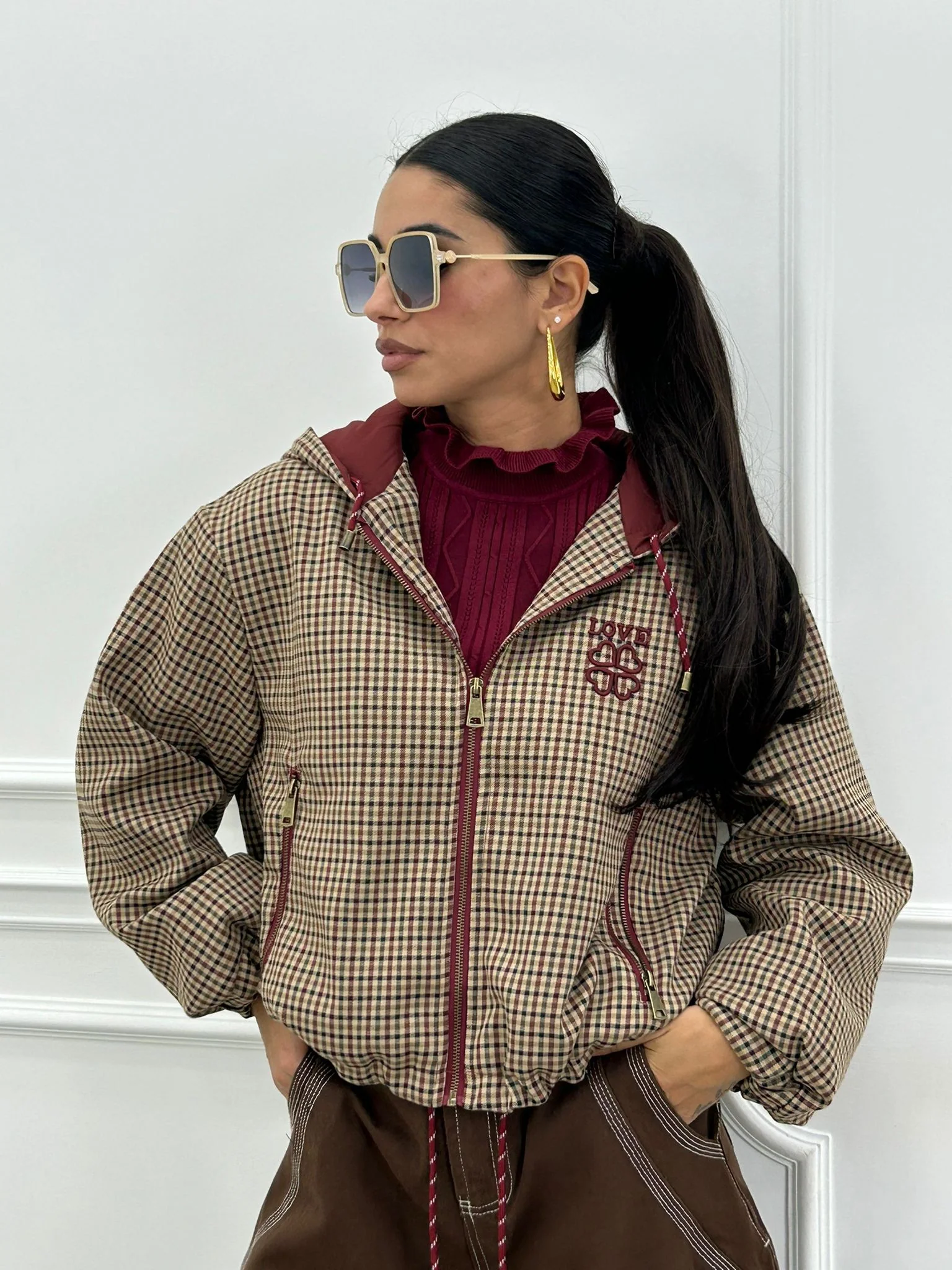 Giubbino tartan con zip ,cappuccio , laccio regolabile e tasche
