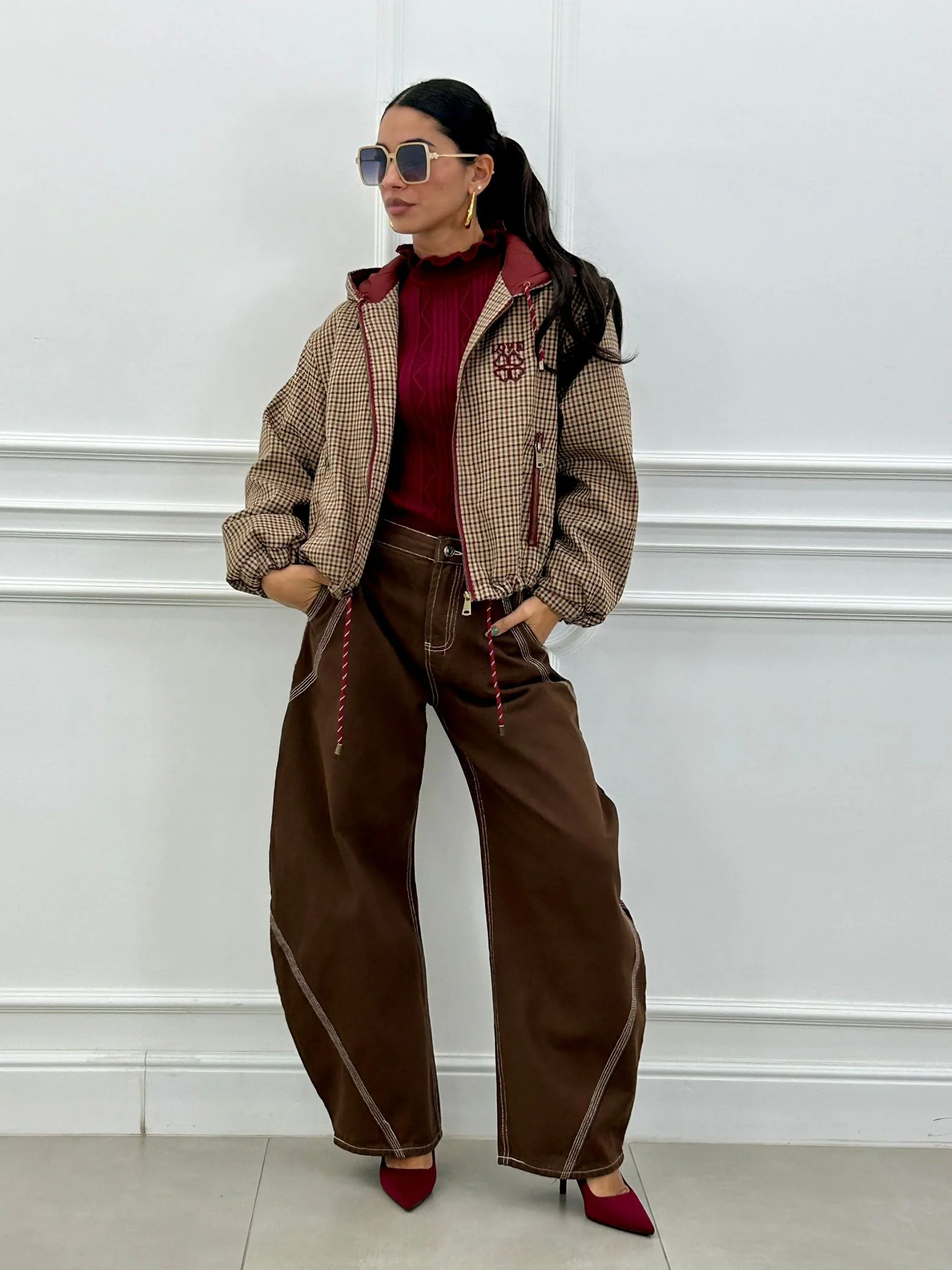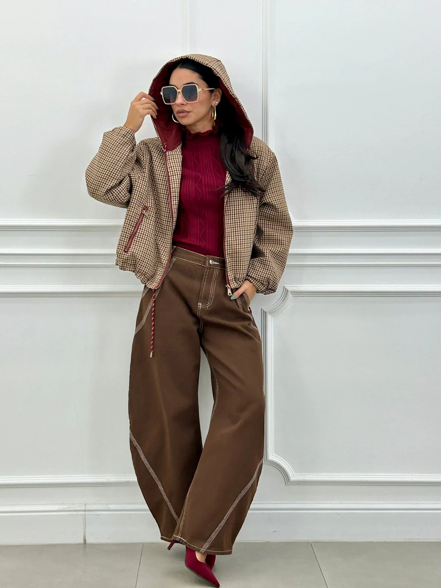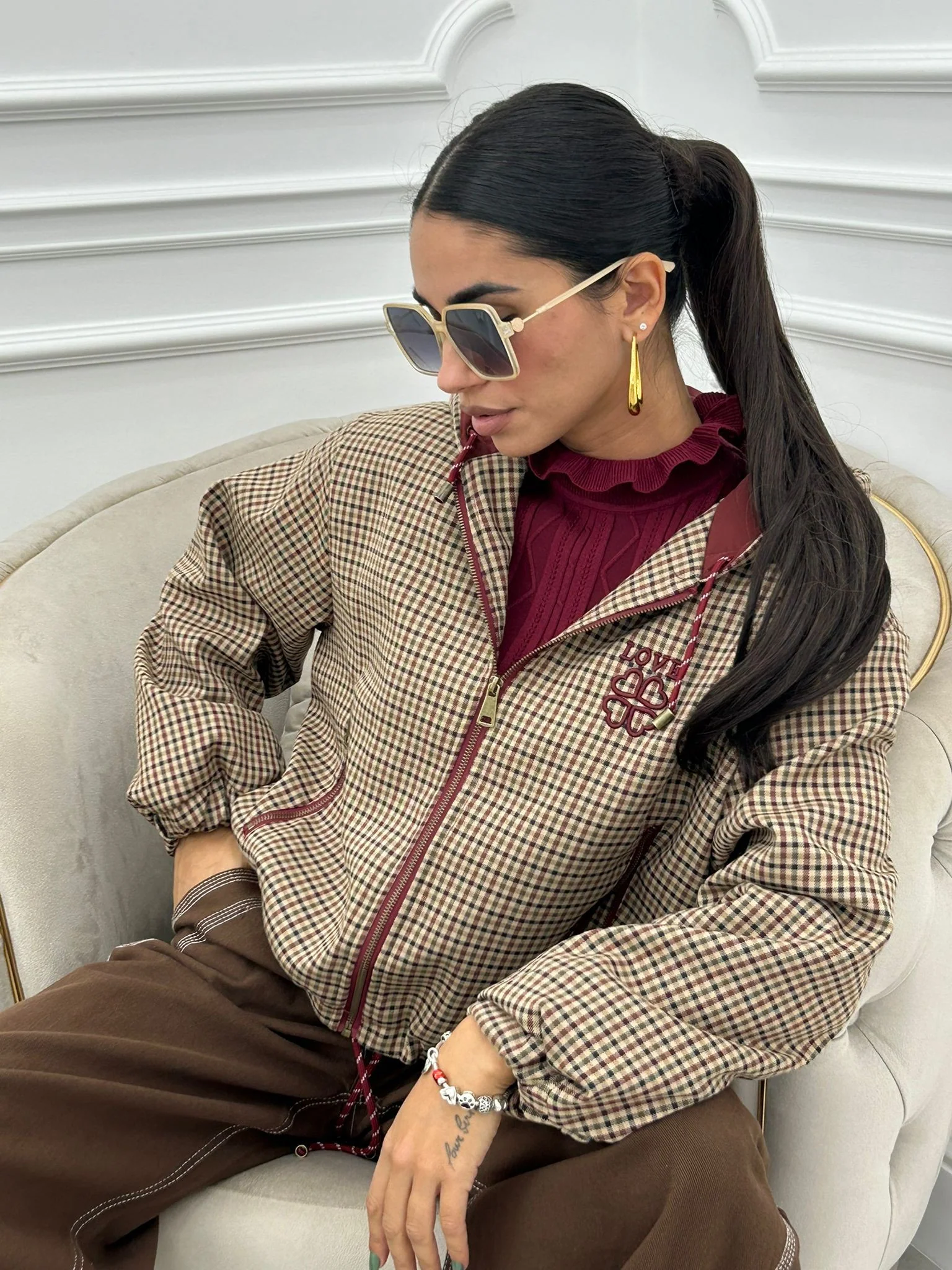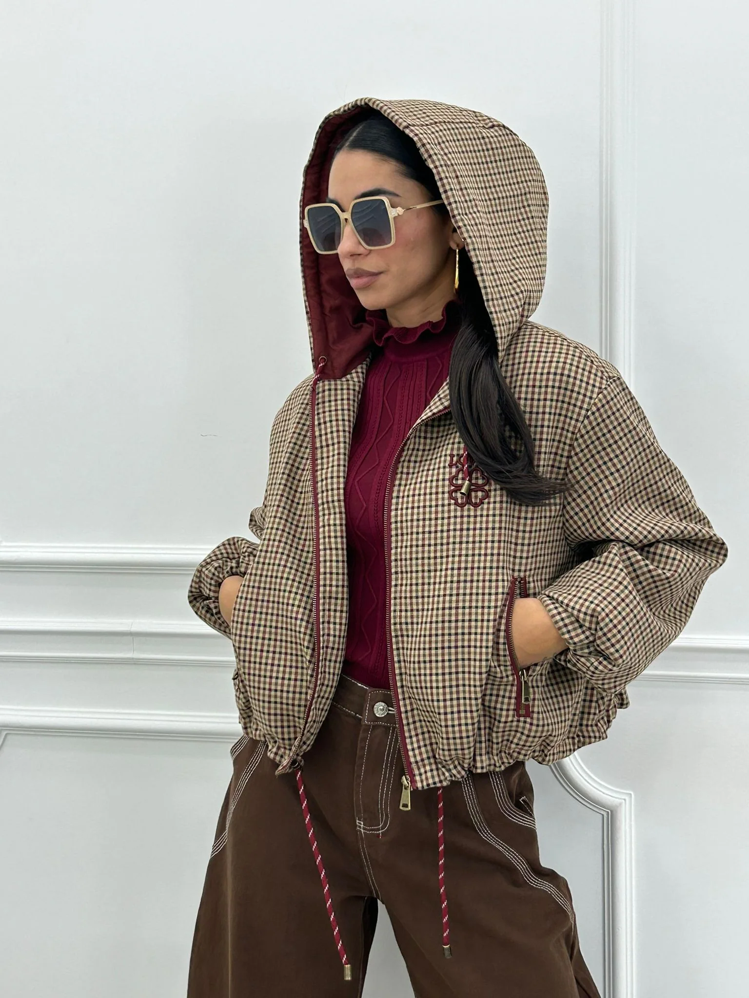Giubbino tartan con zip ,cappuccio , laccio regolabile e tasche