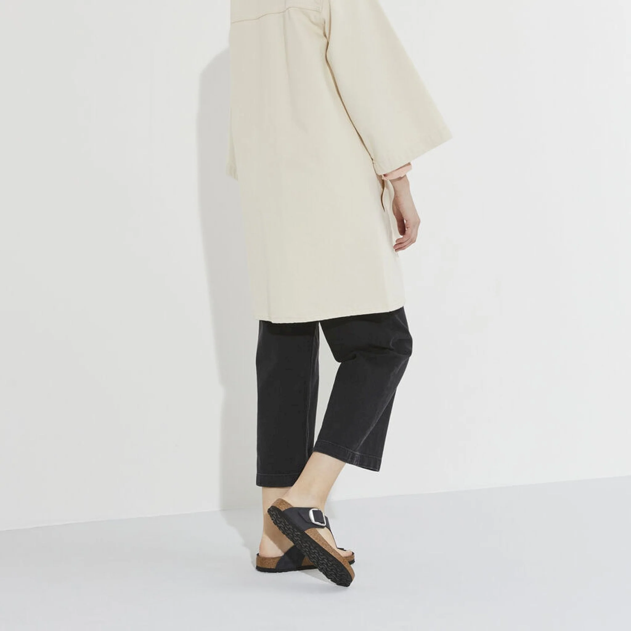 Il modello birkenstock gizeh unisce il design minimalista e alla moda a una stabilità ottimale: un vero classico. la variante big buckle presenta una fibbia ad ardiglione grande ed elegante, un bel particolare che spicca su questi sandali molto sobri. il sottopiede del plantare semi-exquisit è rivestito in morbida pelle liscia in colore coordinato alla scarpa. la tomaia è in pelle nabuk oliata particolarmente spessa, lavorata a cuciture aperte.