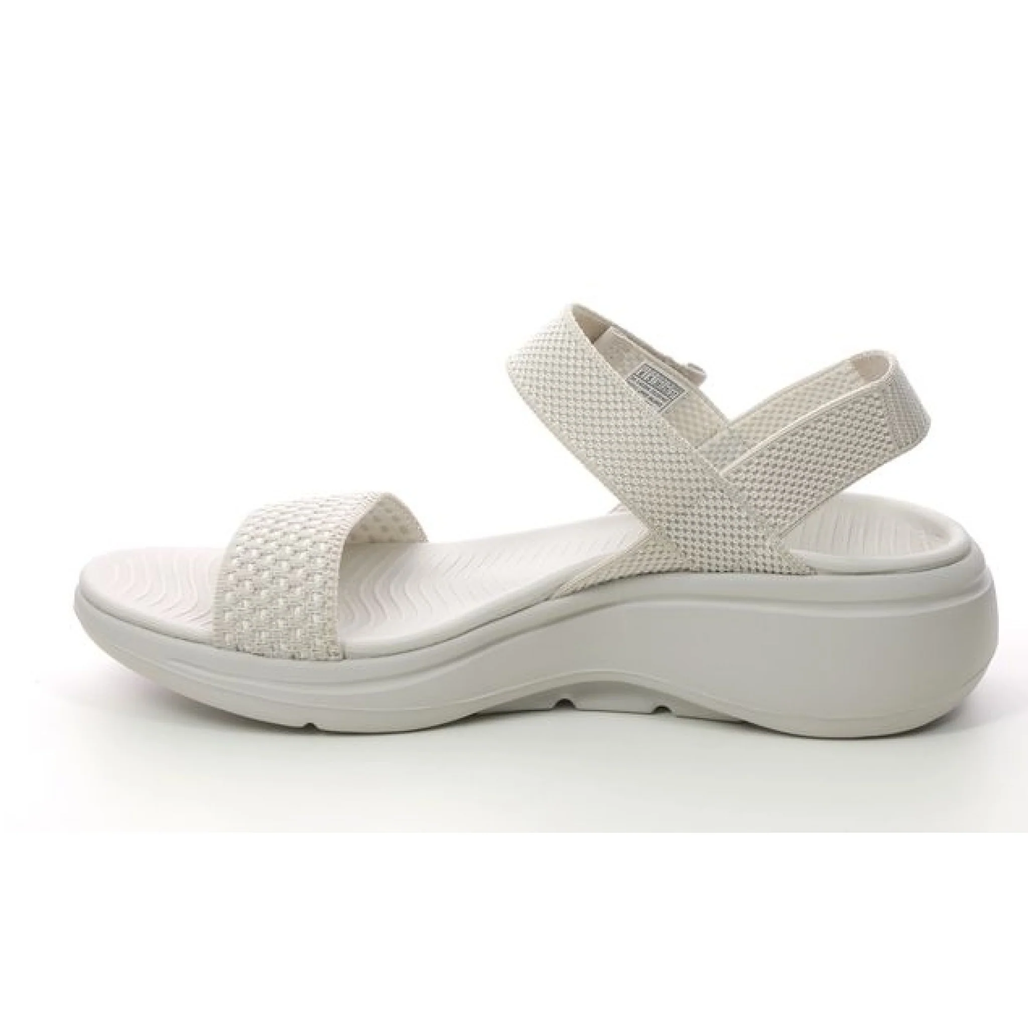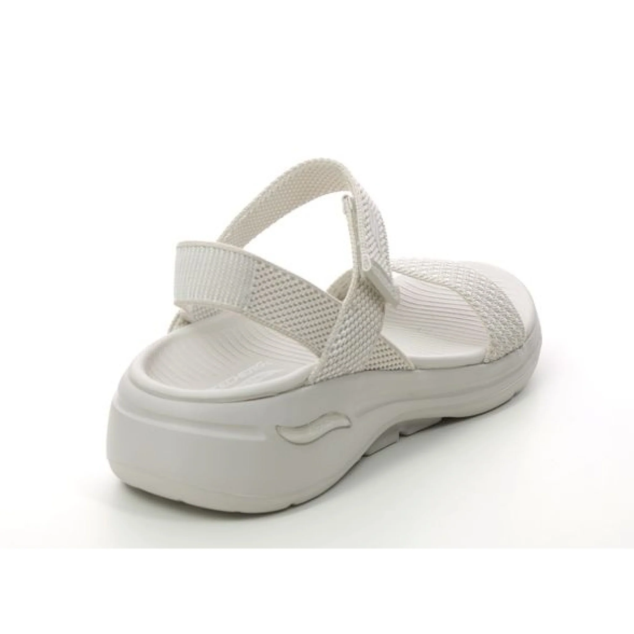 Lo stile per la stagione calda e il comfort di supporto si uniscono nel sandalo skechers go walk® arch fit® – lucido. questo sandalo progettato da arch fit® presenta una tomaia con cinturino in maglia con chiusura a strappo, plantare sagomato goga mat®, leggera ammortizzazione ultra go® e comfort pillar technology® per un maggiore supporto.