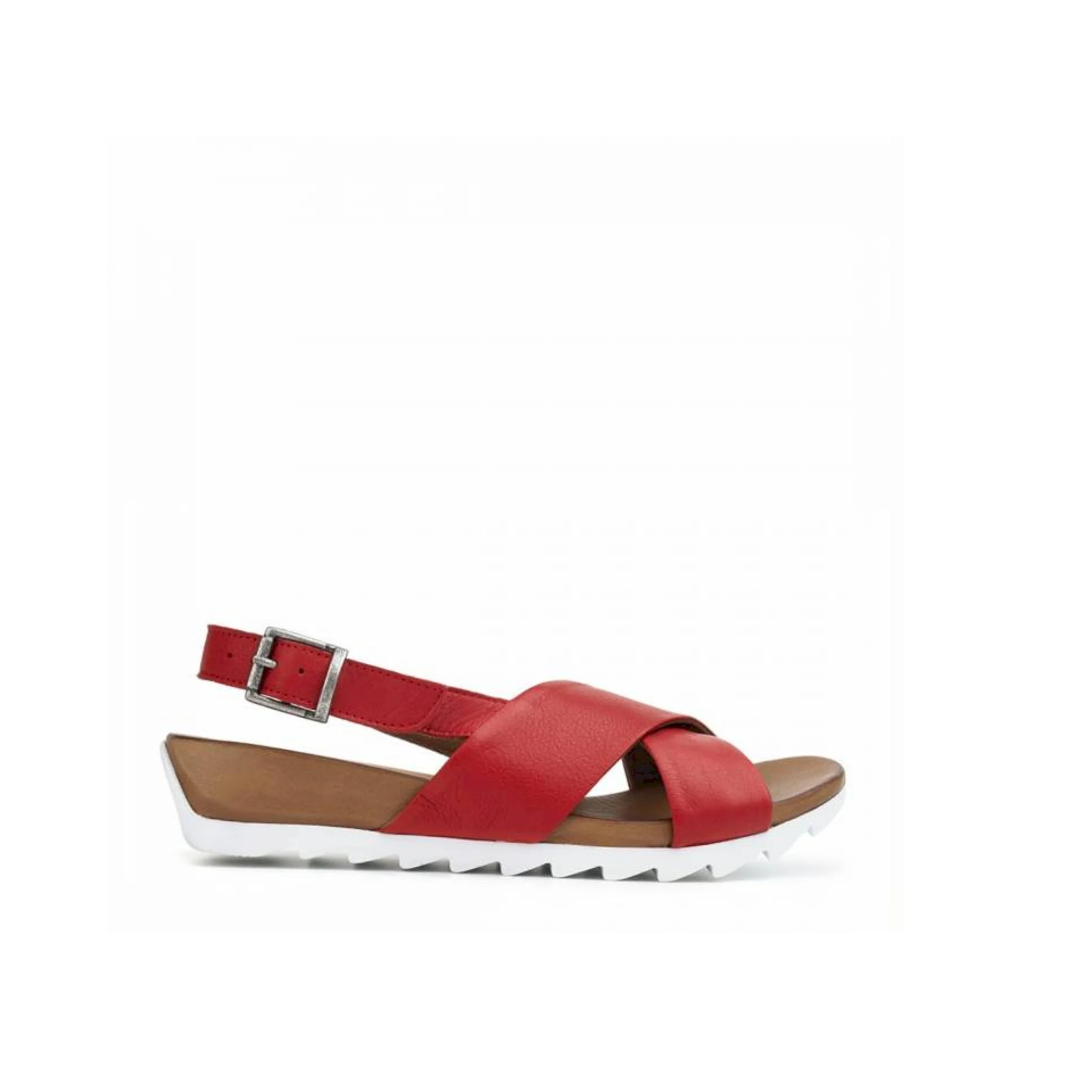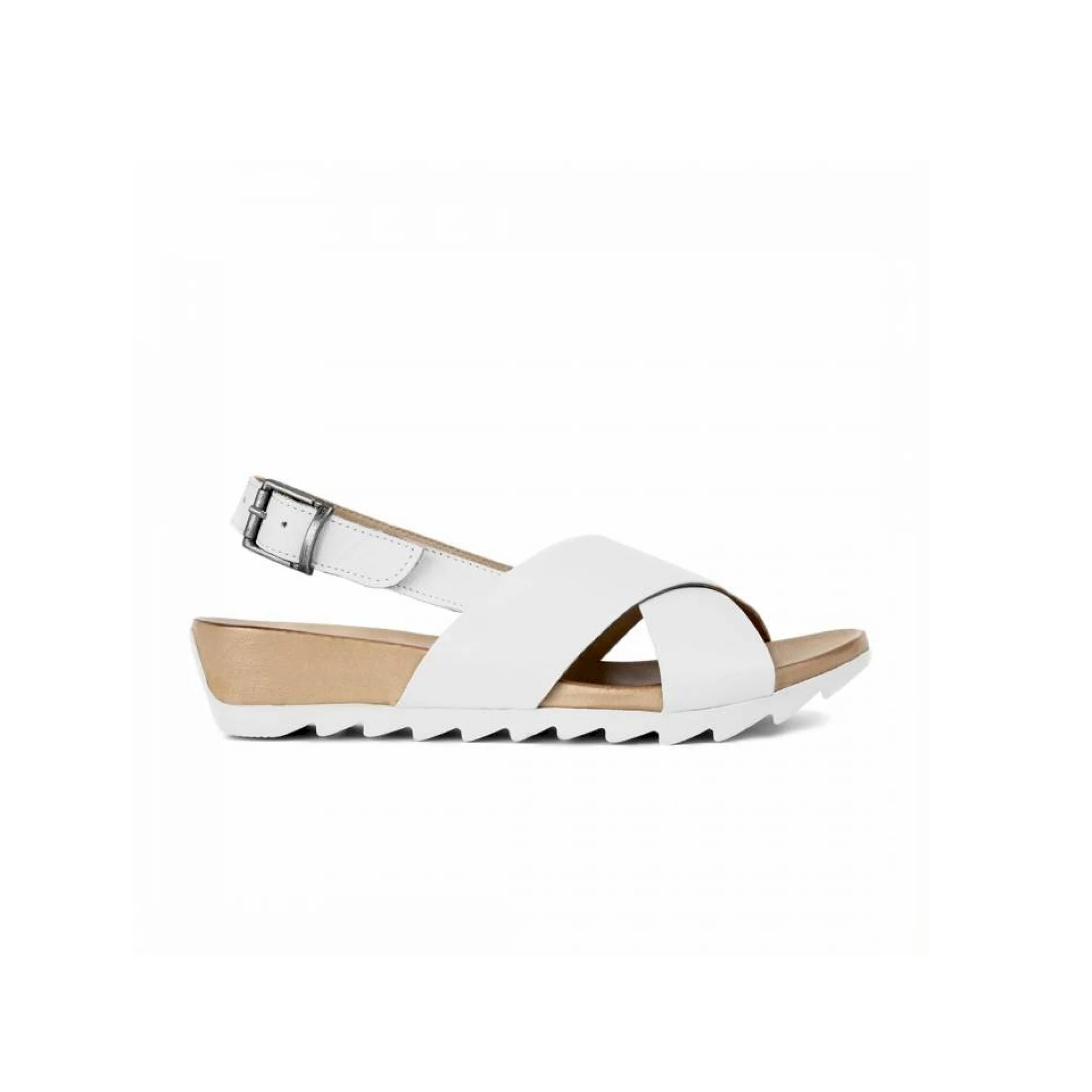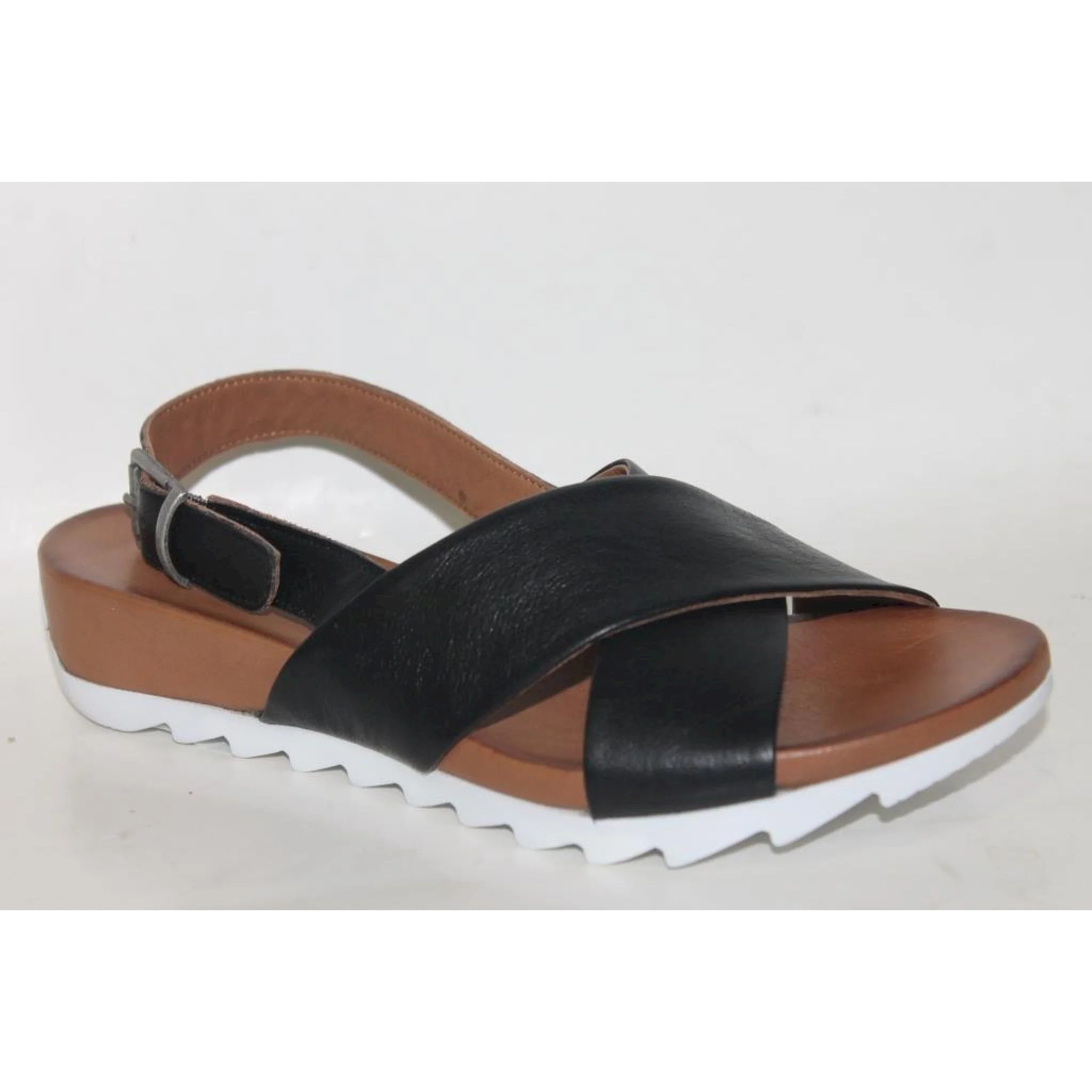 Sandalo basso con incrocio in pelle e suola zigrinata