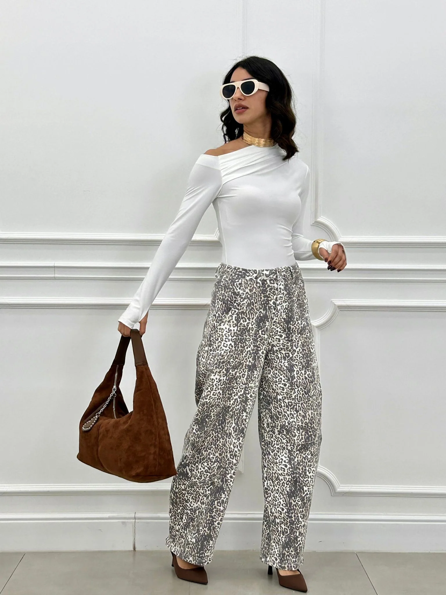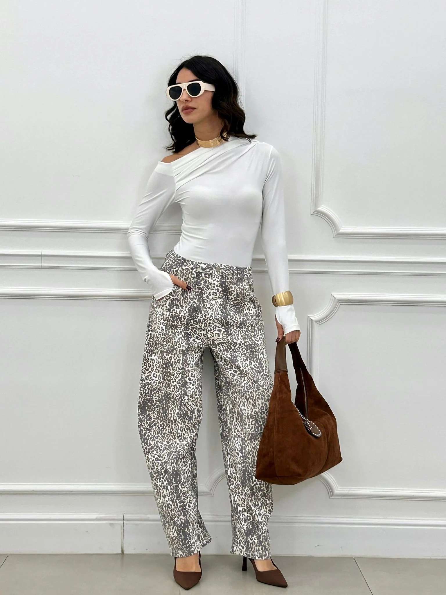 Jeans balloon leopardato