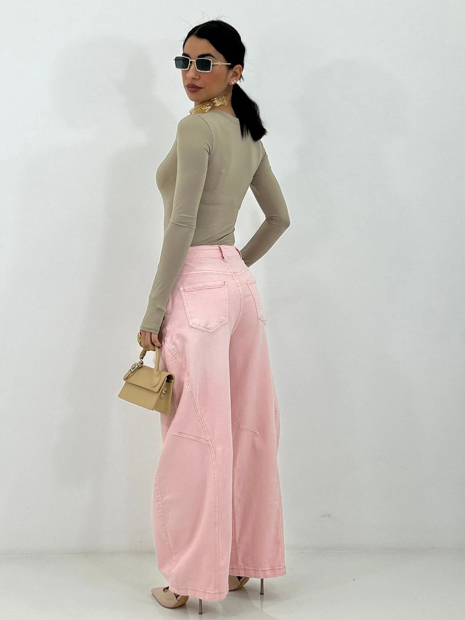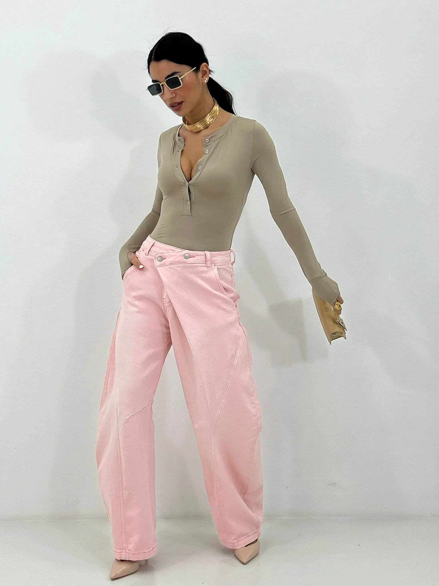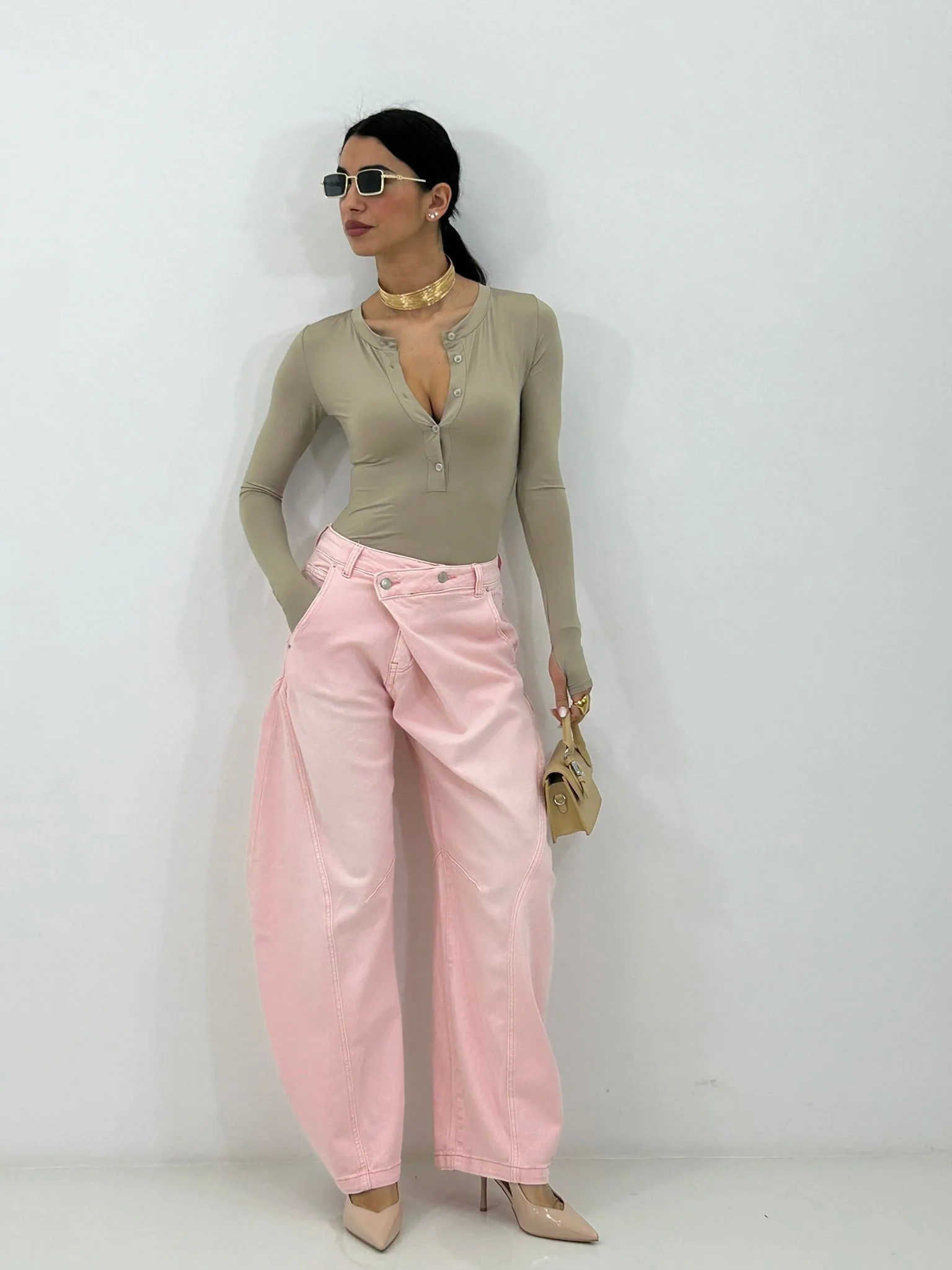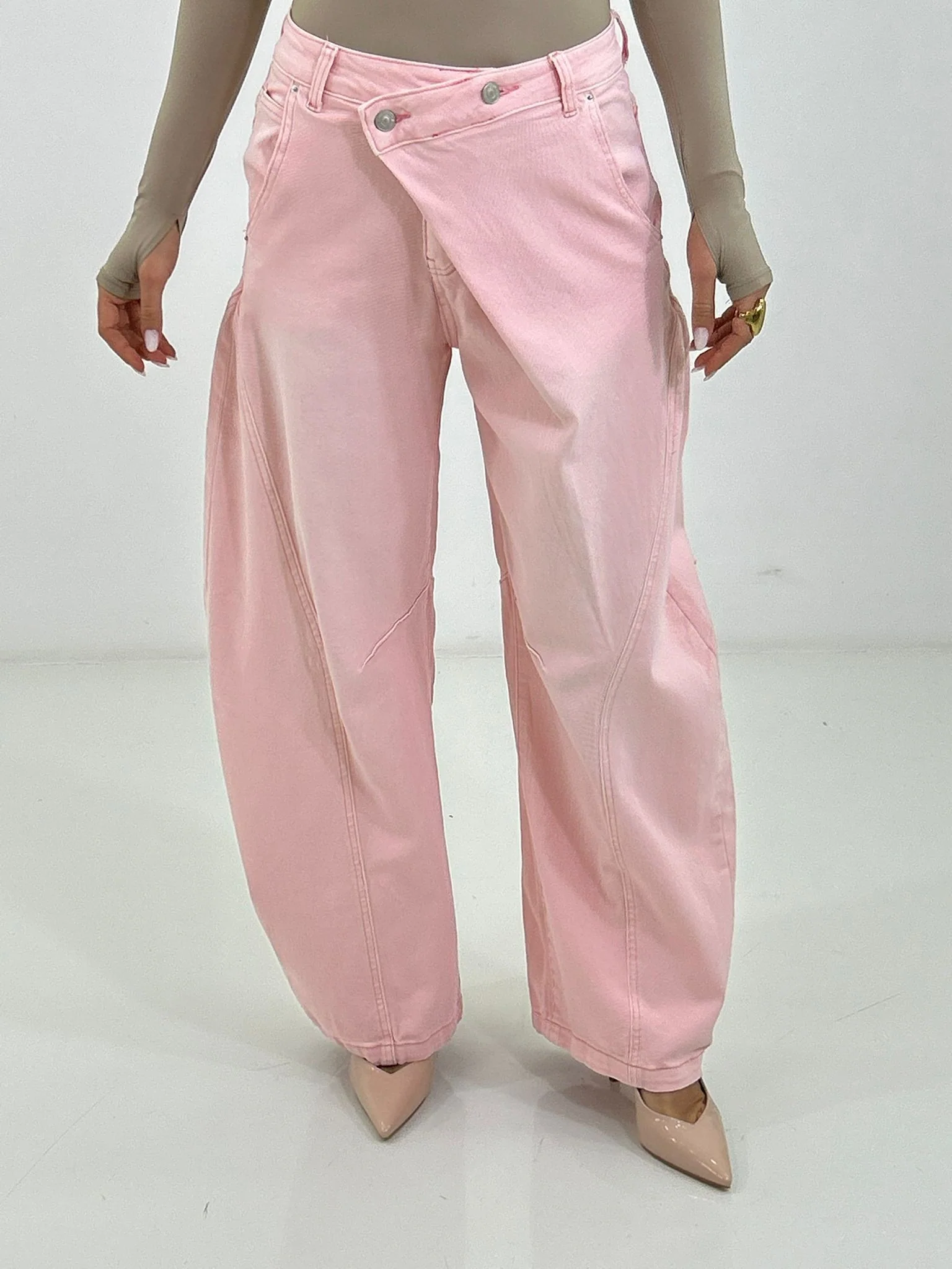 Jeans balloon con bottone trasversale