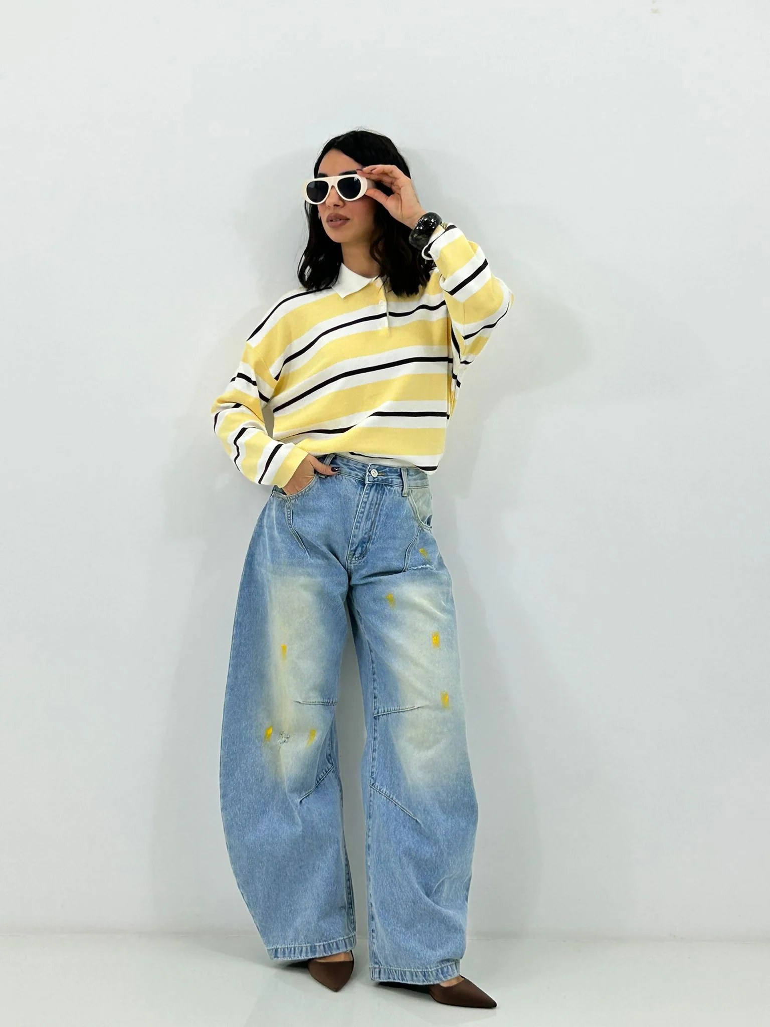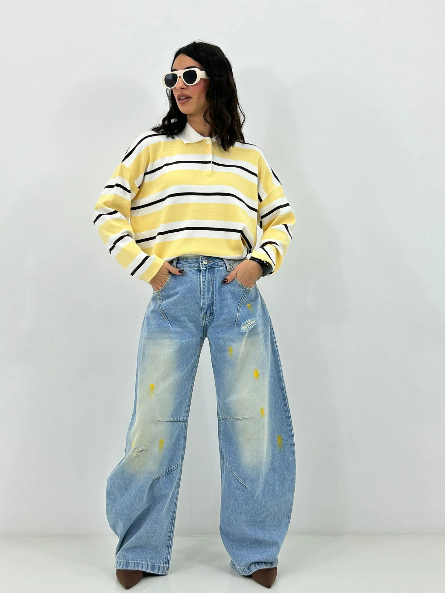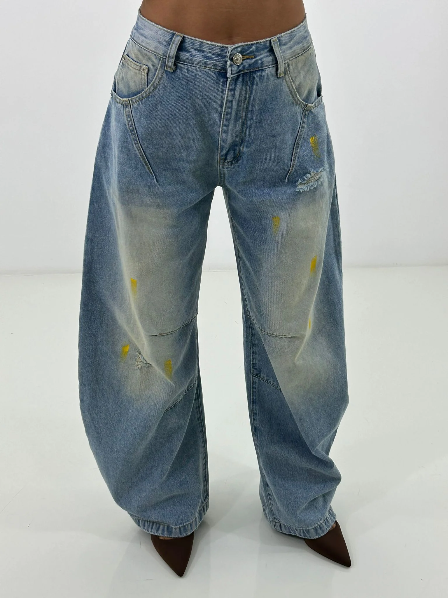 Jeans balloon con strappi e colori