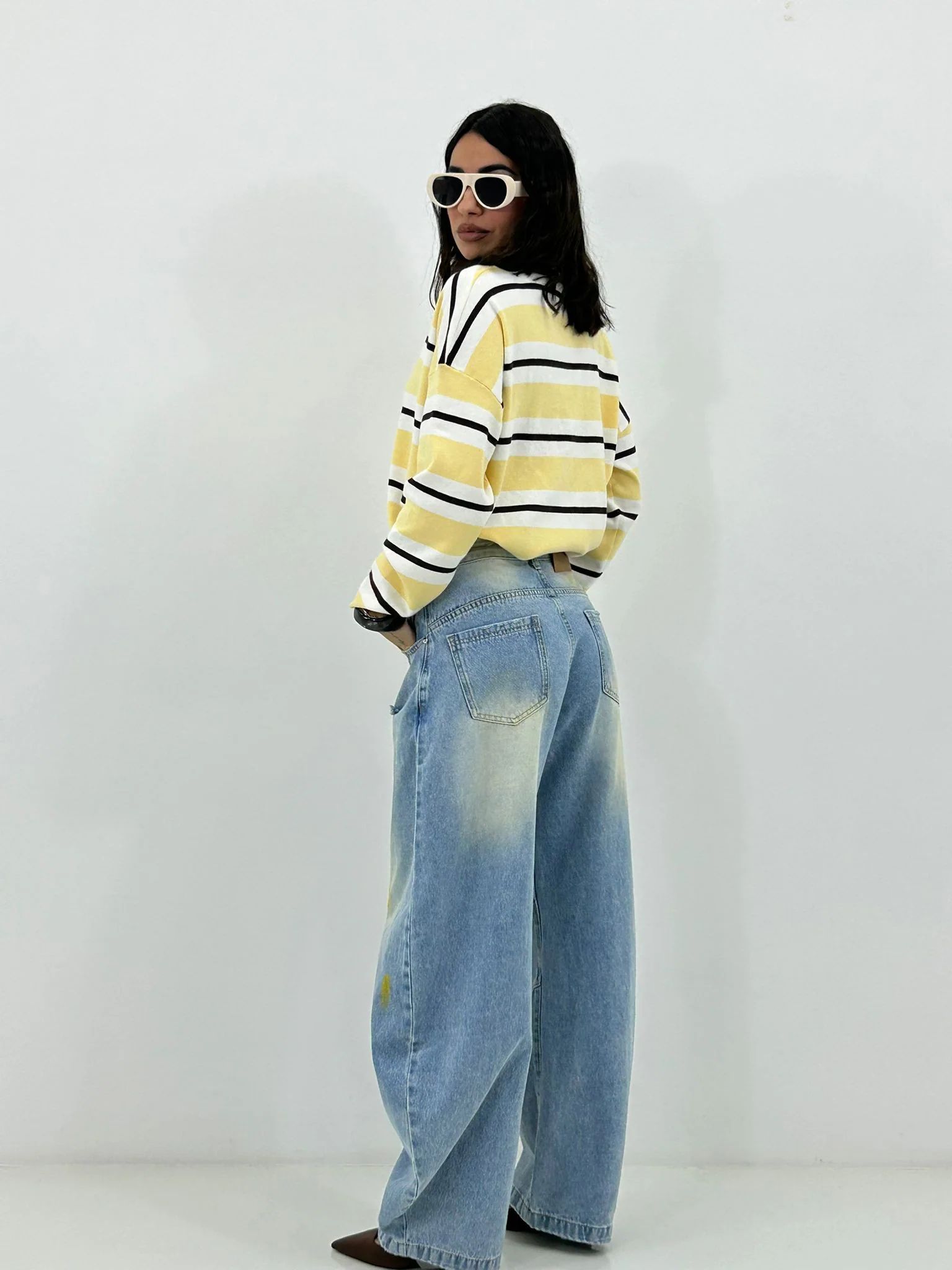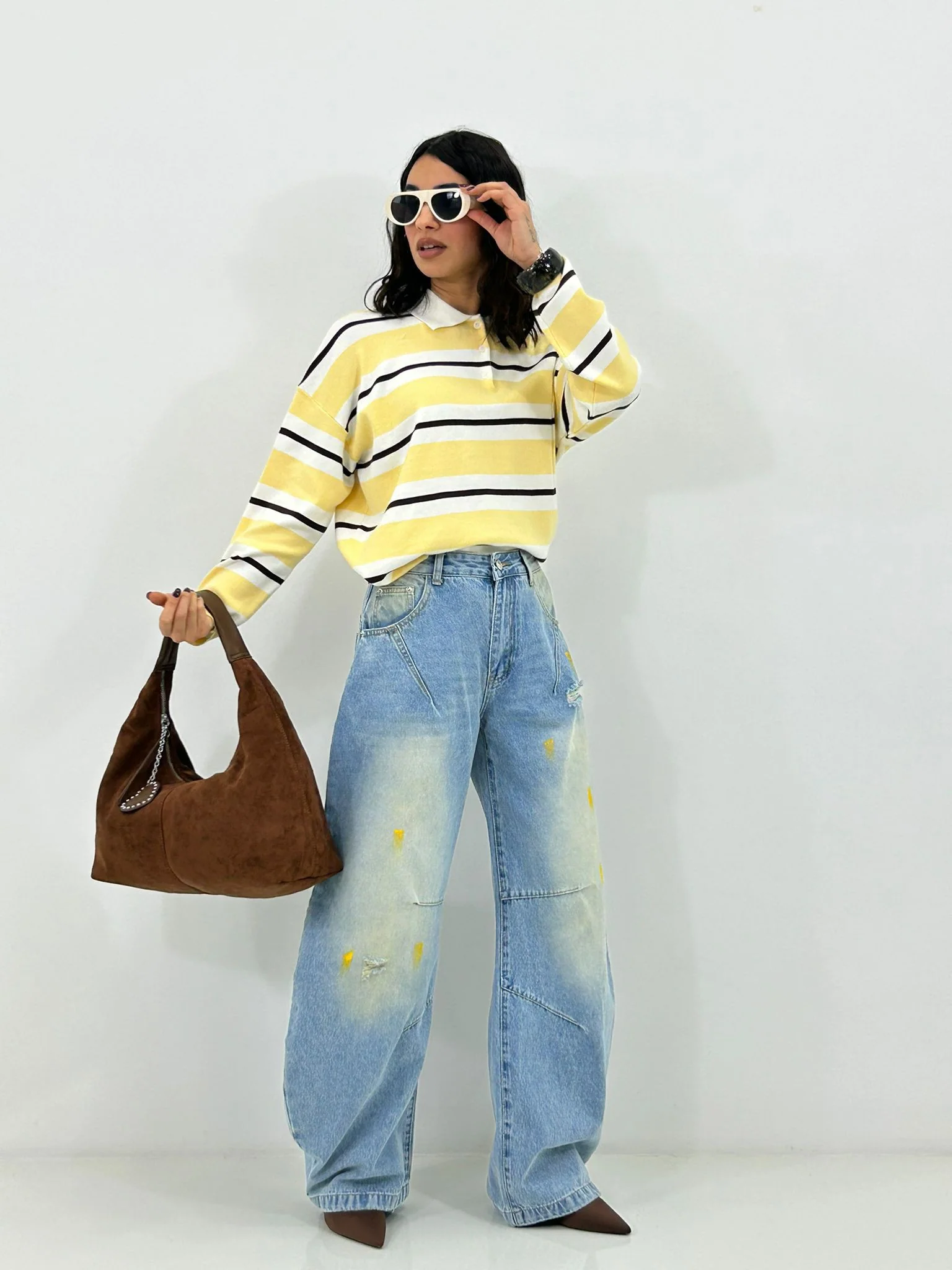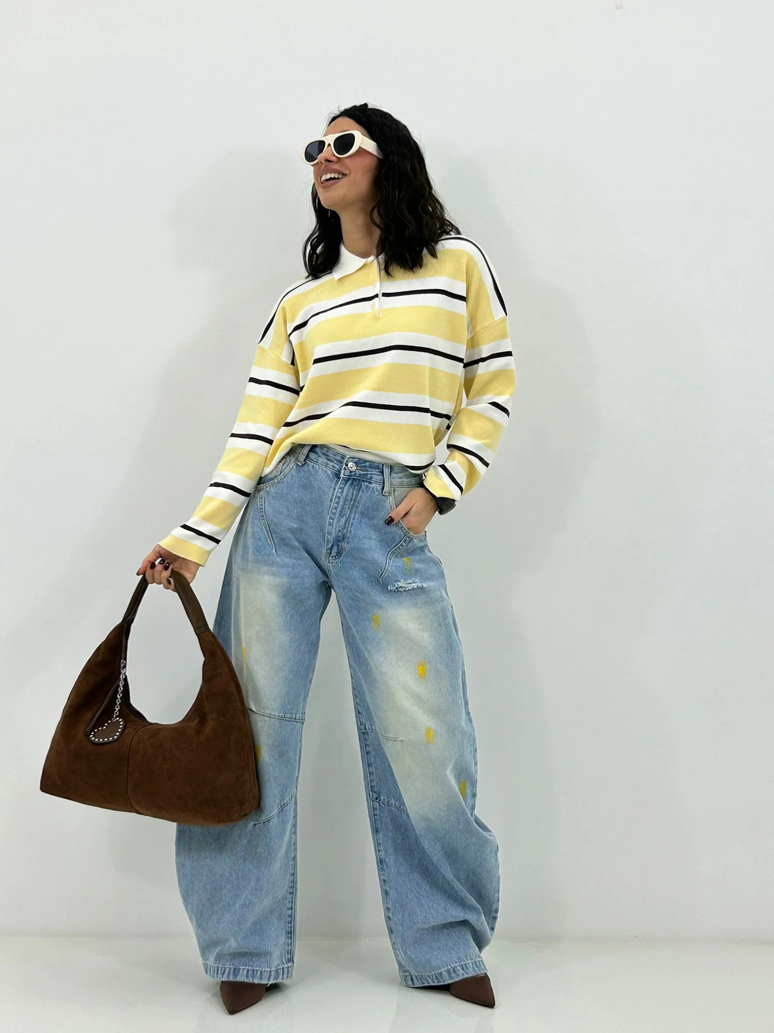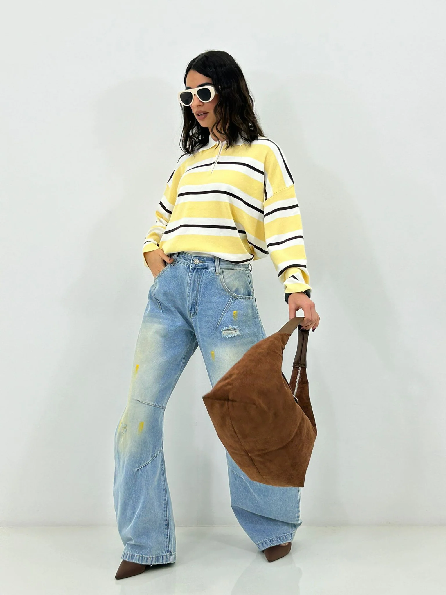 Jeans balloon con strappi e colori