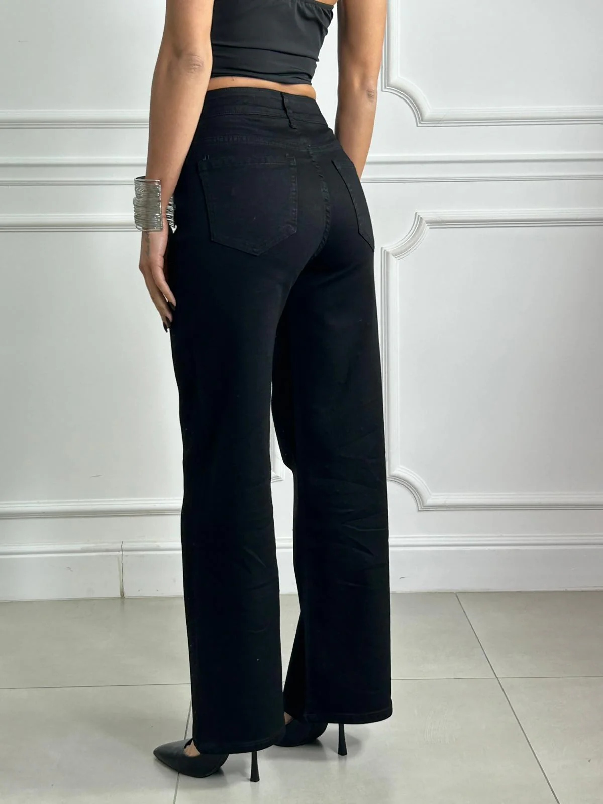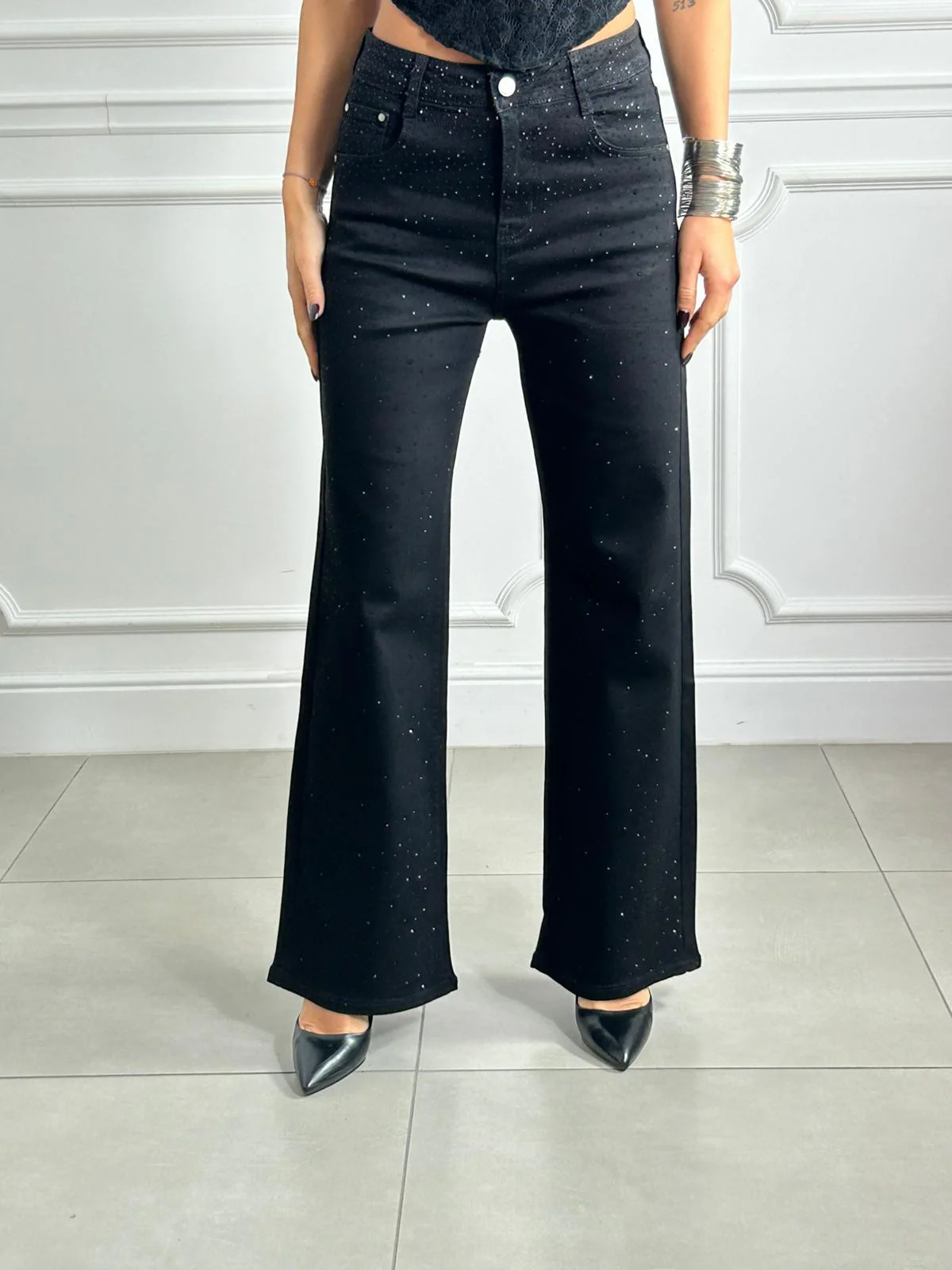 Jeans wide leg con strass