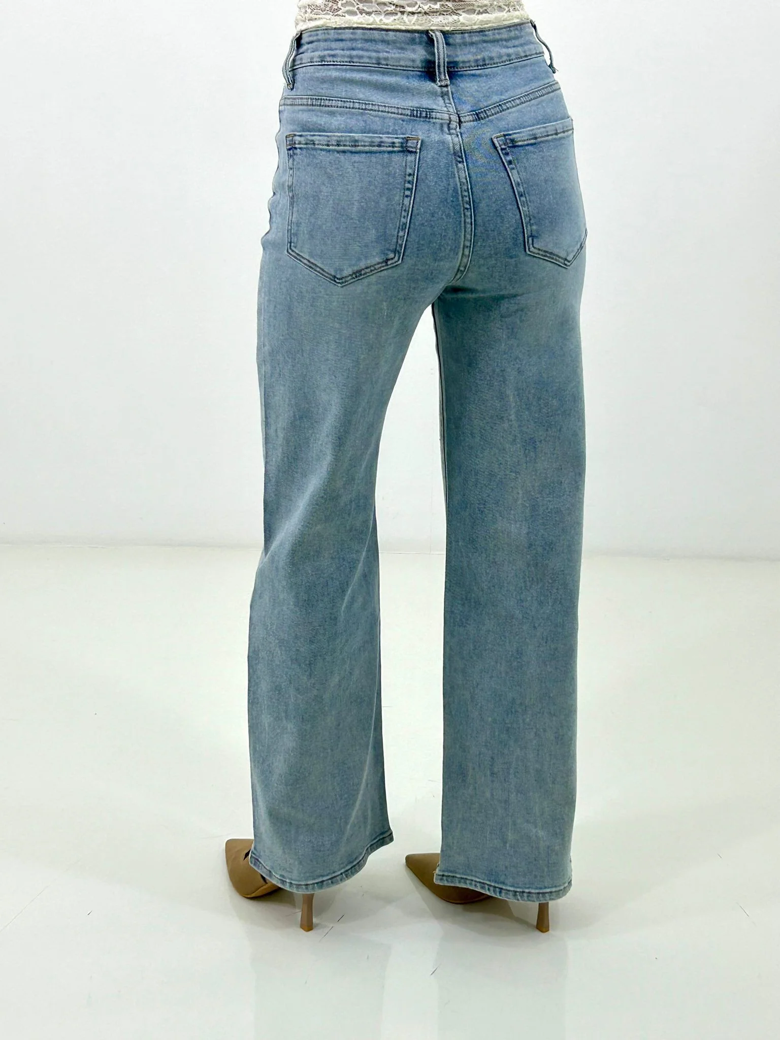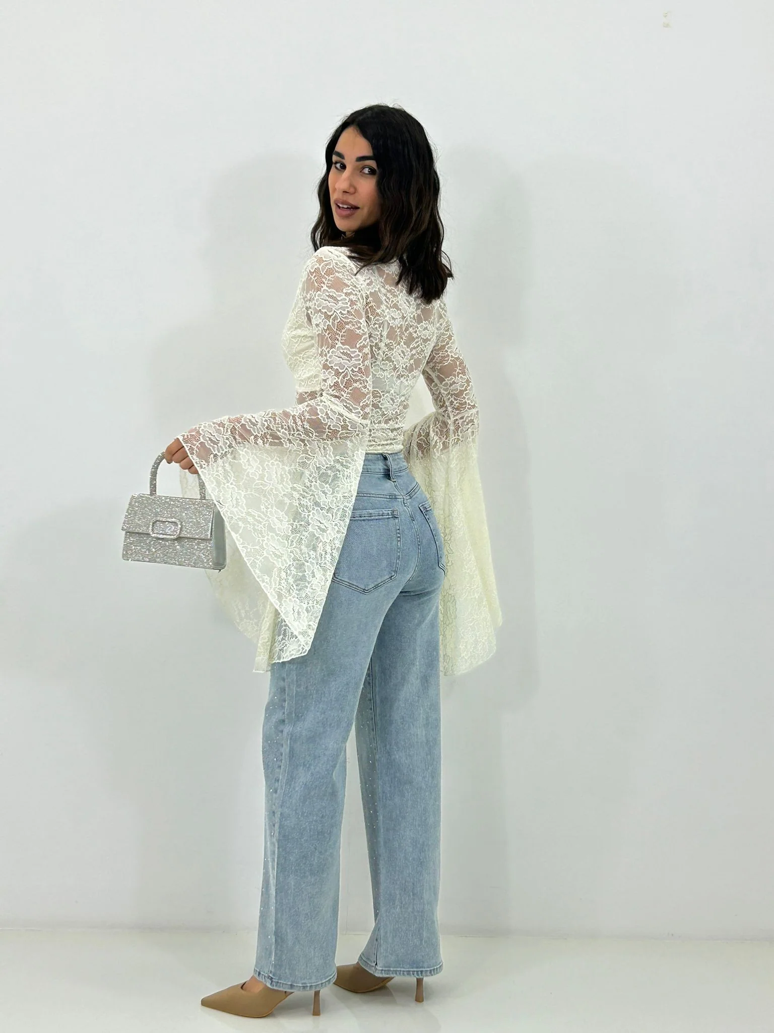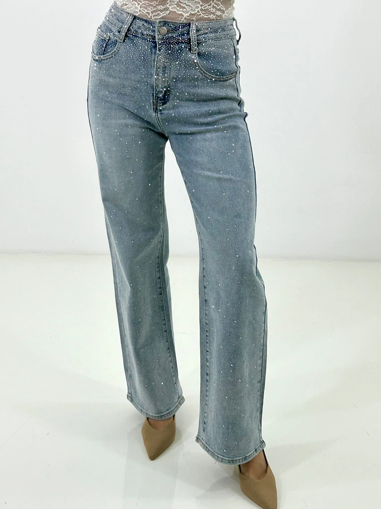 Jeans wide leg con strass
