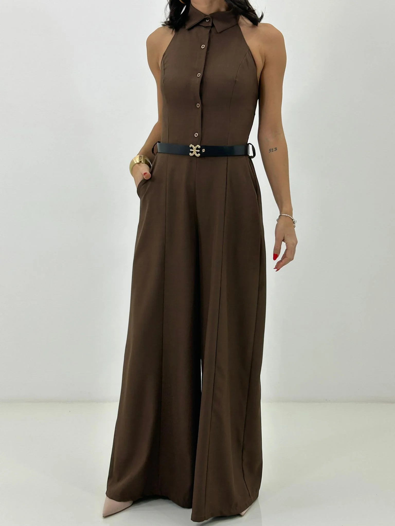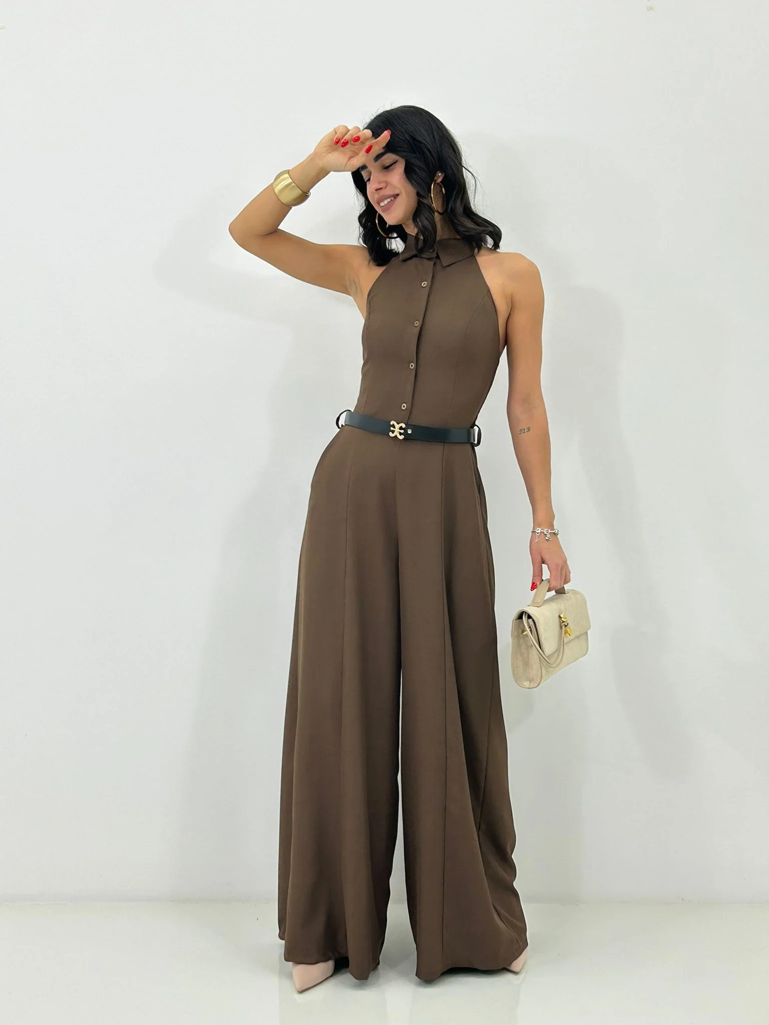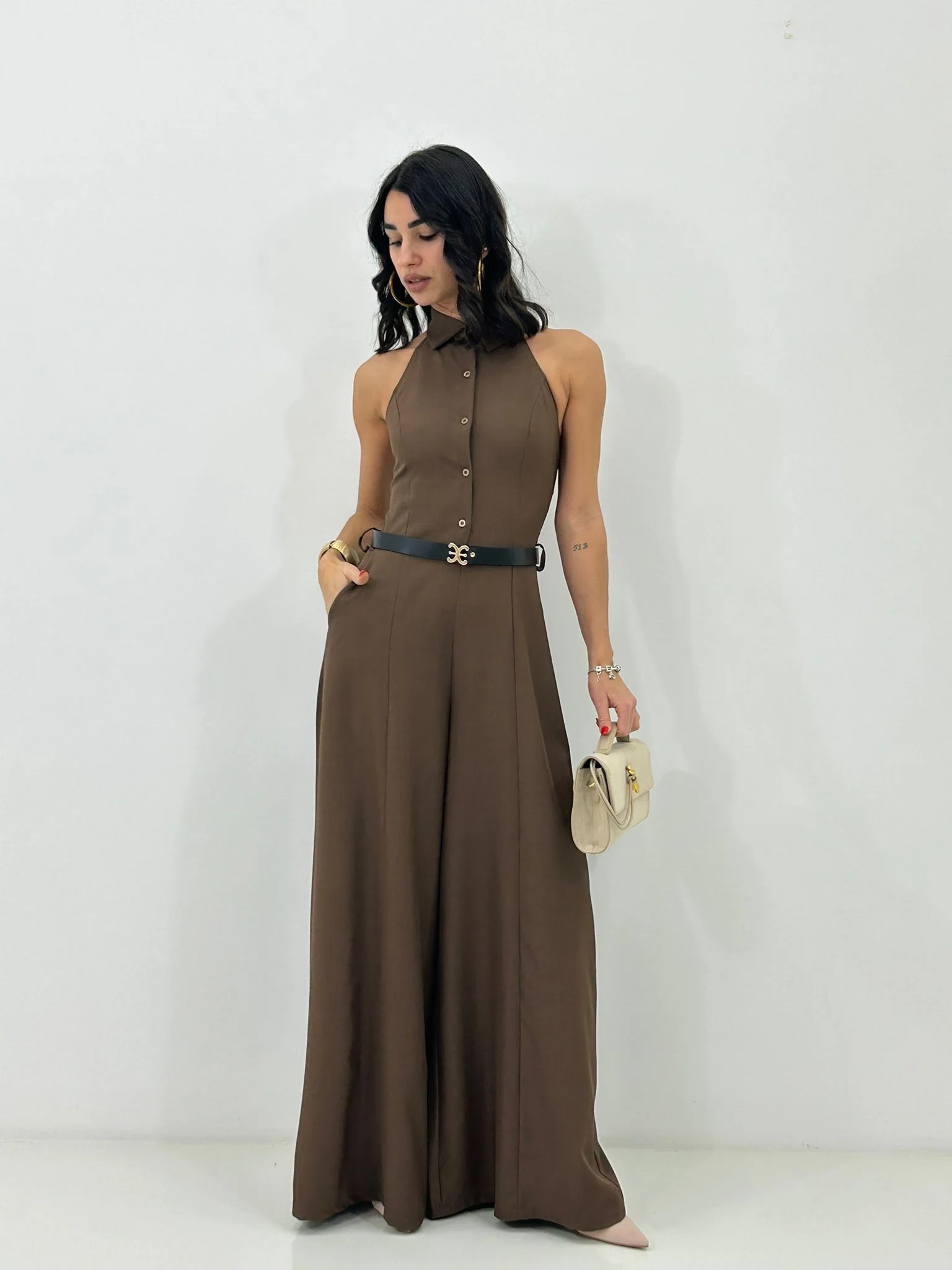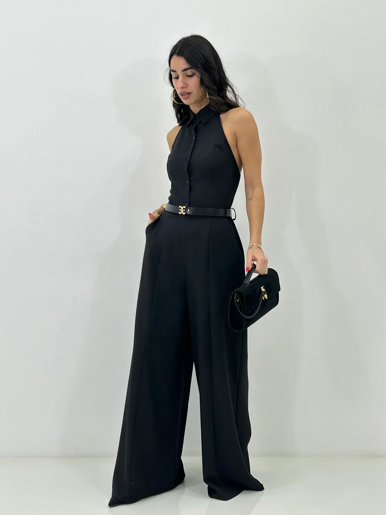Tuta intera con cinturino , bottoncini e scollo schiena