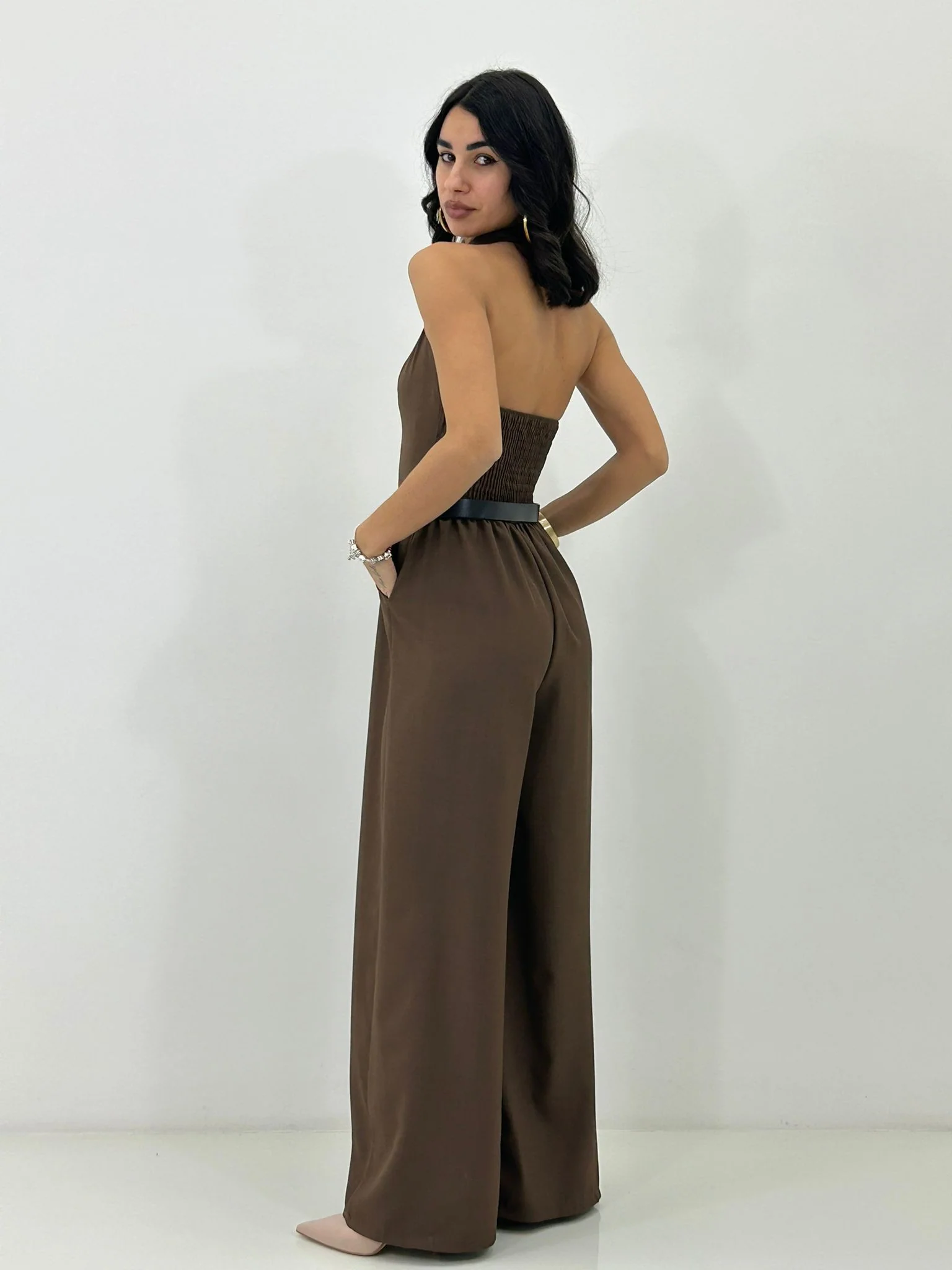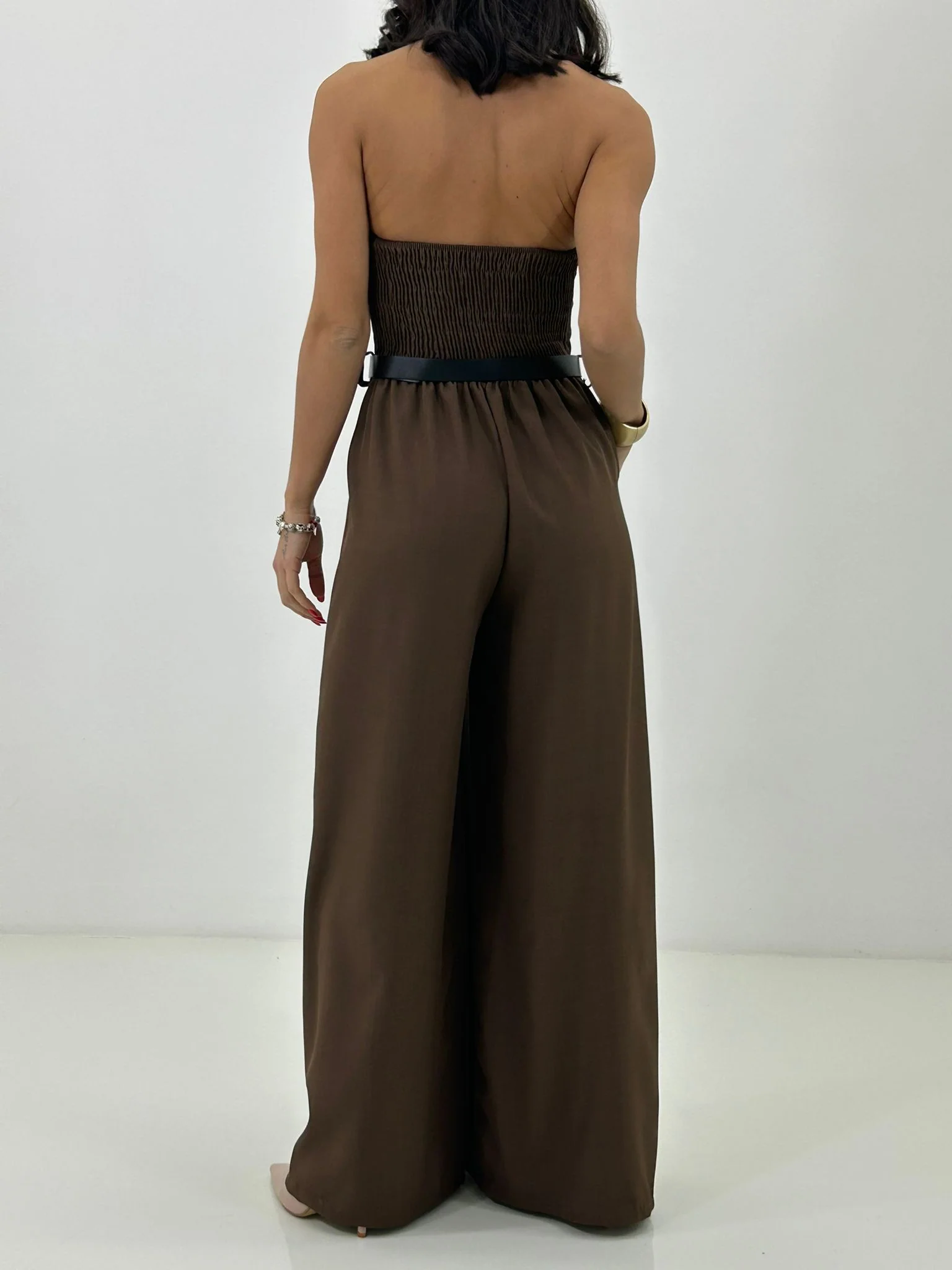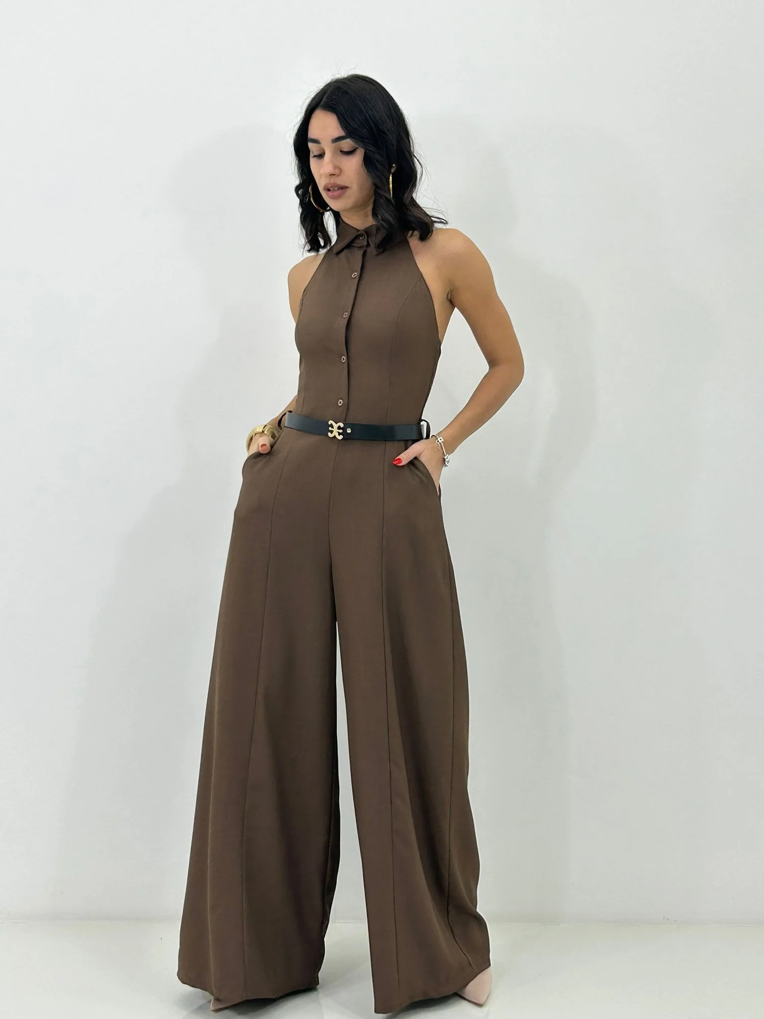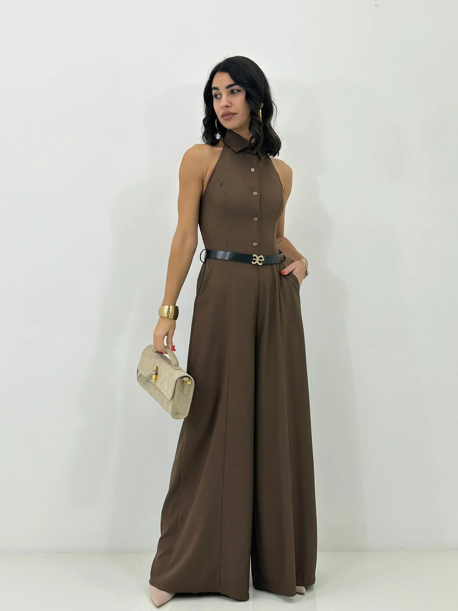 Tuta intera con cinturino , bottoncini e scollo schiena