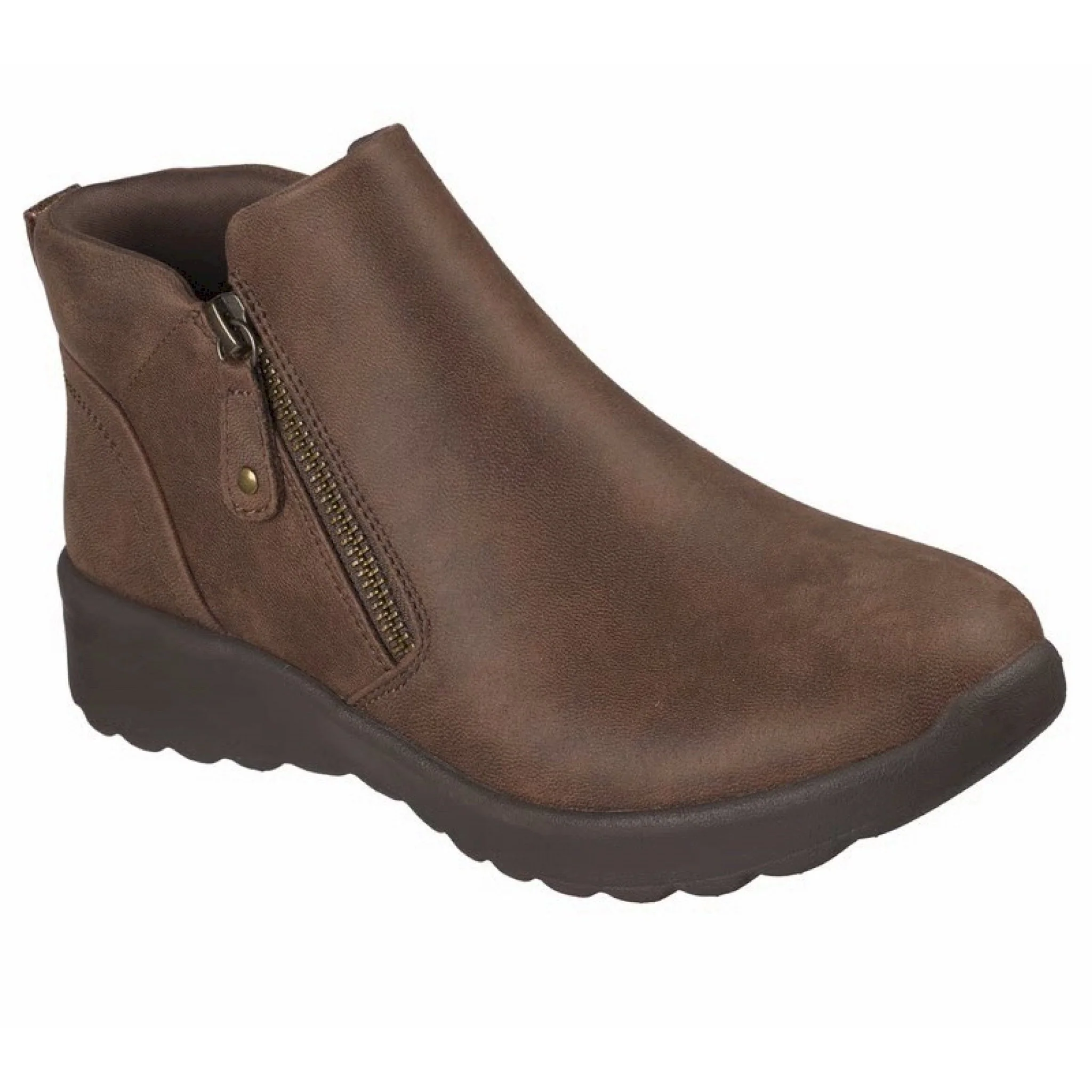 Scopri il comfort classico e lo stile elegante con le skechers lovely vibe – fall in bloom. questo scarponcino alla caviglia presenta una tomaia in pelle con cerniera laterale e una soletta skechers air-cooled memory foam™.
