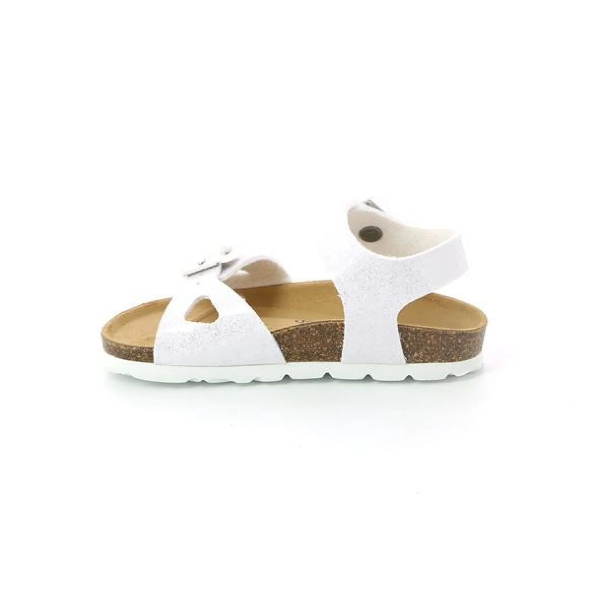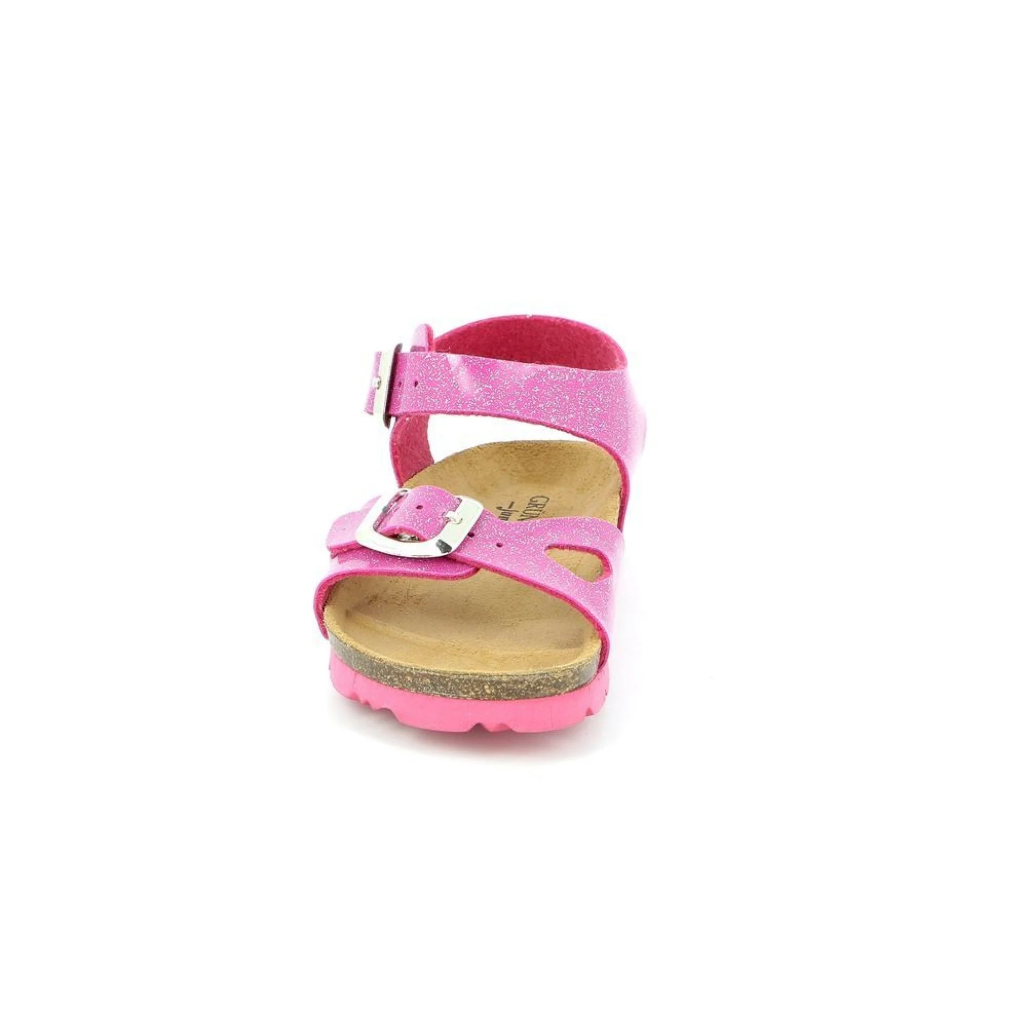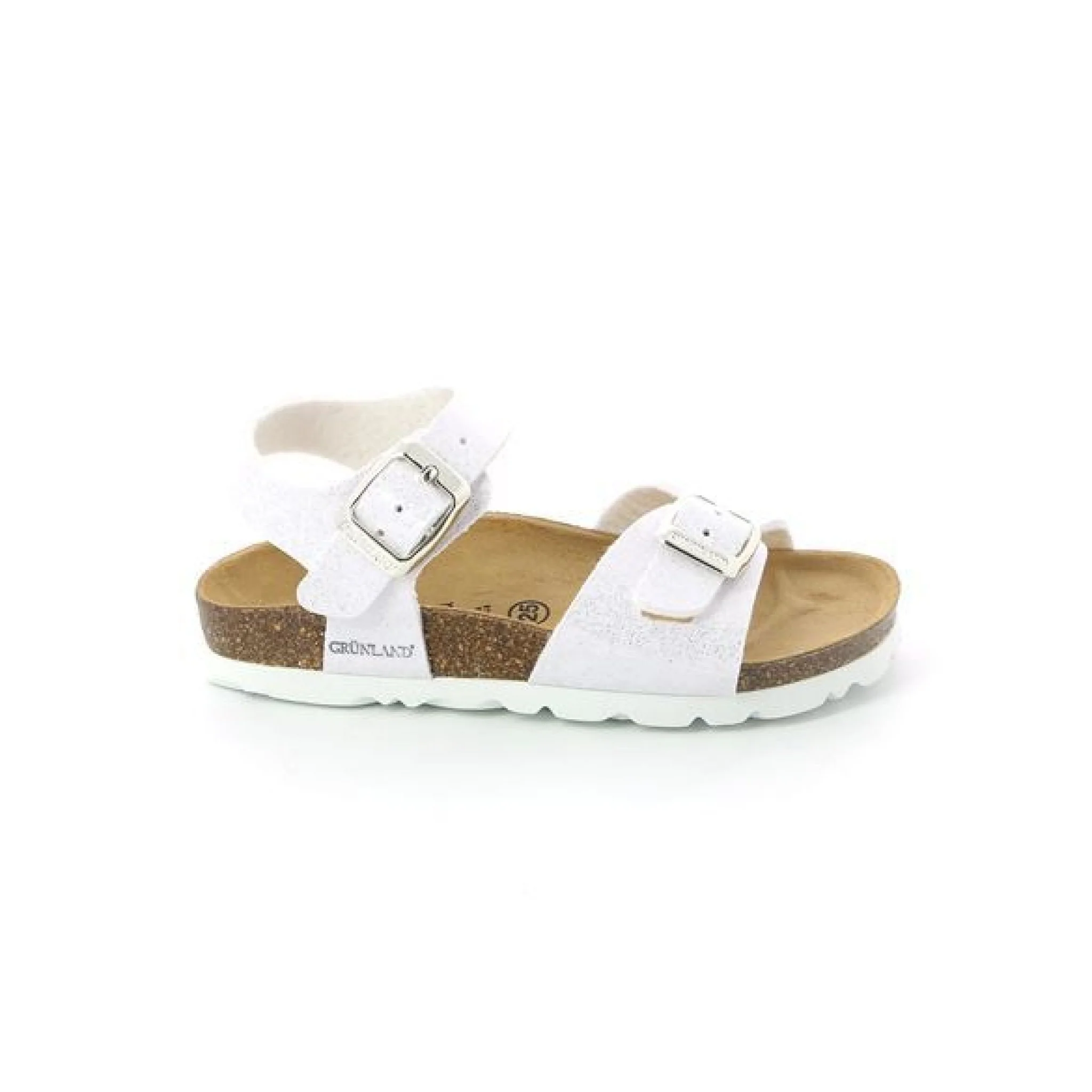 Sandalo pratico e grazioso, il battistrada è abbinato ai dettagli della tomaia in vernice glitterata, le fibbie son metal free di color argento e ne richiamano la brillantezza. il sughero naturale e la vera pelle del plantare assicurano al piede della tua bambina il massimo del benessere.