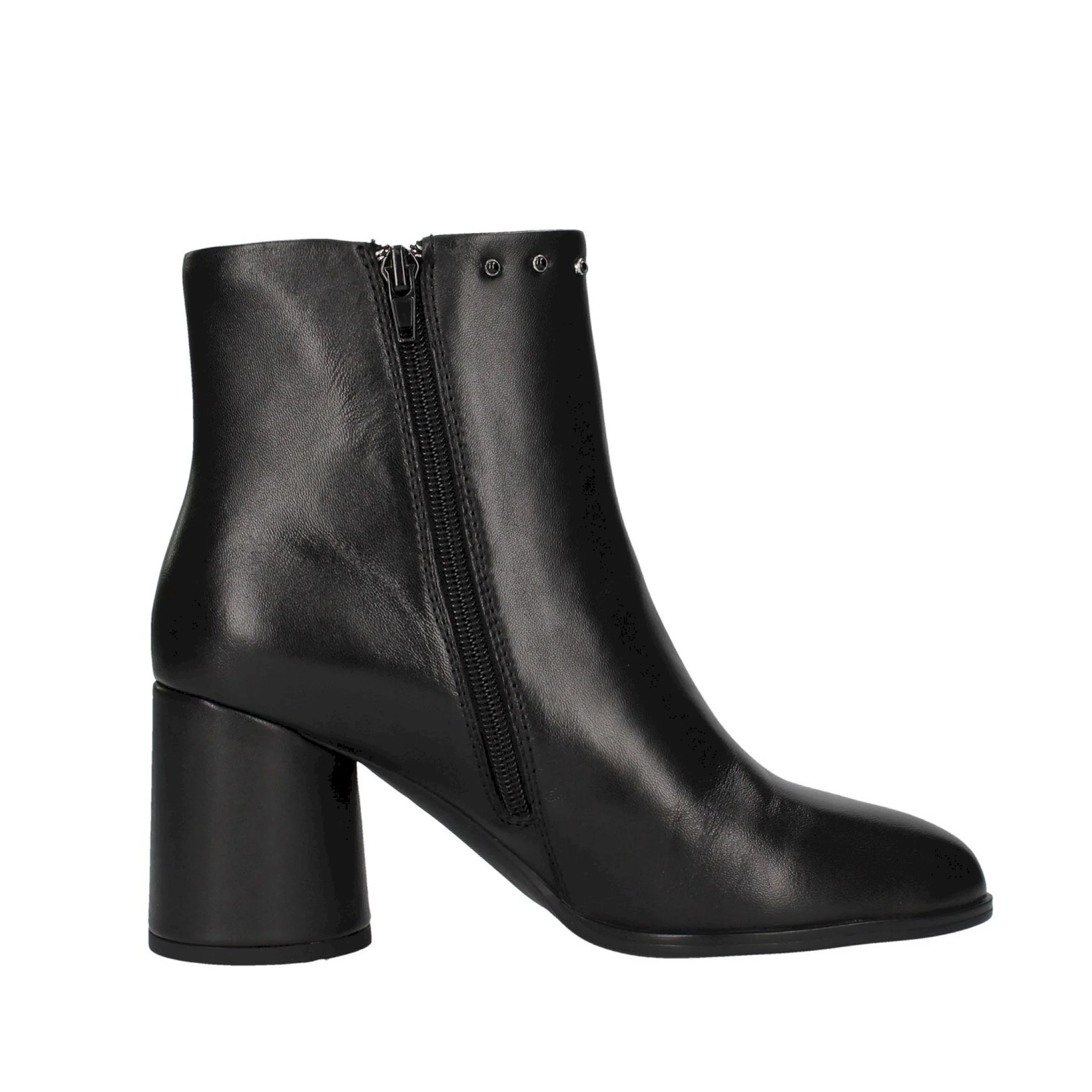 Stivaletto in pelle con tacco e cerniera e borchiette