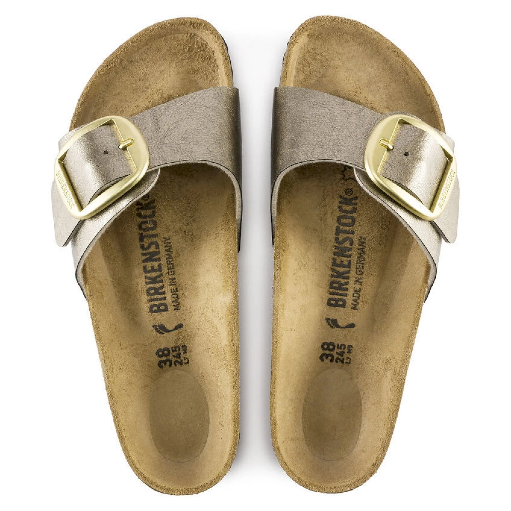 Birkenstock madrid è un classico assoluto che piace soprattutto per la sua linea essenziale. questa versione combina nello stesso modello due motivi di grande successo. si presenta con un delicato rivestimento dalla brillantezza setata e una grande fibbia ad ardiglione elegante. la tomaia è realizzata in materiale sintetico birko-flor®, resistente e delicato sulla pelle.