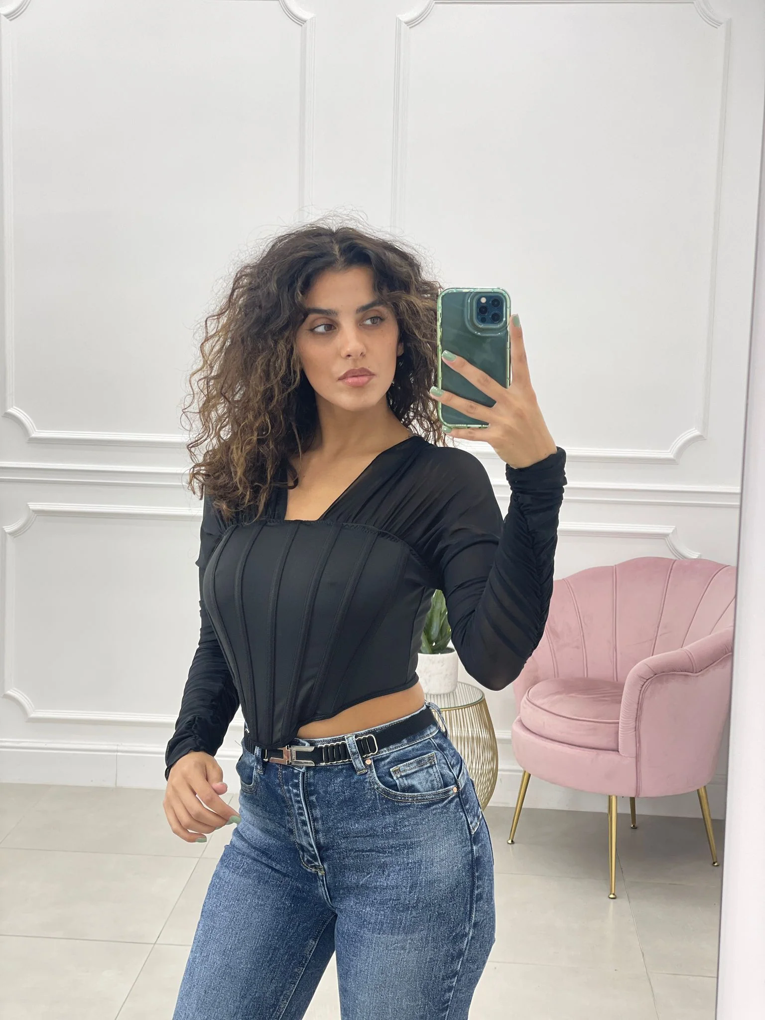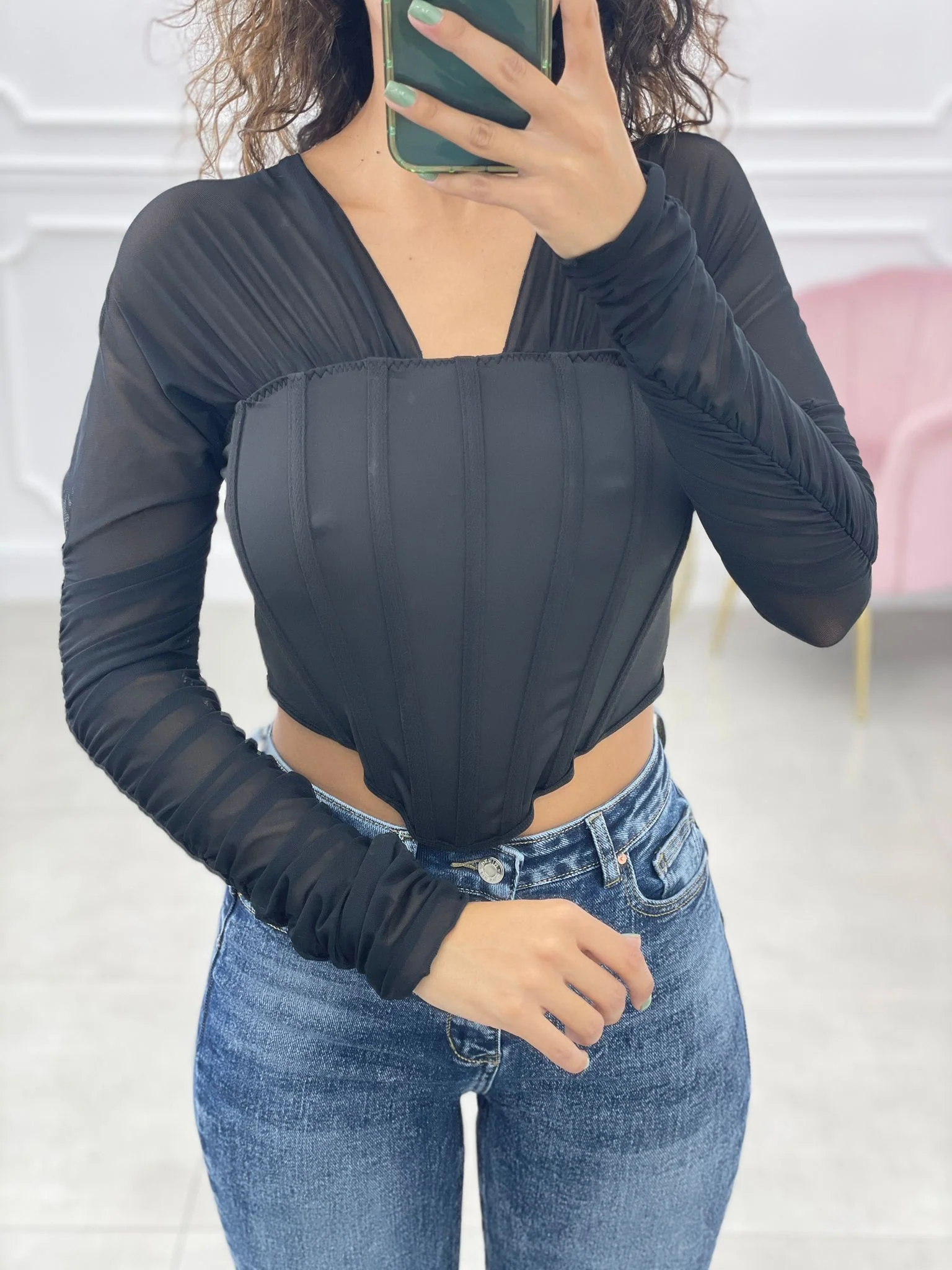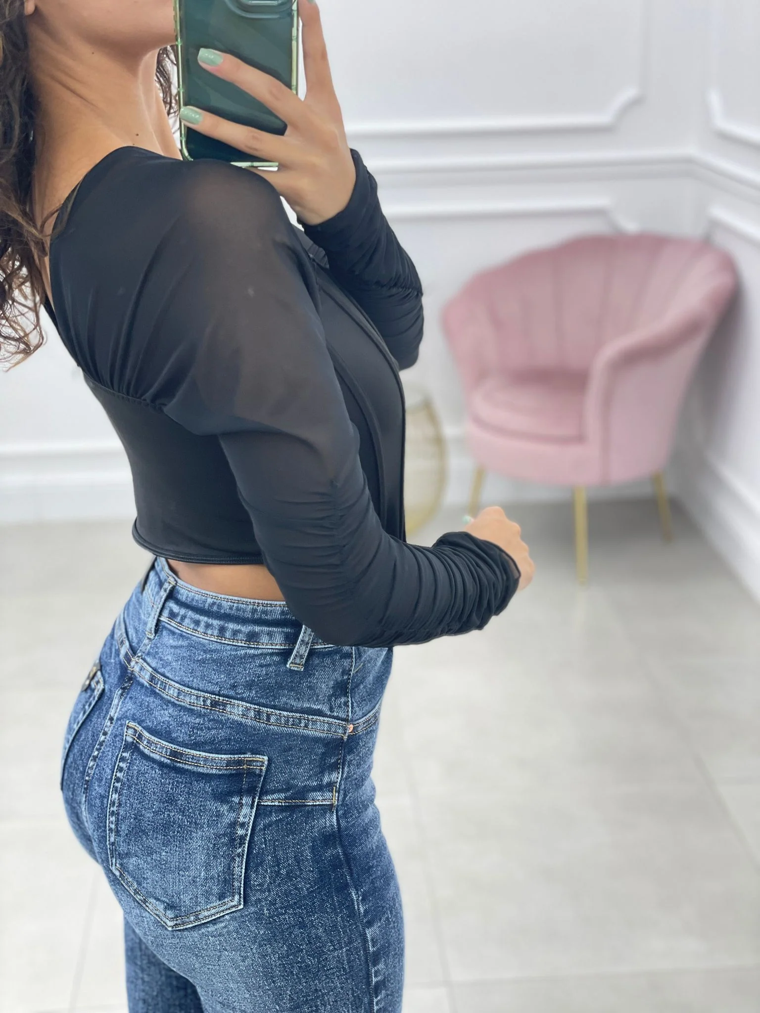 Maglia crop con maniche velate