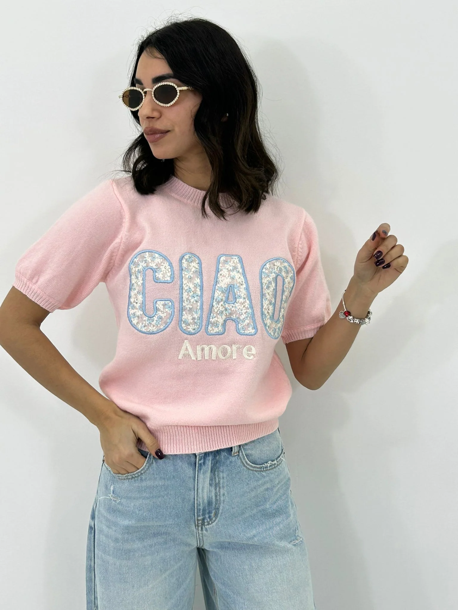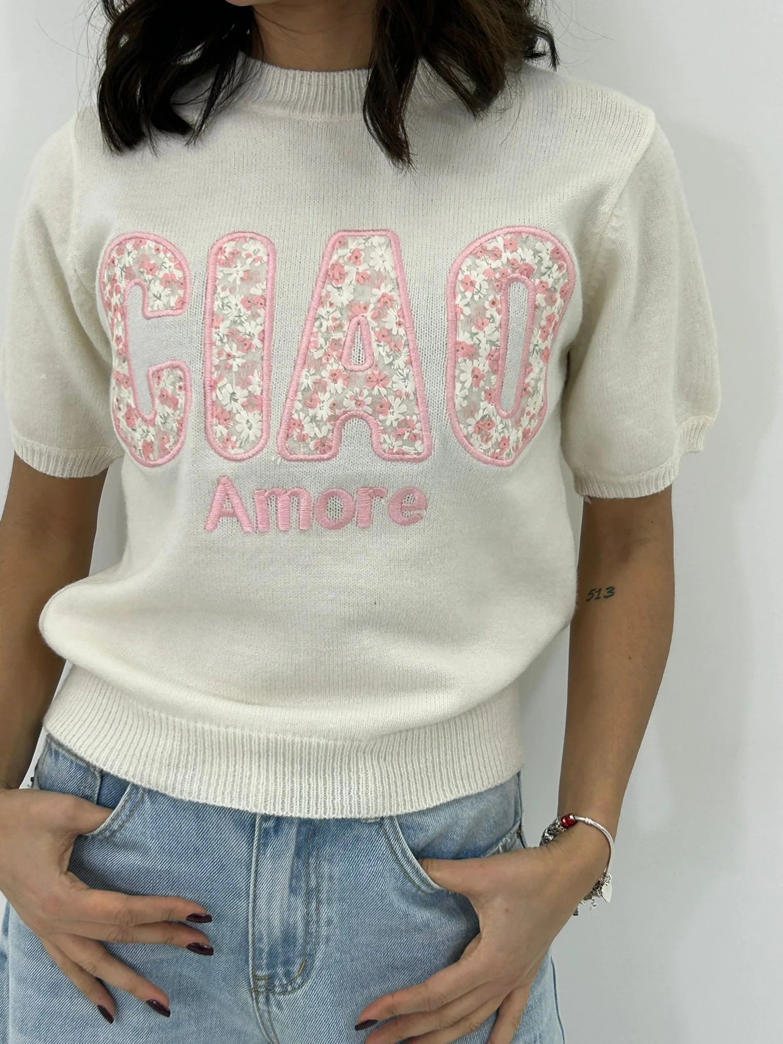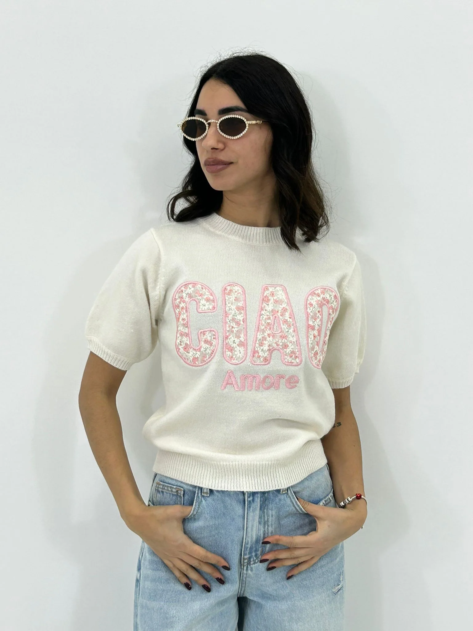 Maglione m/m con stampa ciao amore