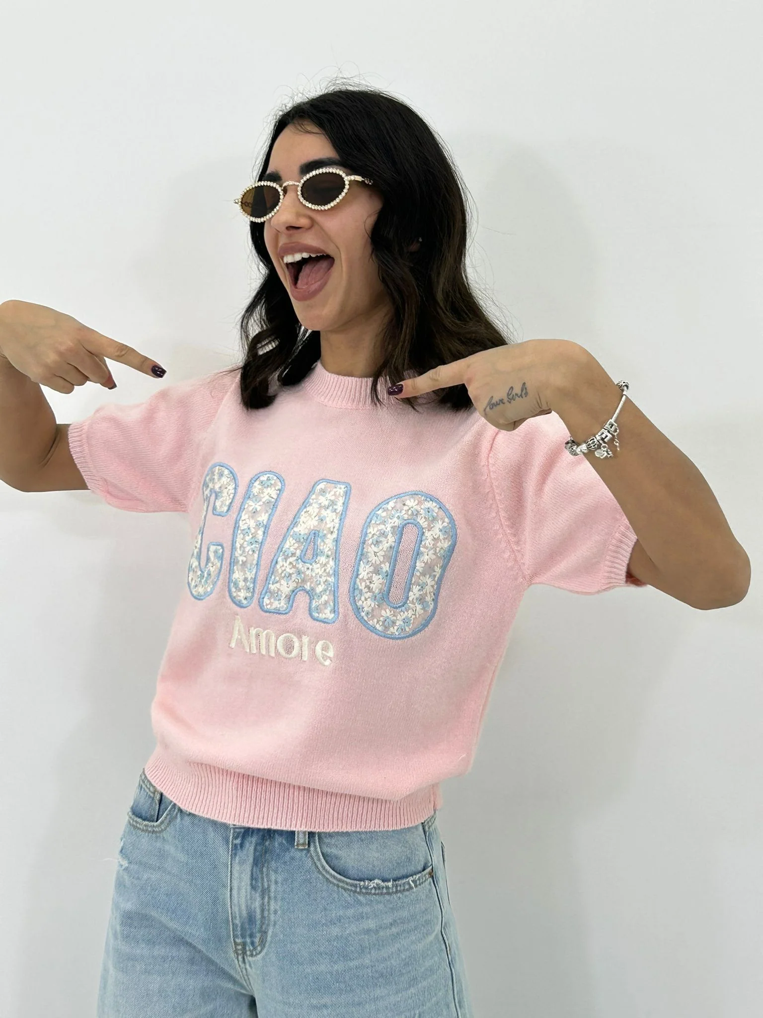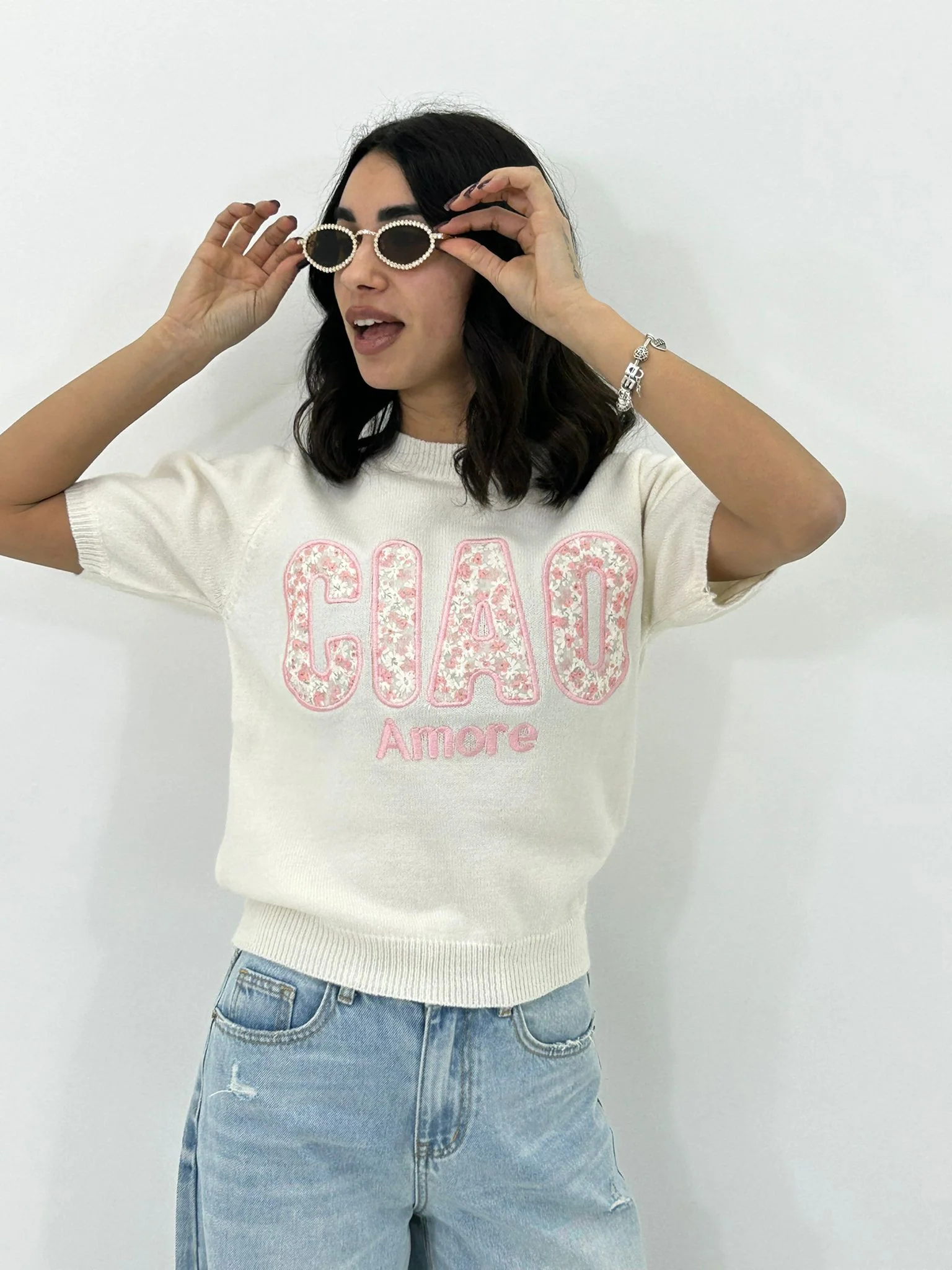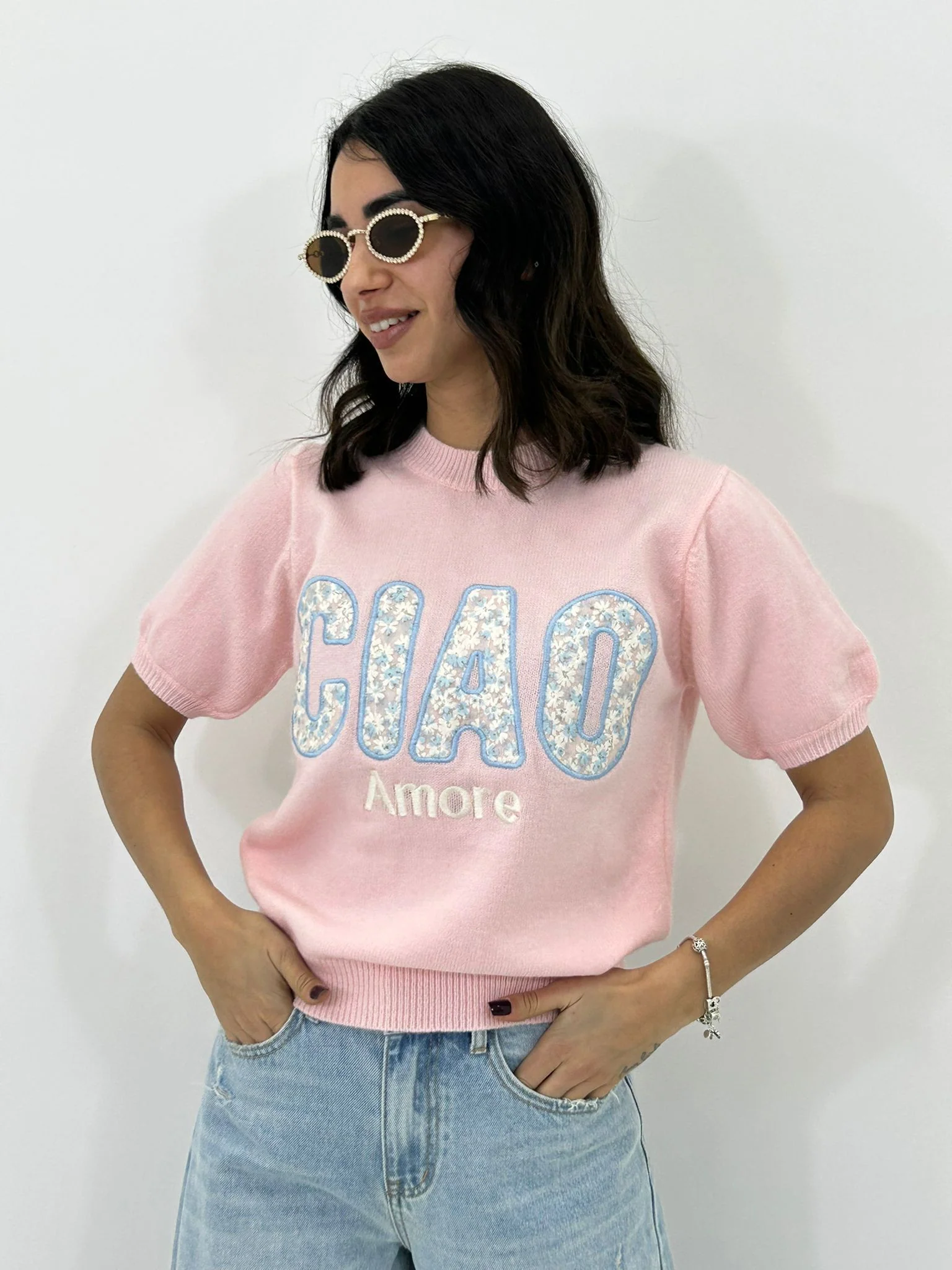 Maglione m/m con stampa ciao amore