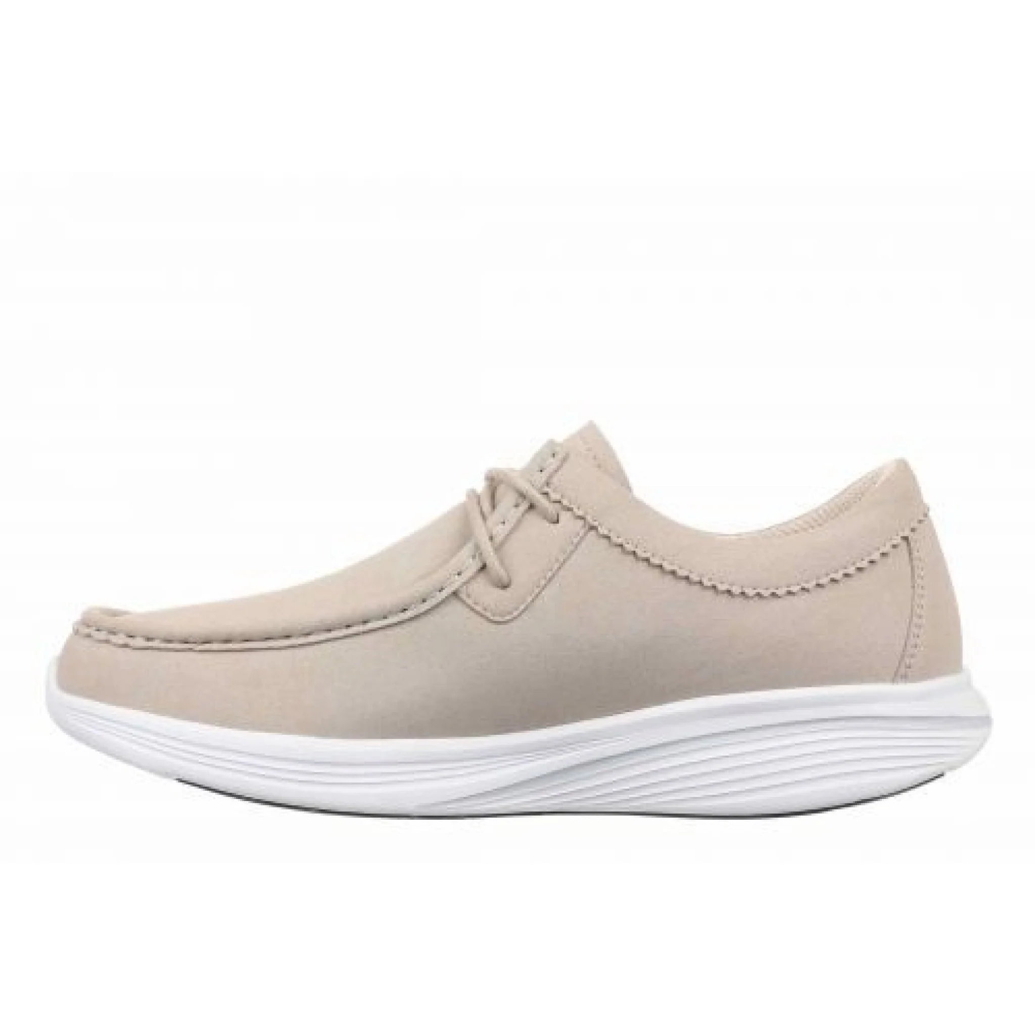 Realizzata in pelle scamosciata sintetica, questa classica scarpa da barca stringata emana un fascino senza tempo.