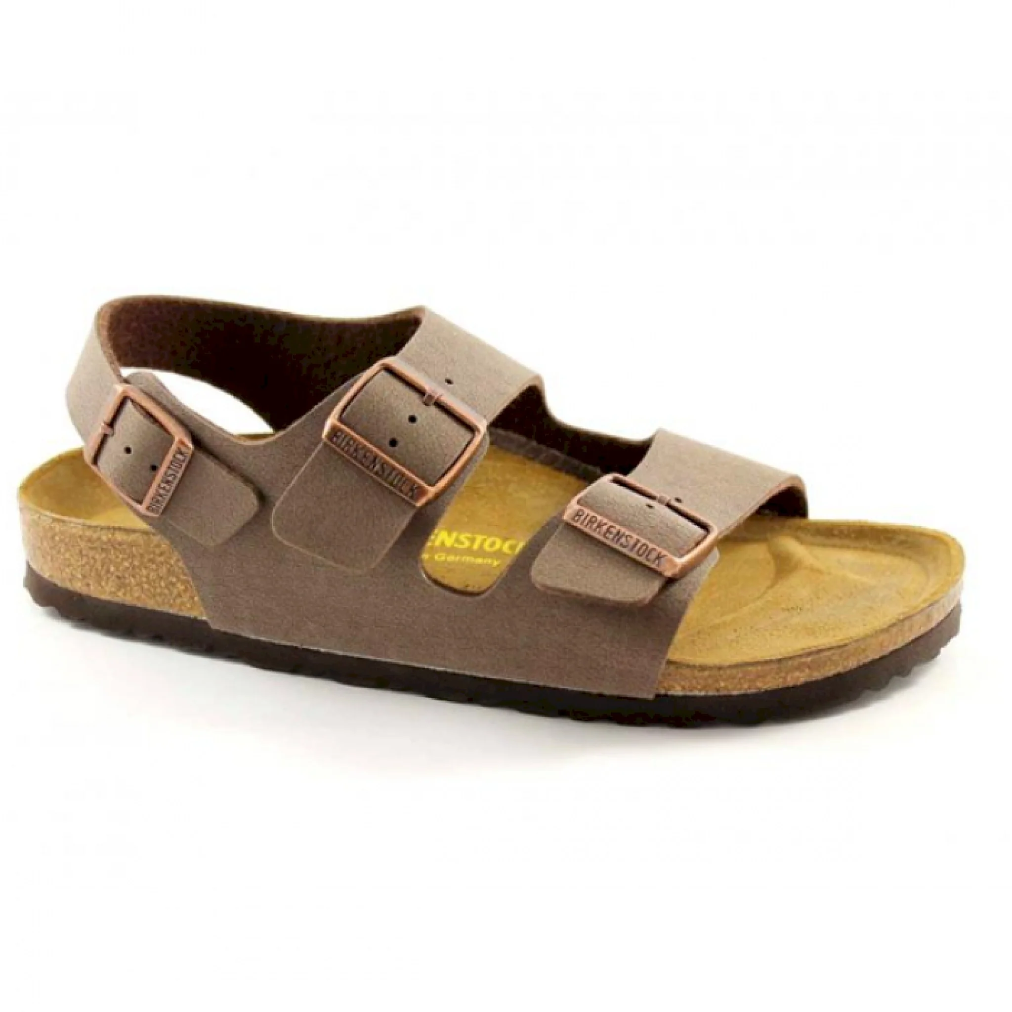 Il sandalo birkenstock milano è il più adatto per chi trascorre molto tempo in piedi. la parte superiore aperta e la struttura leggermente compatta sui lati con due fibbie di metallo regolabili individualmente mantiene fermo il piede nella sede e conferisce stabilità ai piedi durante tutti i movimenti. l’ampio cinturino per il tallone assicura una maggiore protezione e un appoggio più stabile. anche quest’ultimo può essere adattato al piede grazie a una fibbia di metallo regolabile individualmente. la tomaia è in materiale birko-flor® dermoaffine e facile da pulire. il pregiato materiale sintetico è particolarmente robusto e resistente all’abrasione. il lato inferiore presenta un rivestimento in tessuto non tessuto molto morbido e dermoaffine che avvolge il piede con delicatezza. la suola eva particolarmente leggera è flessibile e favorisce il rollio dei piedi e del corpo. la parte più importante del sandalo è il plantare originale birkenstock dalla forma anatomica in sughero e lattice con sottopiede in pelle morbida vellutata. il sandalo birkenstock milano è pertanto la compagnia ideale di chi fa tanto movimento fisico, ma sempre all’insegna del comfort.