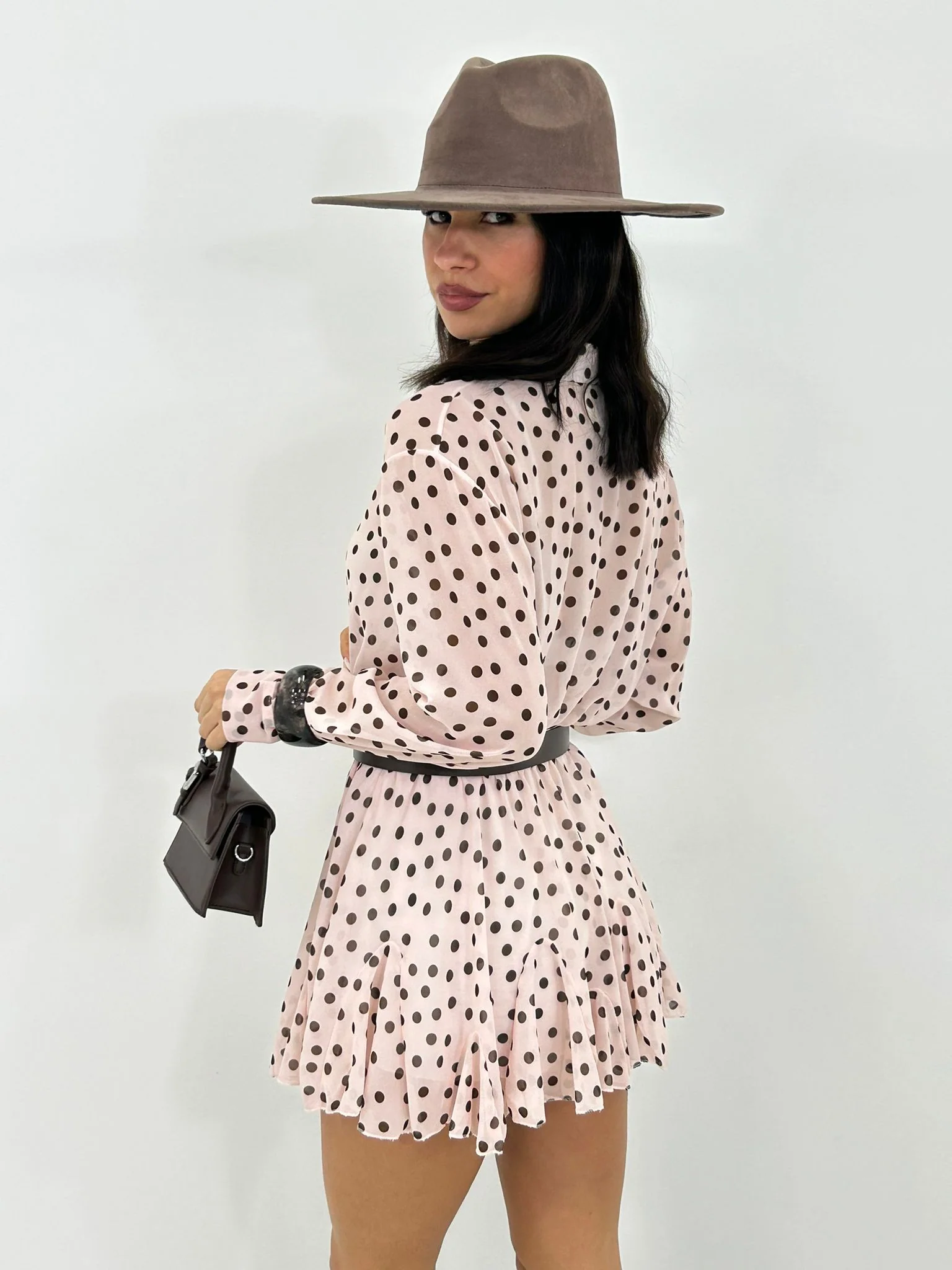 Mini dress velato pois con cinturino in vita,shorts integrato