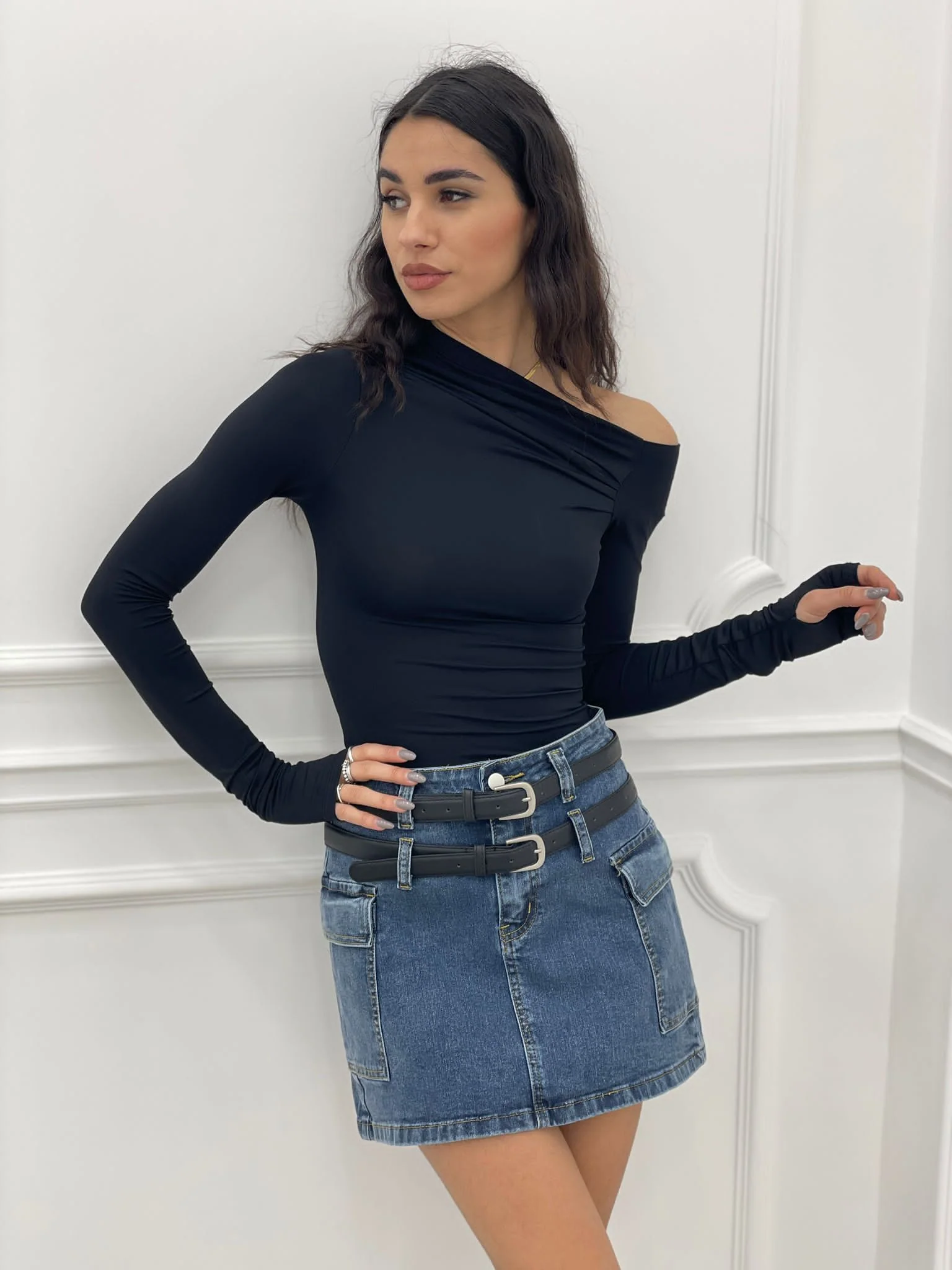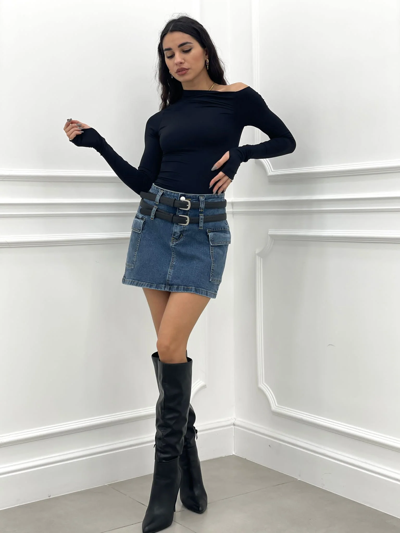 Minigonna con tasconi e cintura