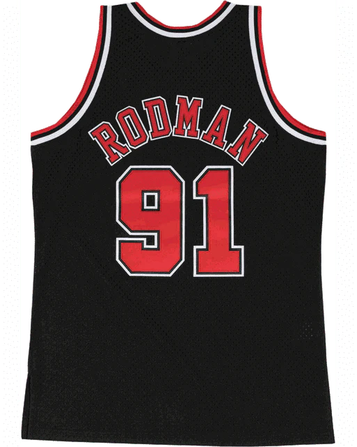 - Mitchell & Ness HWC Swingman jocktag tessuta ed etichetta tessuta nome giocatore / anno ID in basso a sinistra davanti.