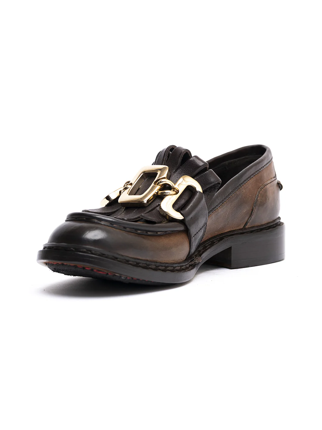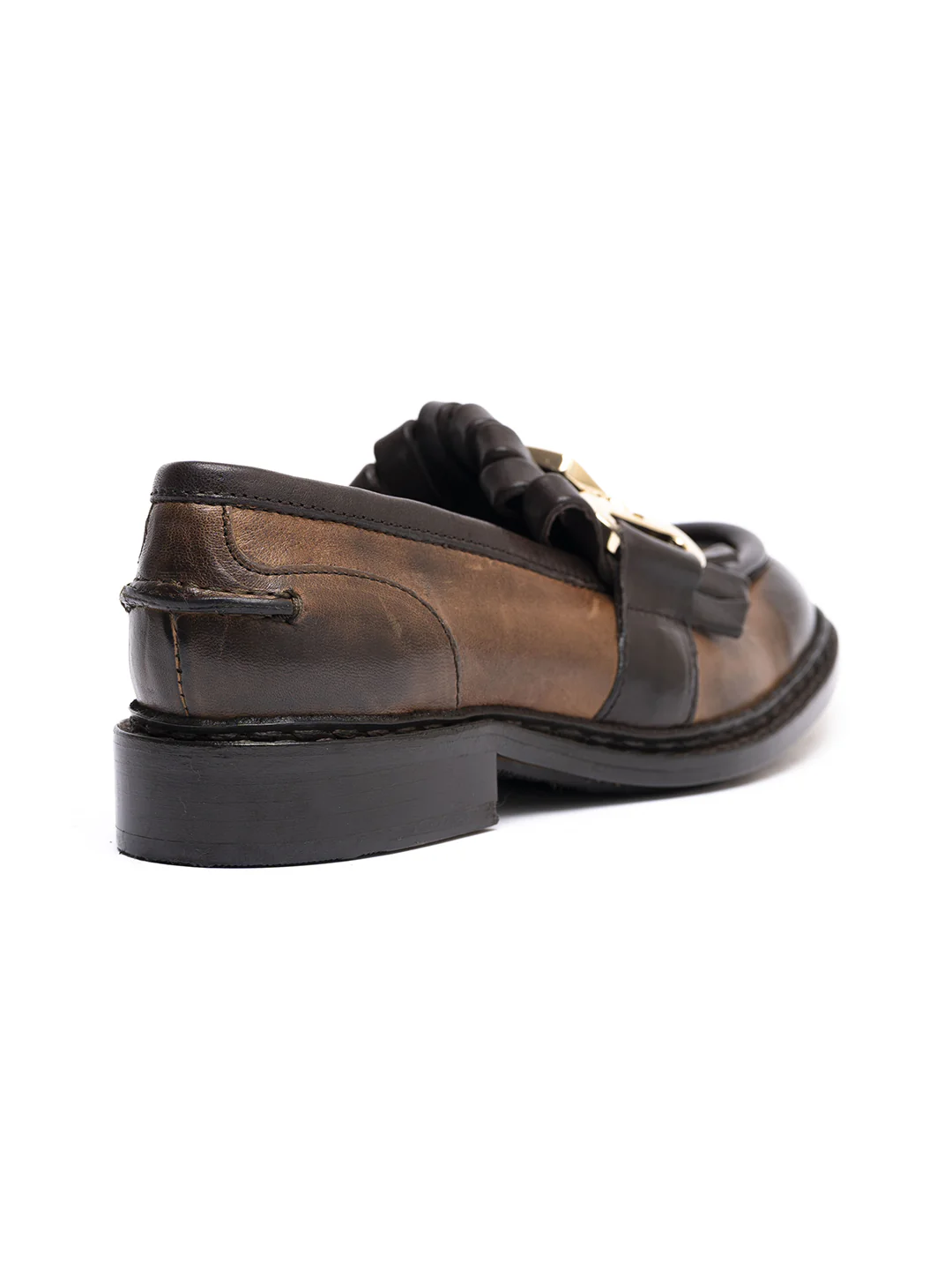 Tipo di lavorazione: pellame spazzolato a mano, la suola viene lavata e fissata alla tomaia tramite la cucitura «Blake»