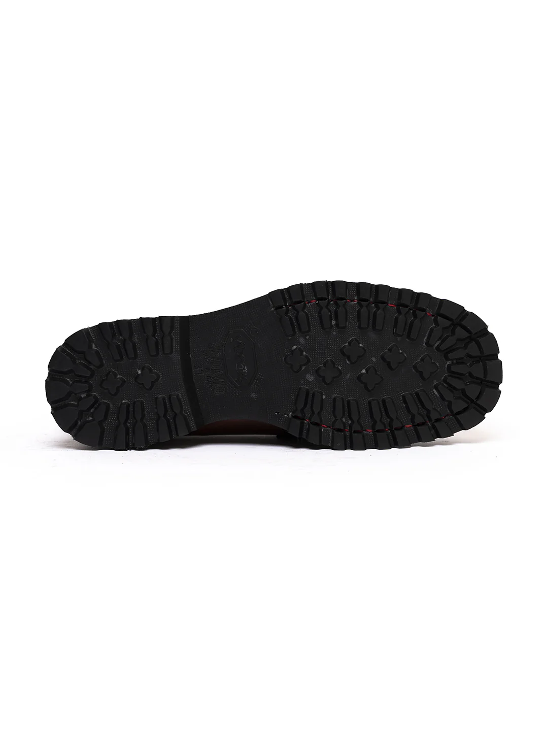 Tipo di lavorazione: pellame spazzolato a mano, la suola è fissata alla tomaia tramite la cucitura «Blake»