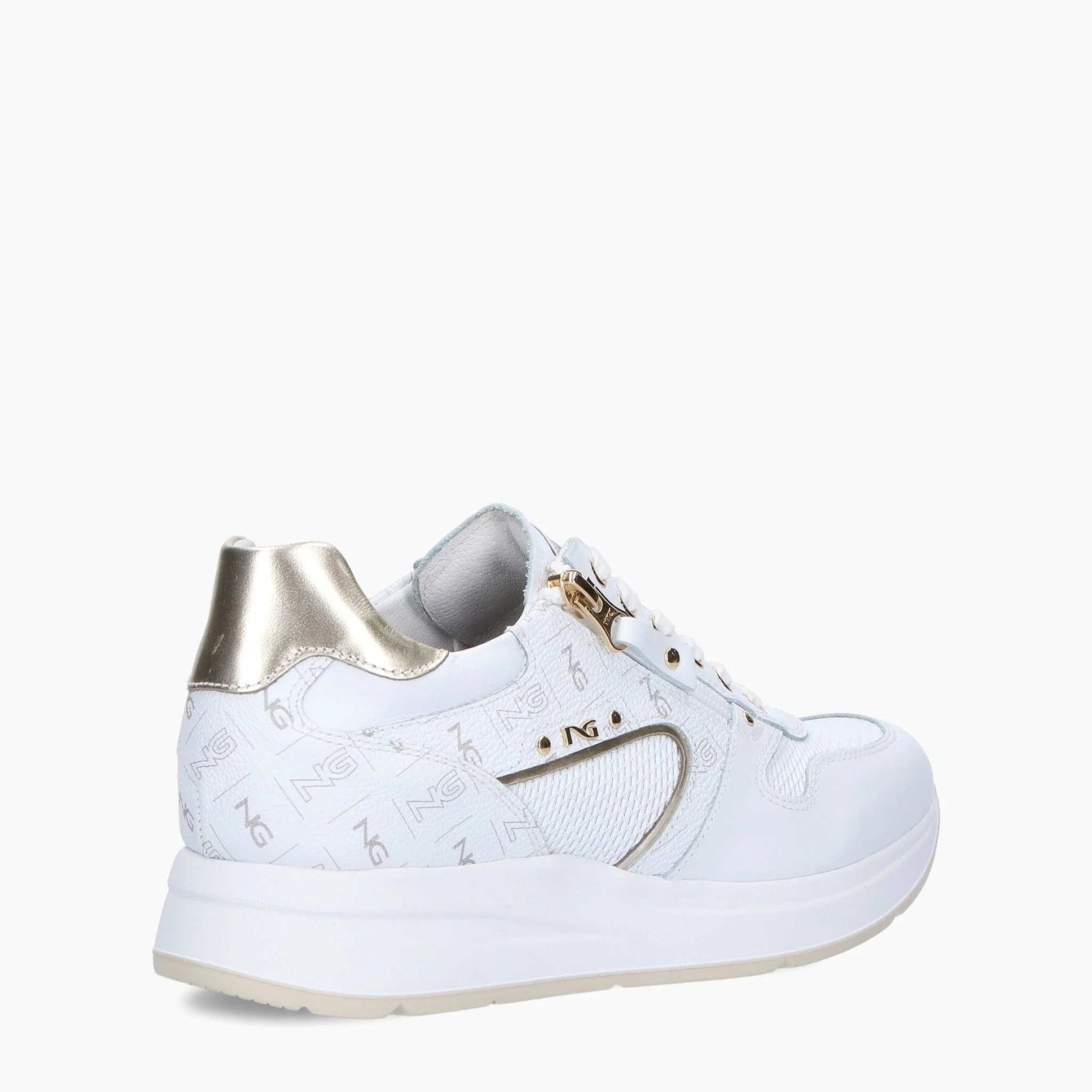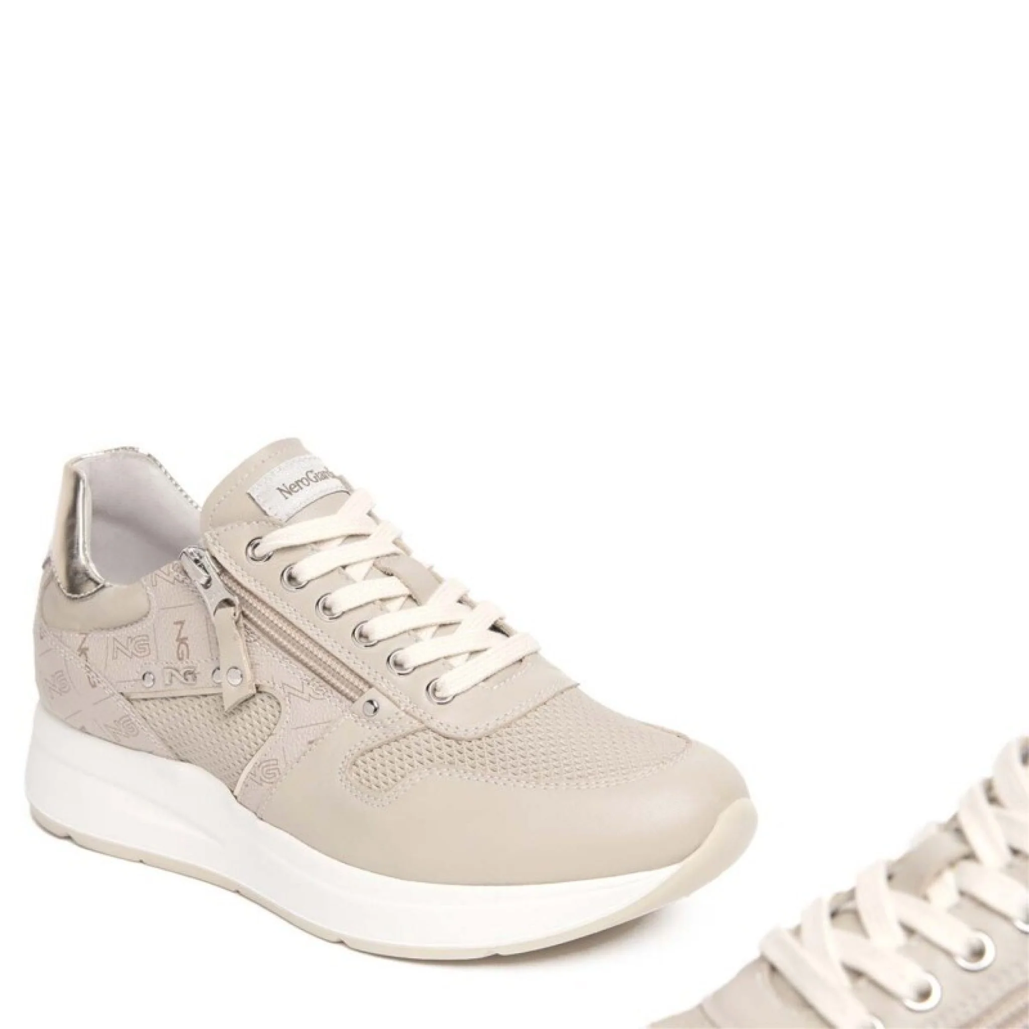 Sneakers in pelle con inserti in pelle stampa monogram, pelle laminata e dettagli metal. la zip esterna arricchisce la tomaia e assicura una calzata pratica e veloce. fondo sportivo bicolore di 3,5 cm per un look grintoso e di tendenza. il sottopiede con tecnologia drygo!® assorbe l’umidità e garantisce confort e benessere.