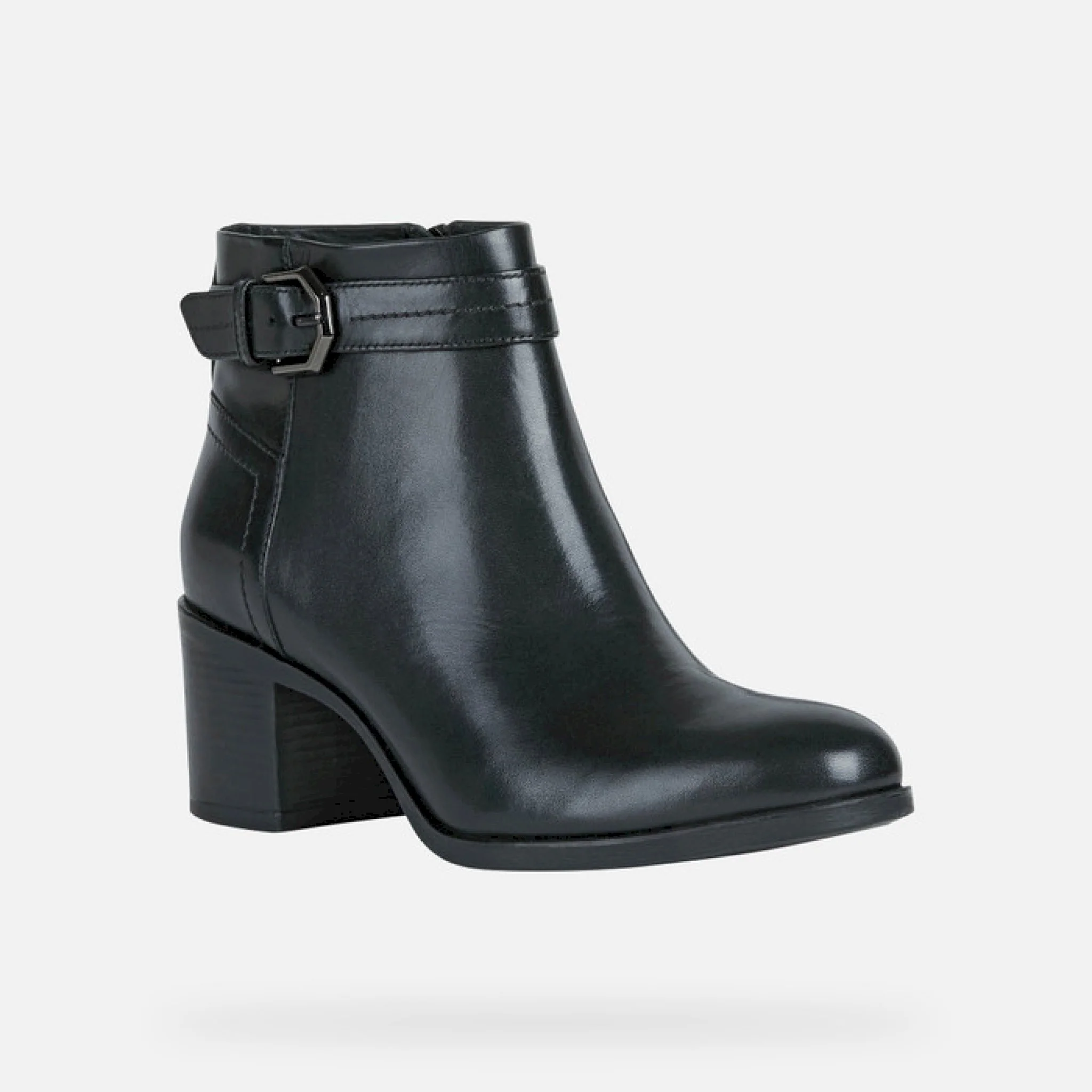 Stivaletto donna dall’attitudine dinamica, con tacco medio grosso che slancia la figura. con la sua tomaia in pelle liscia nera, new asheel risolve i look da ufficio così come gli outfit meno formali. arricchito da un cinturino con fibbia, è un modello che coniuga comodità e stile, immancabile durante la stagione fredda.