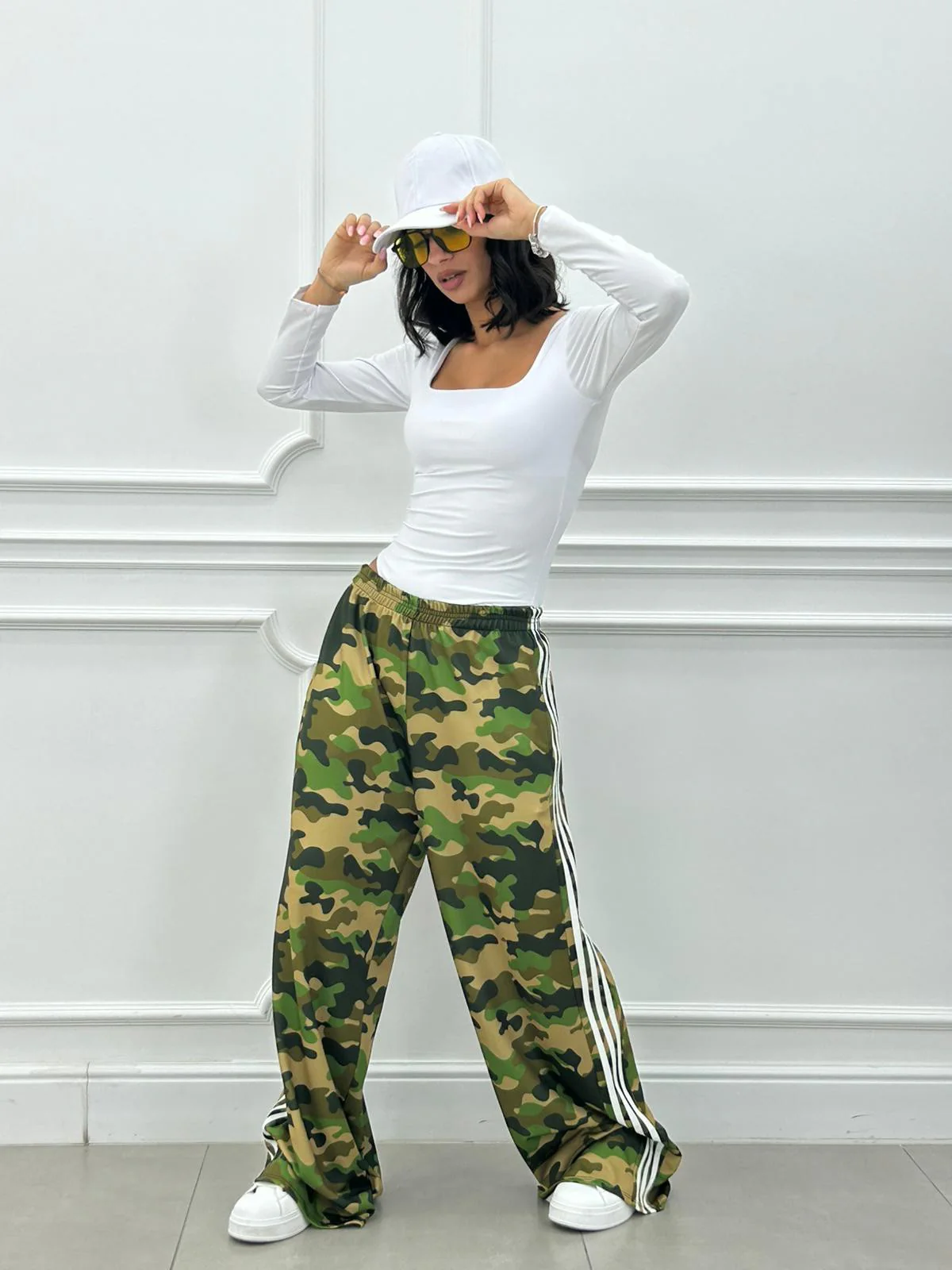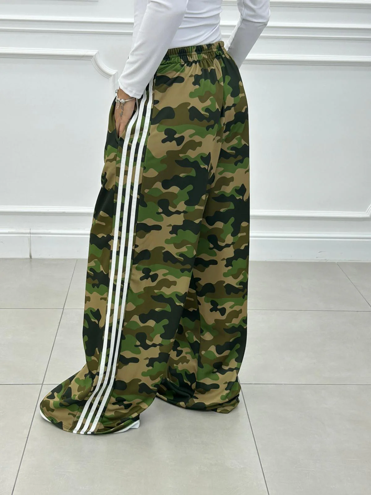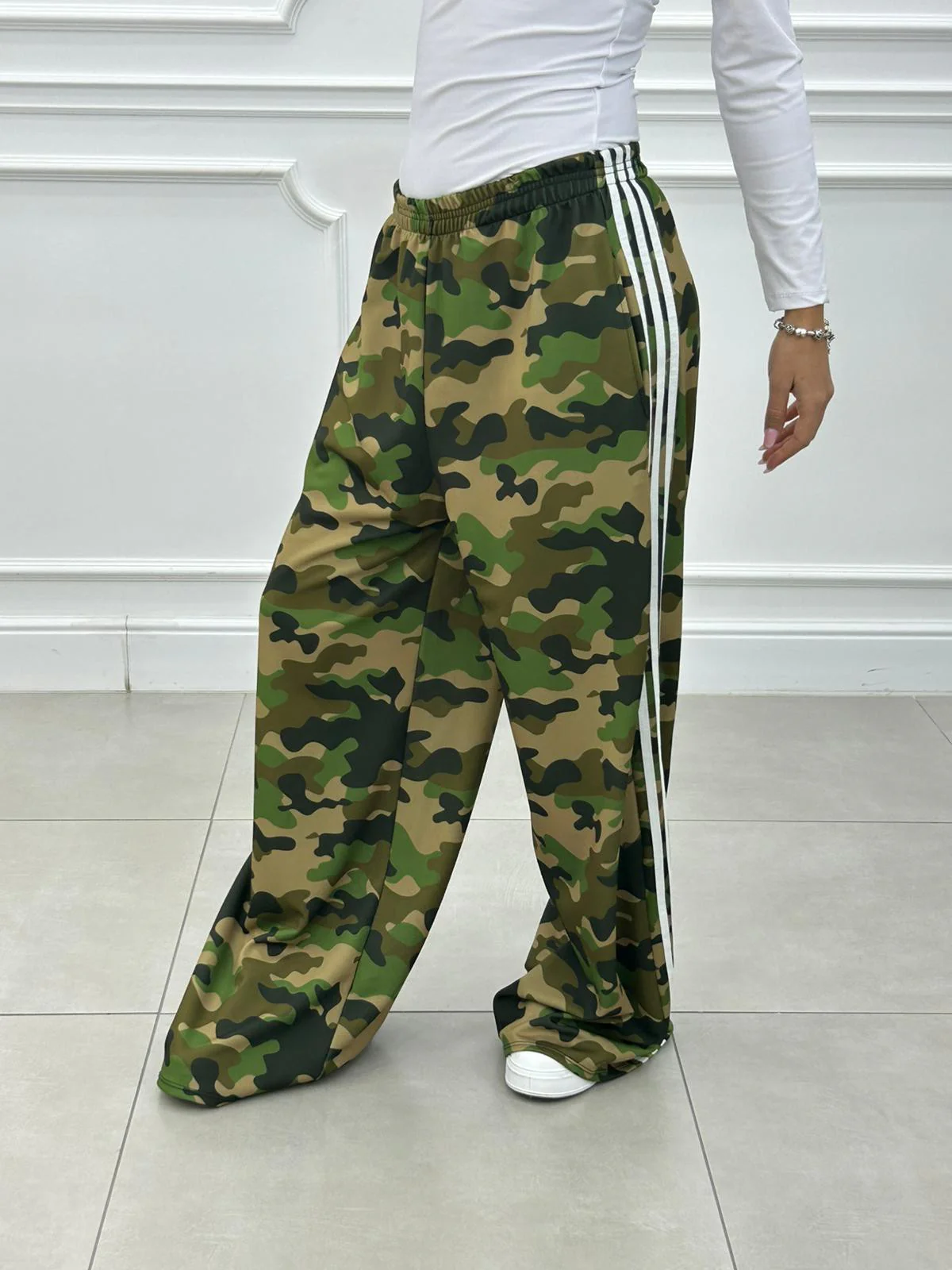 Pantalone fantasia camouflage con banda laterale , elastico in vita e tasche
