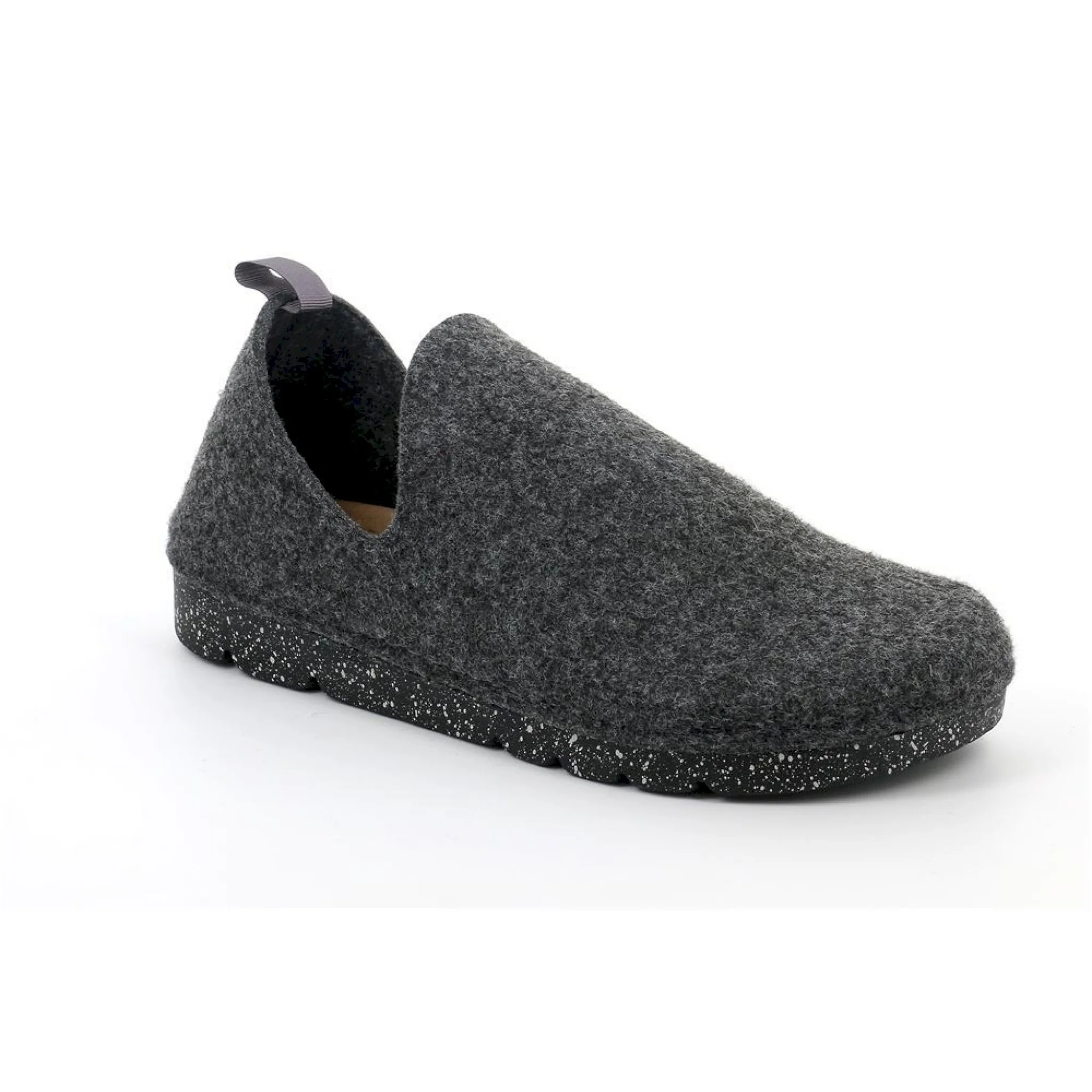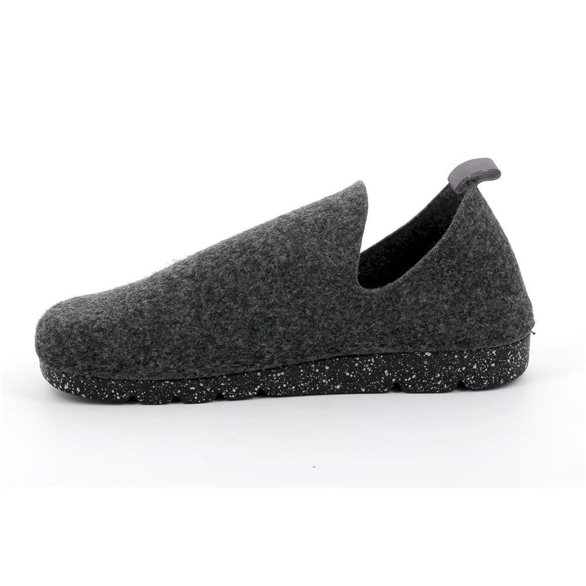 Calda ed avvolgente, questa pantofola in feltro riciclato da bottiglie di plastica ha la particolarità di adattarsi alla camminata grazie alla speciale suola conforma.