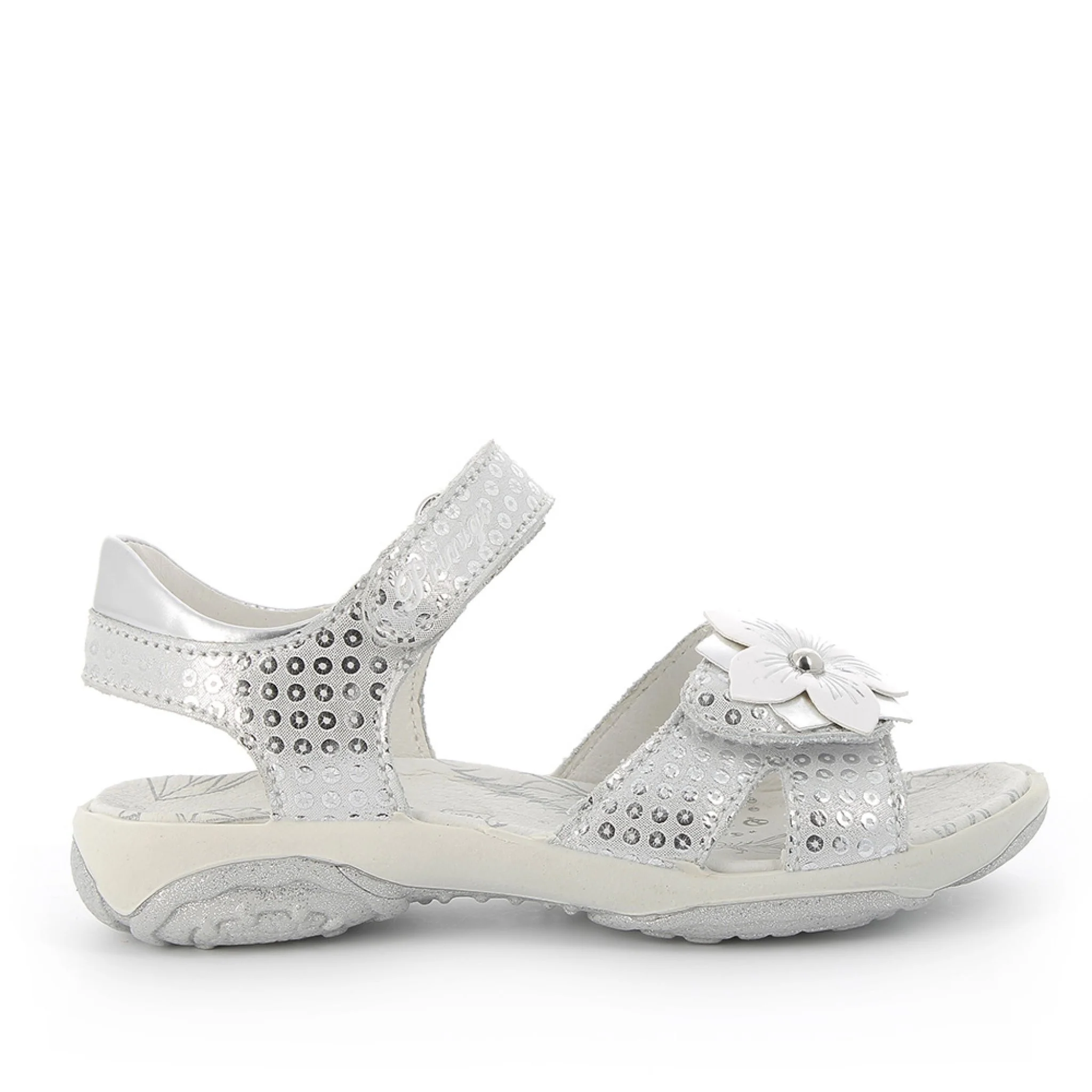 Sandalo con fiore regolabile con velcro alla caviglia e velcro sulla fascia. fondò sportivo