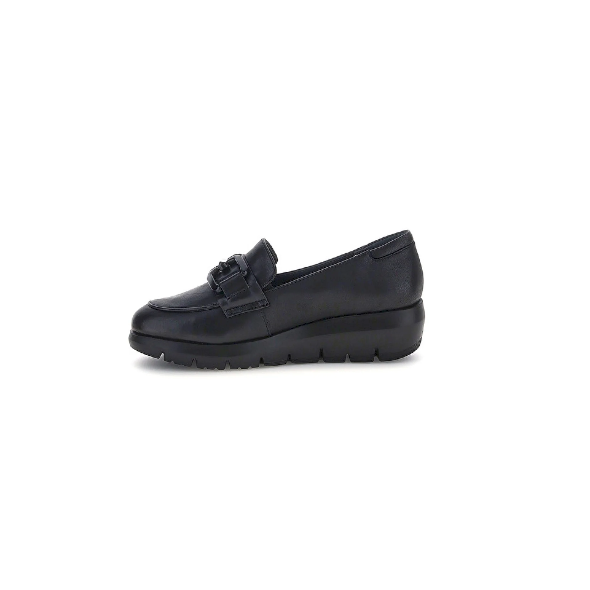 Mocassino da donna in pelle verniciata nera con vestibilità regular. questo modello combina perfettamente la comodità della linea plume, caratterizzata da una suola confortevole e voluminosa, con l’eleganza e la classe del mocassino. le linee semplici sono impreziosite dall’accessorio a catena, che conferisce un tocco sofisticato e ricercato a una calzatura versatile e alla moda. la tecnologia blusoft® supporta la tua camminata garantendo massimo comfort e ammortizzazione. suola in eva, altezza tacco (cm): 4.5.