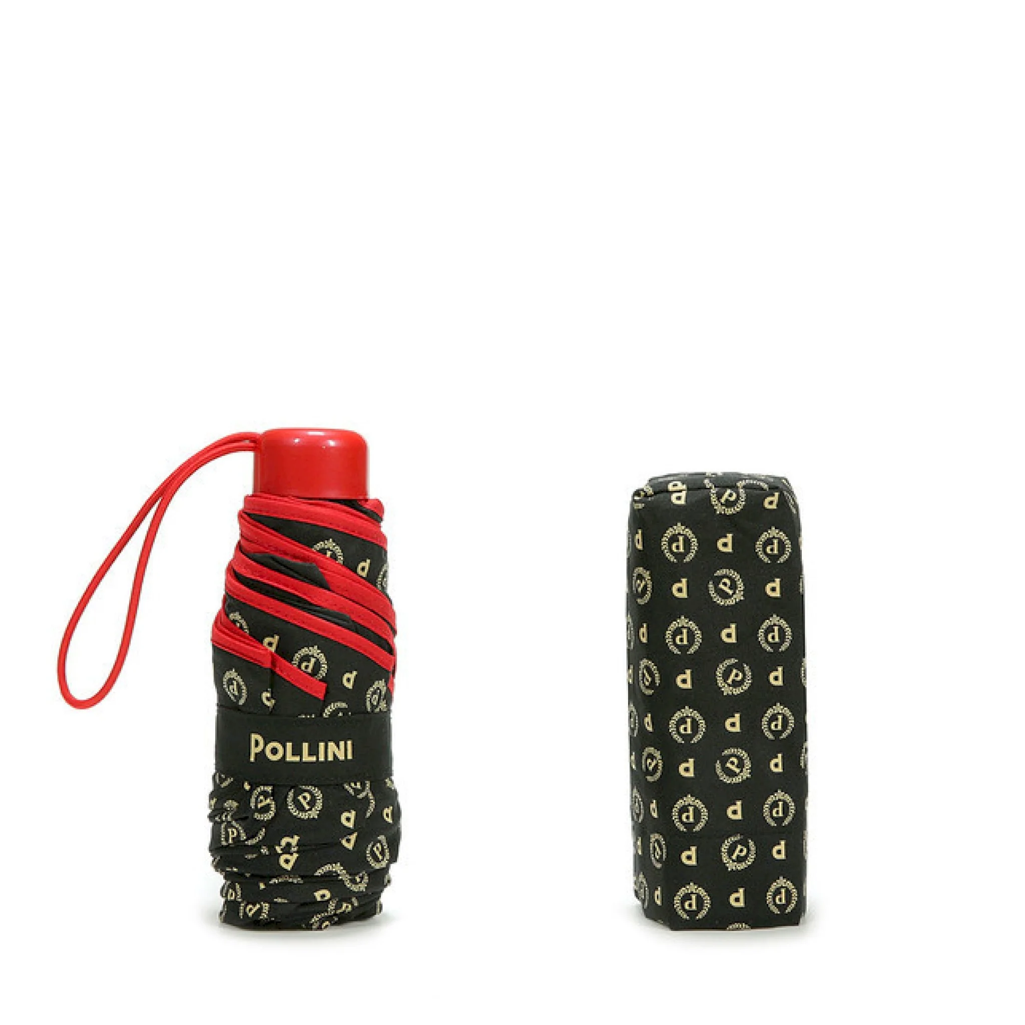 Ombrello richiudibile compatto stampa iconica all-over, profilato con contraasto di colore.