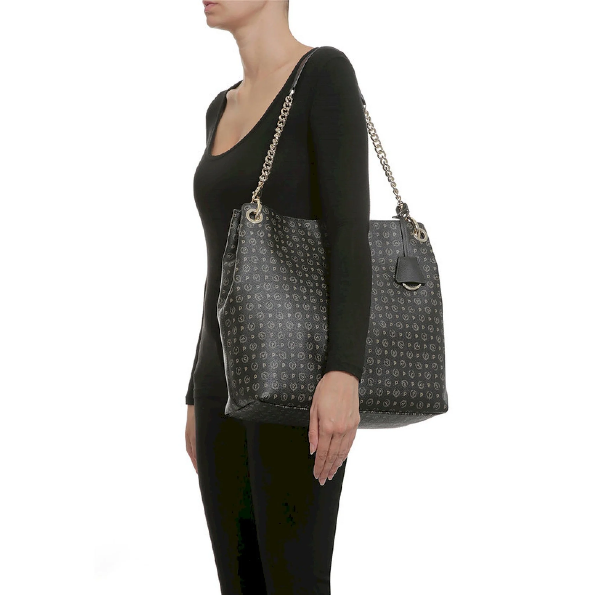 Shopping bag stampa all over con manico in pelle