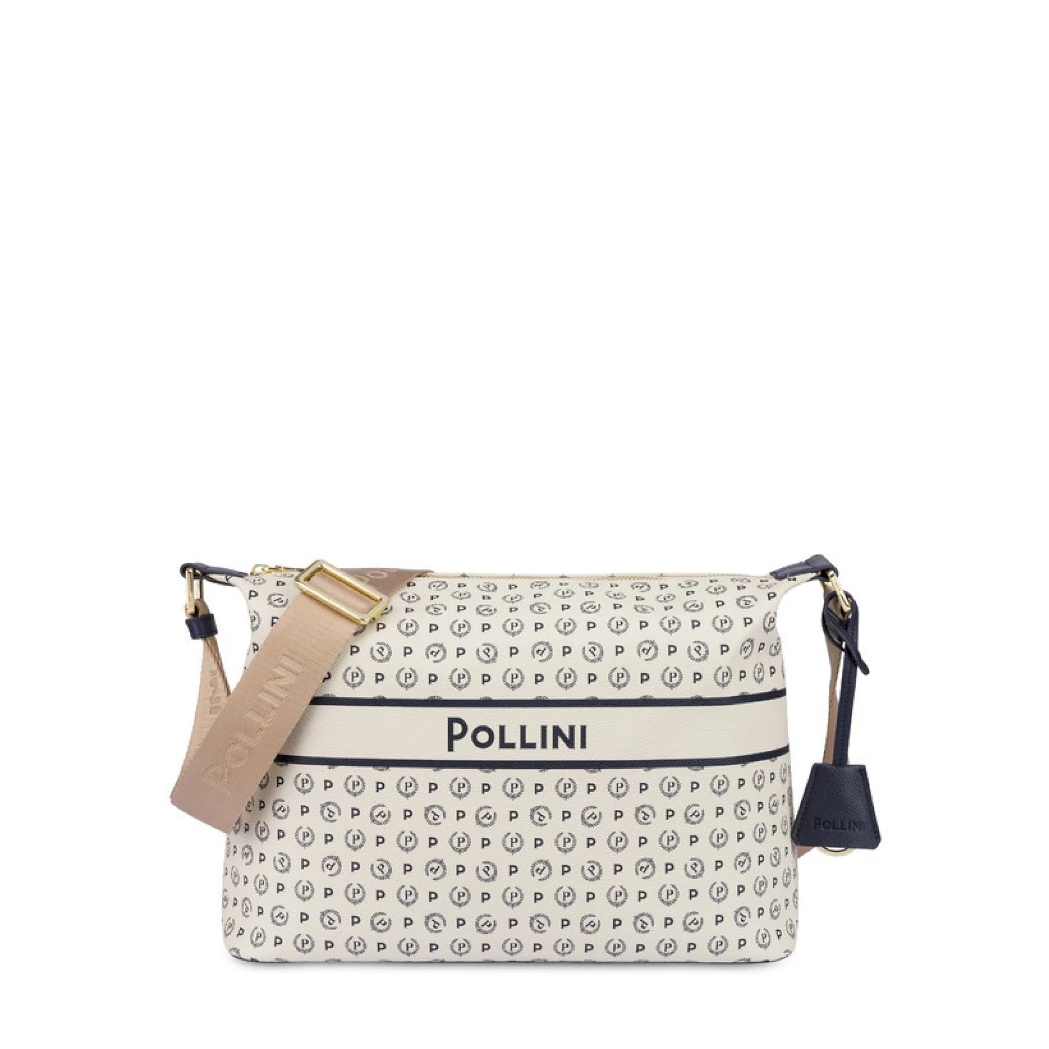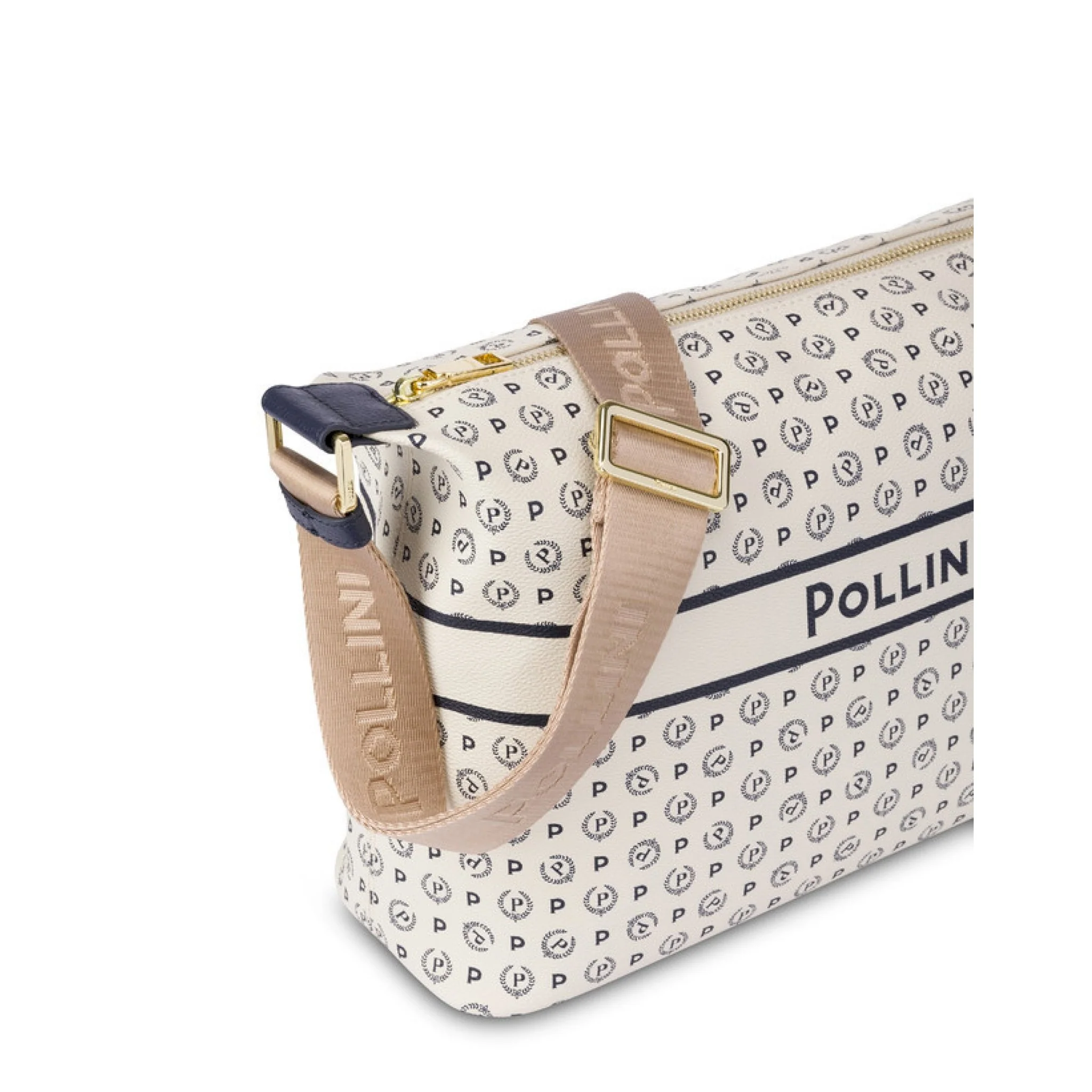 La borsa si caratterizza per il logo pollini lettering posto sul quadrante frontale. tracolla in nylon jacquard logato per doppia portabilità: a spalla e bandoliera.