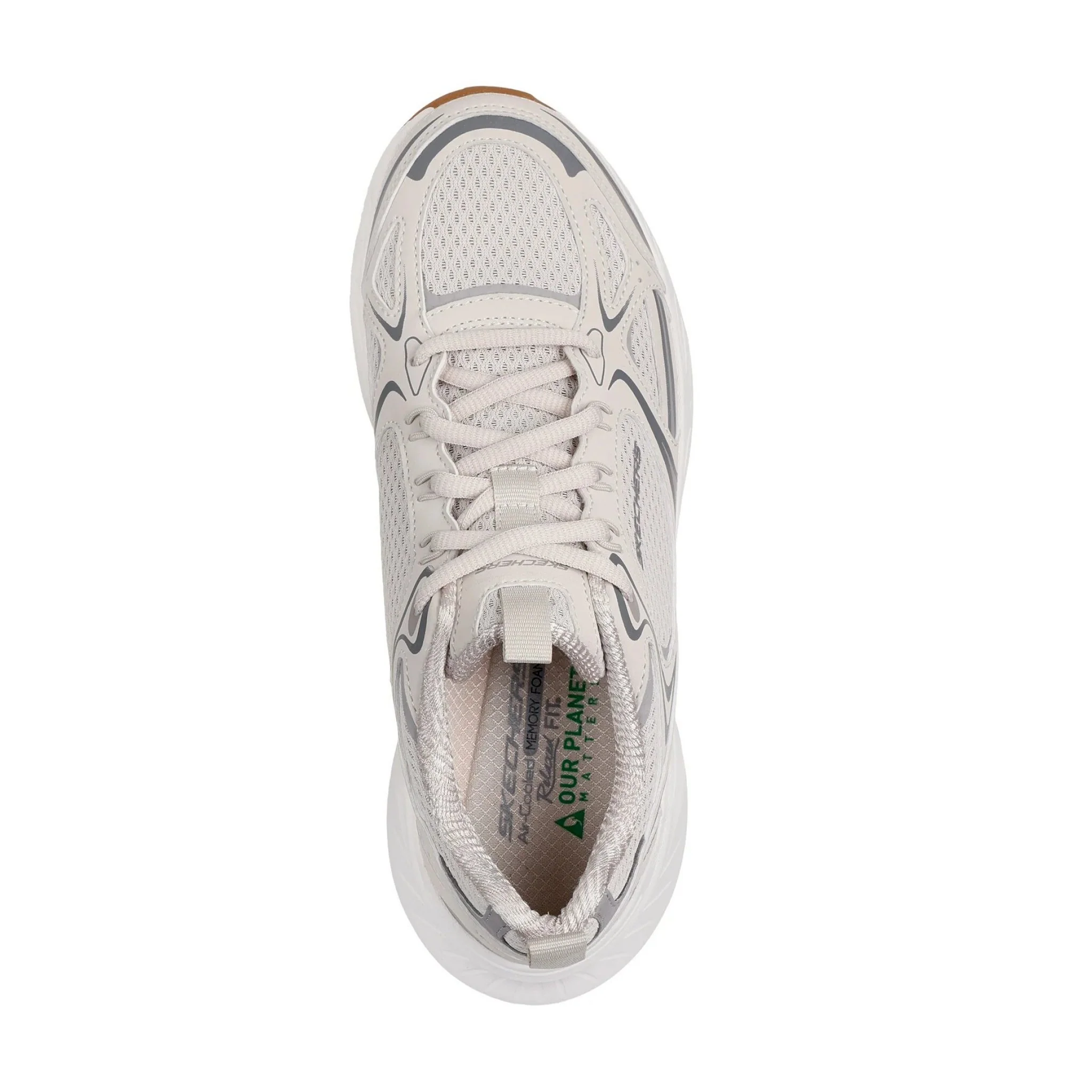 Migliora le prestazioni minimizzando il tuo impatto sull’ambiente con skechers relaxed fit™: edgeride – silver eclipse. realizzato con materiali riciclati, questo comodo modello vegan con lacci presenta una tomaia in mesh con lacci e applicazioni in duraleather tecnica, un’intersuola ben ammortizzata e una soletta in skechers air-cooled memory foam™. our planet matters™: good for your feet. good for the world.