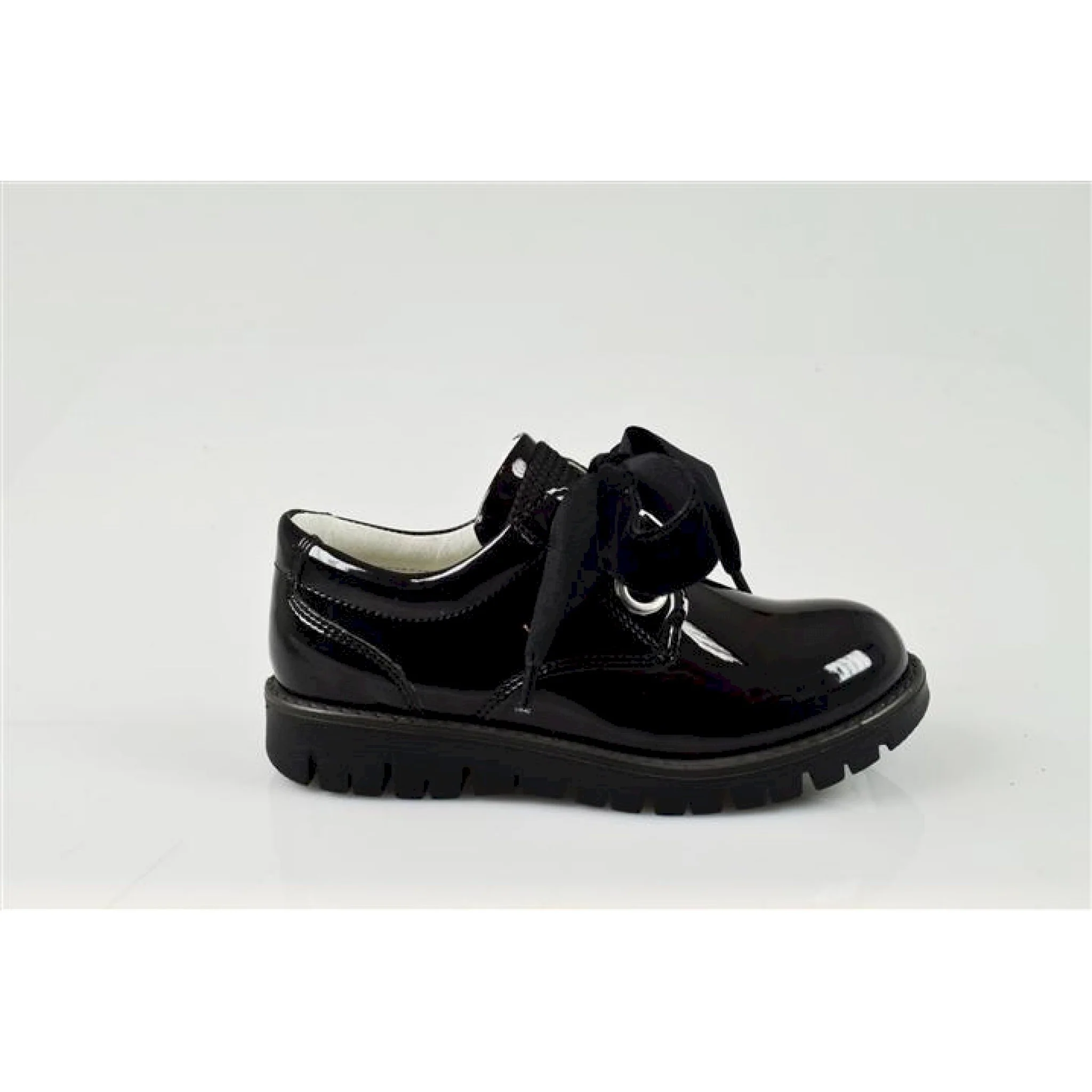Derby in vernice c/lacci in raso