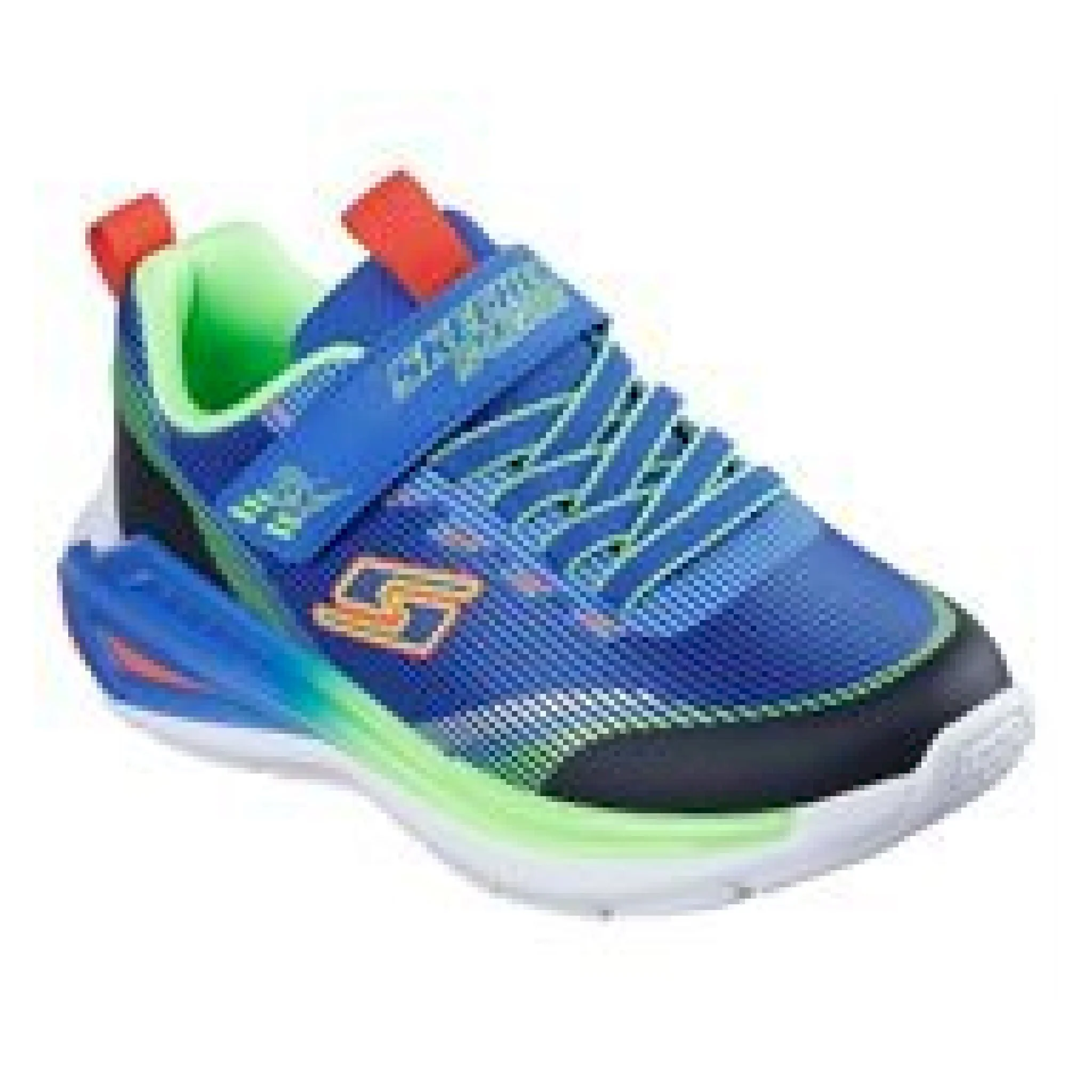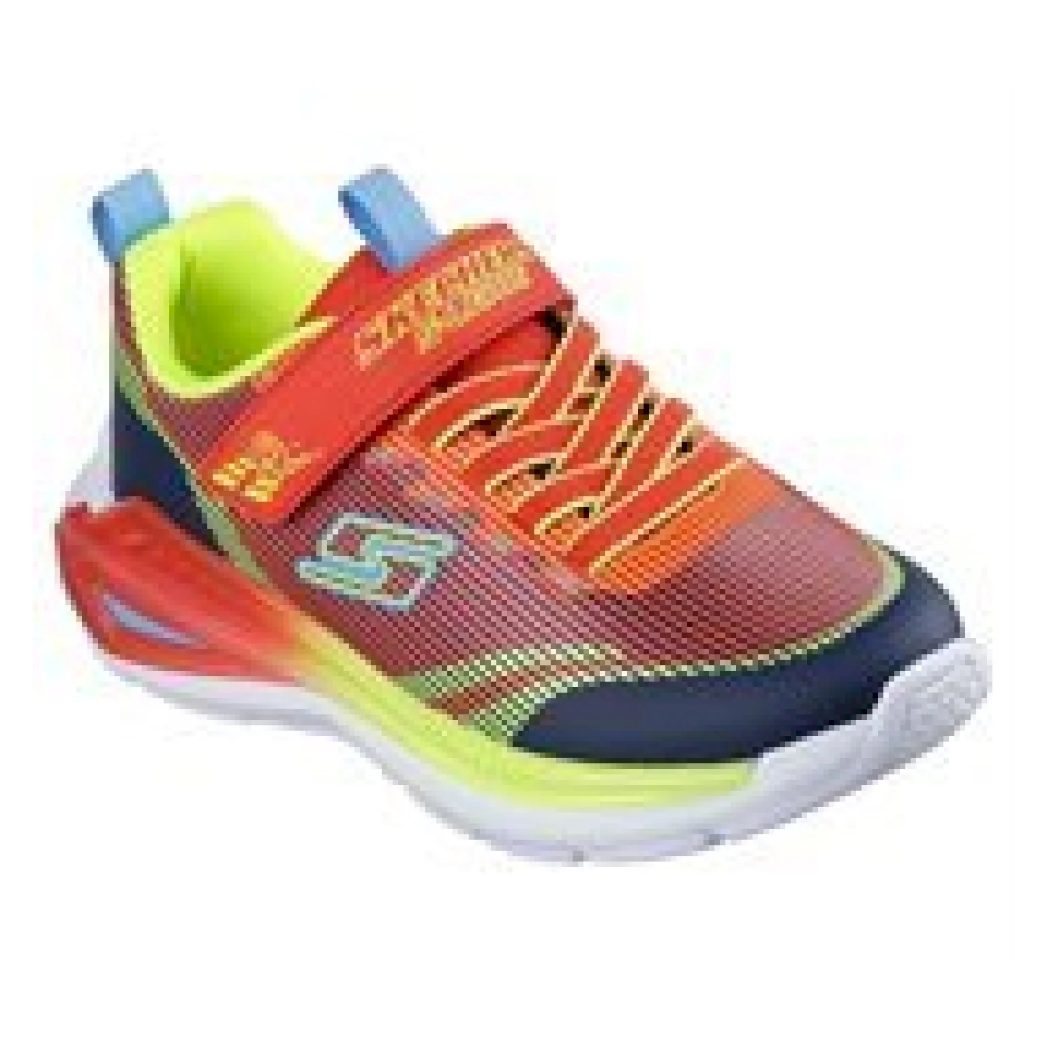 Illumina il parco giochi con un divertimento sgargiante con skechers s-lights®: tri-namics 2.0. questo modello skechers con chiusura adattiva presenta una tomaia leggera in mesh e materiale sintetico con stampa tattile, lacci elastici, cinturino regolabile sul collo del piede e un’intersuola geometrica luminosa.