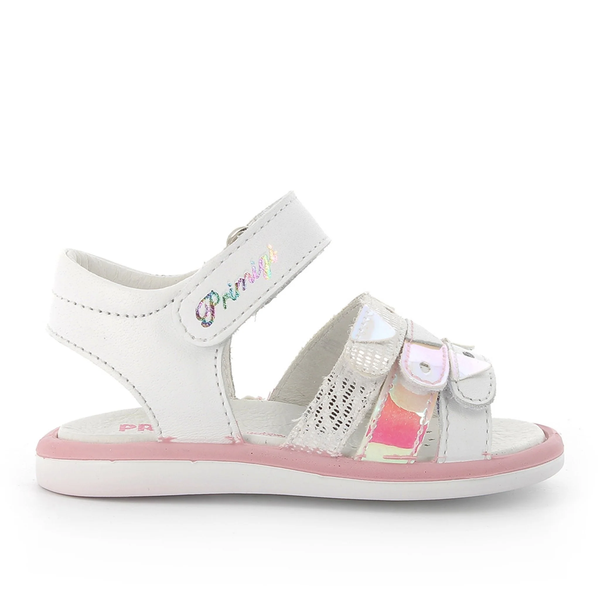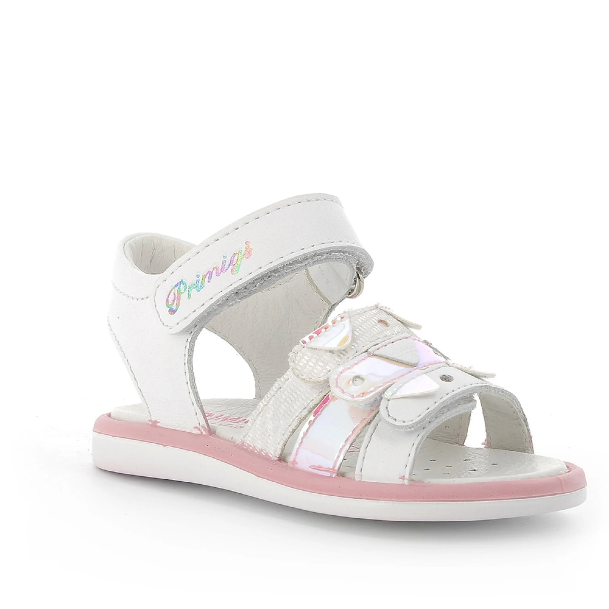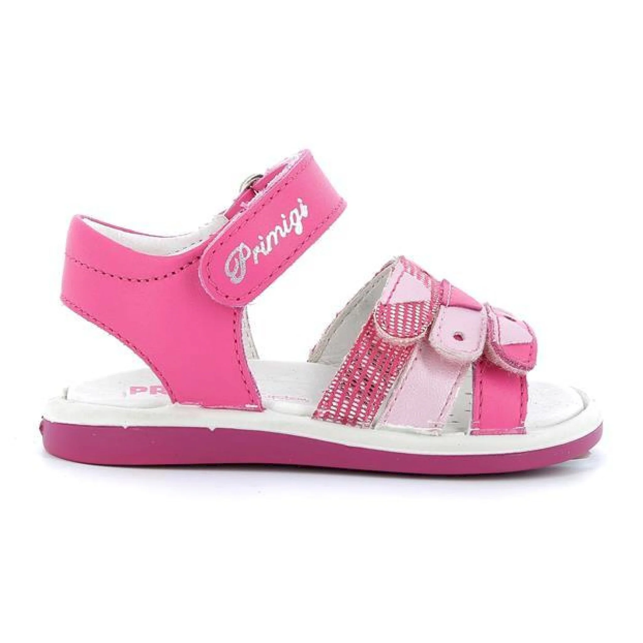 Sandali per bambini della collezione primigi. il modello è realizzato con una combinazione di vera pelle e materiale tessile.