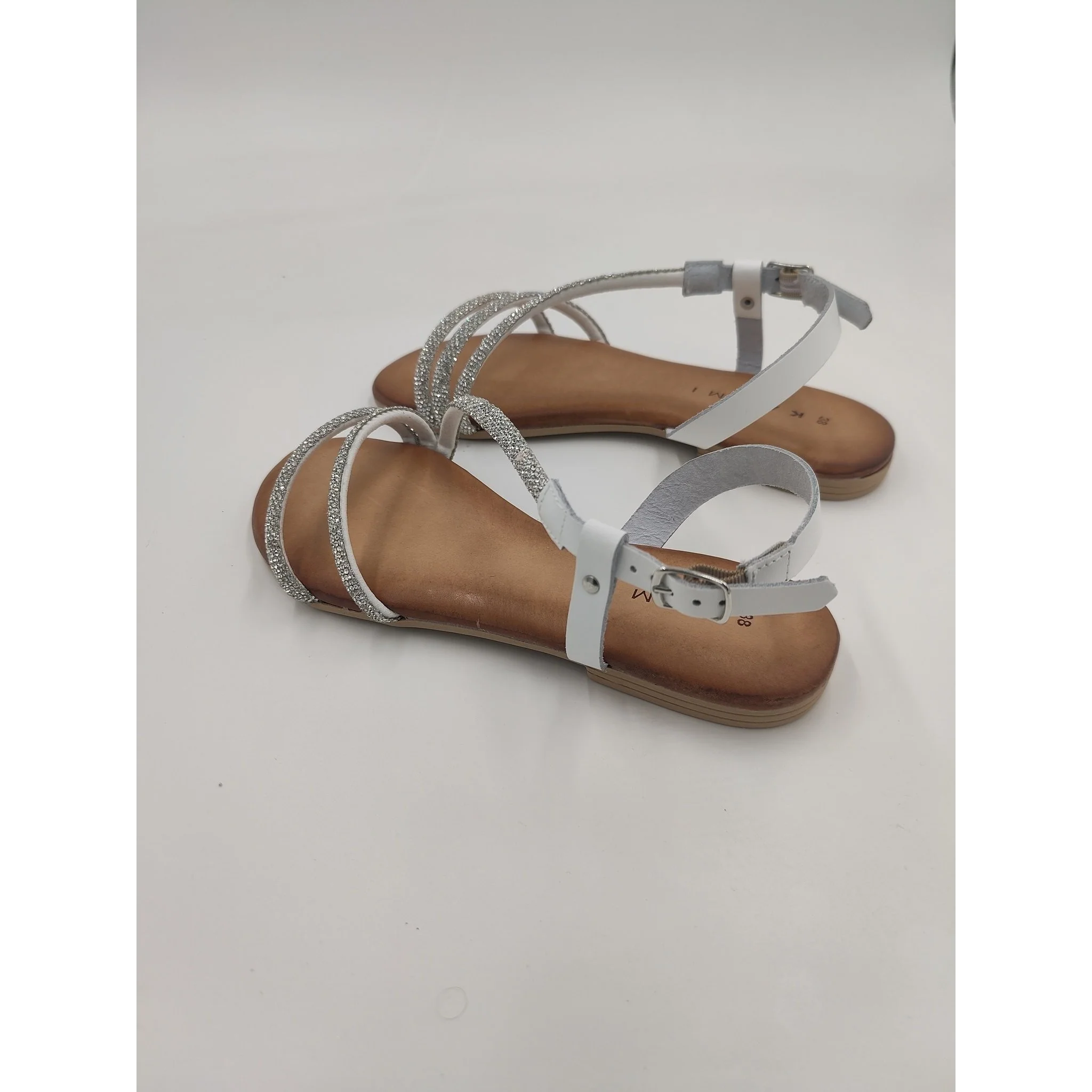 Sandalo in pelle con brillanti sottopiede memory f.do gomma flessibile