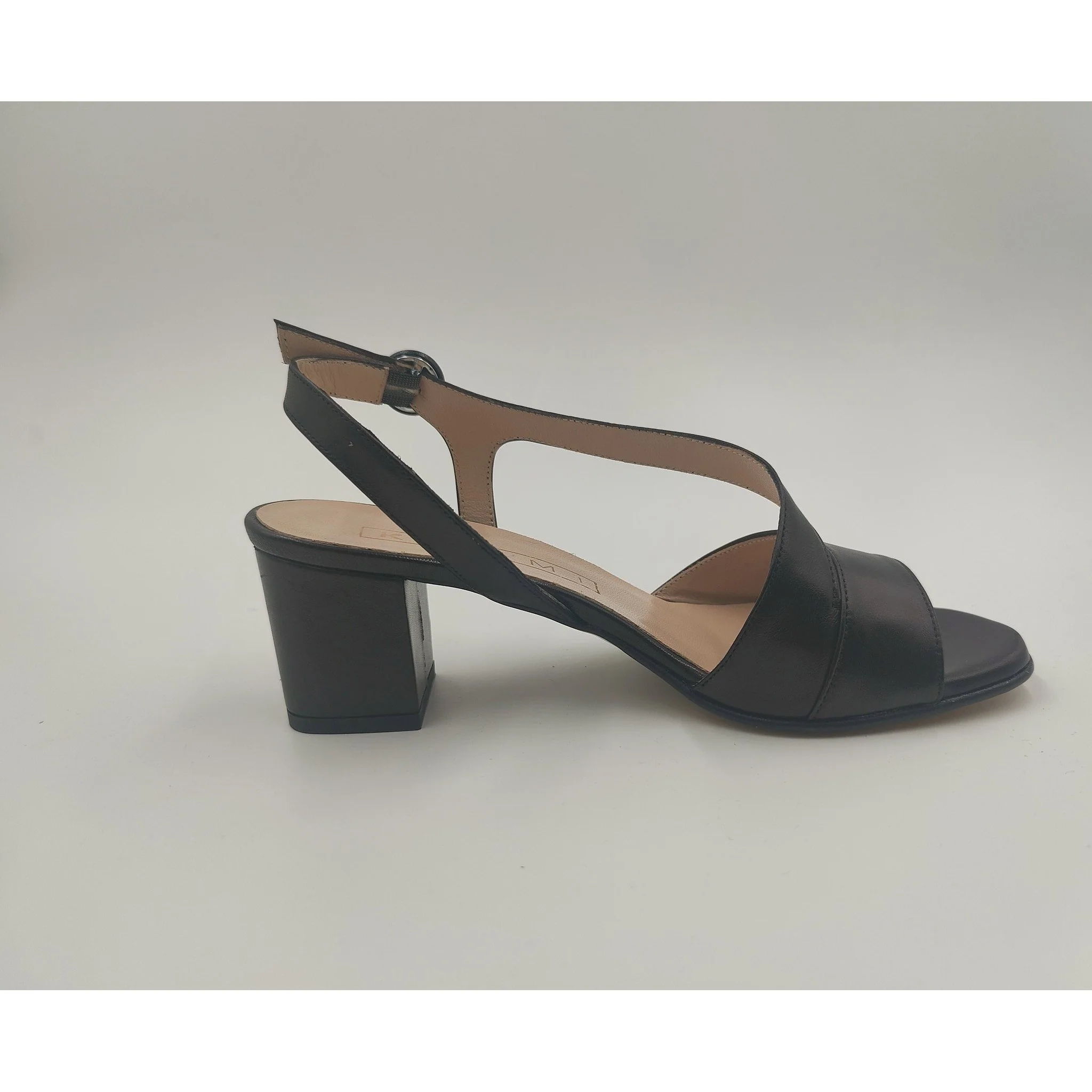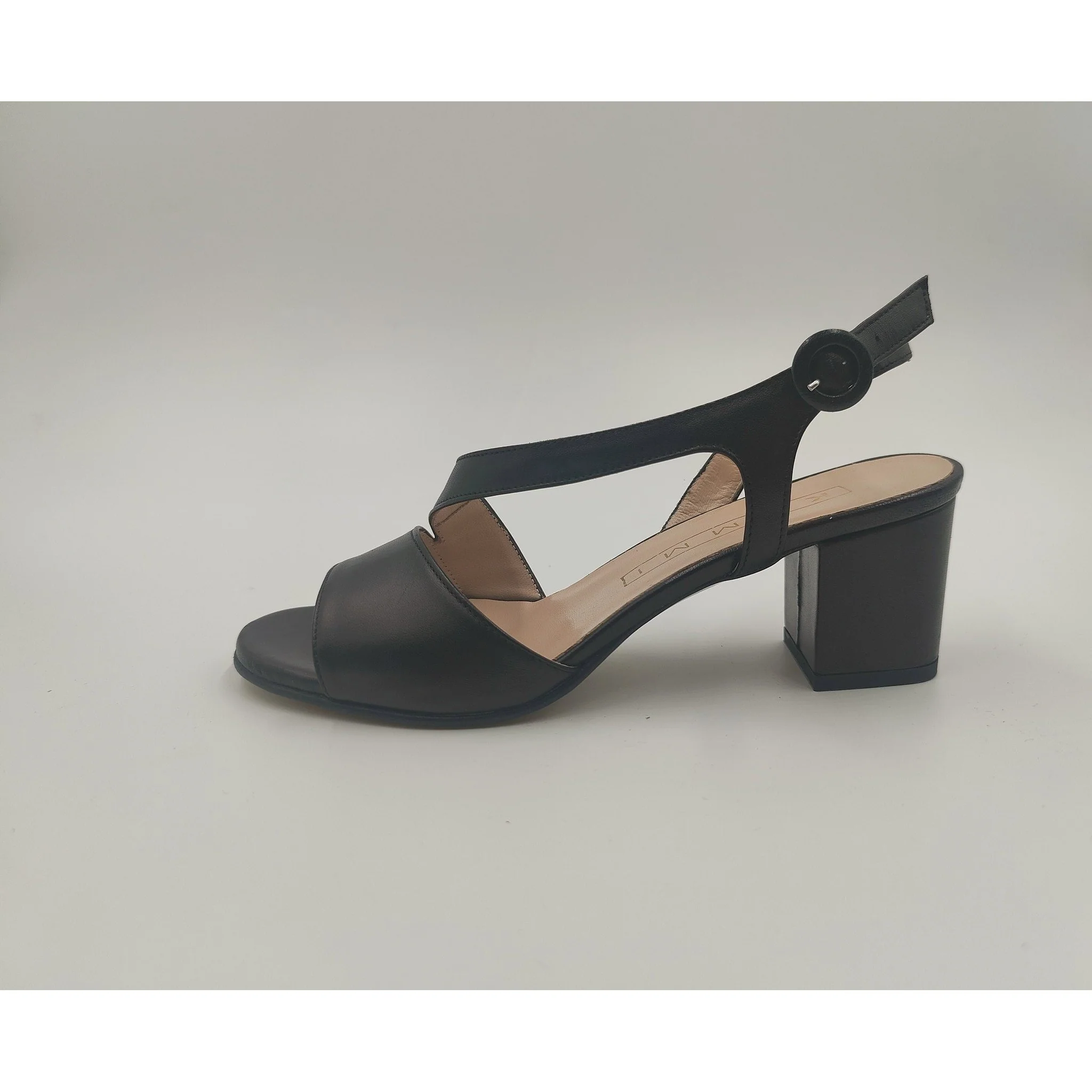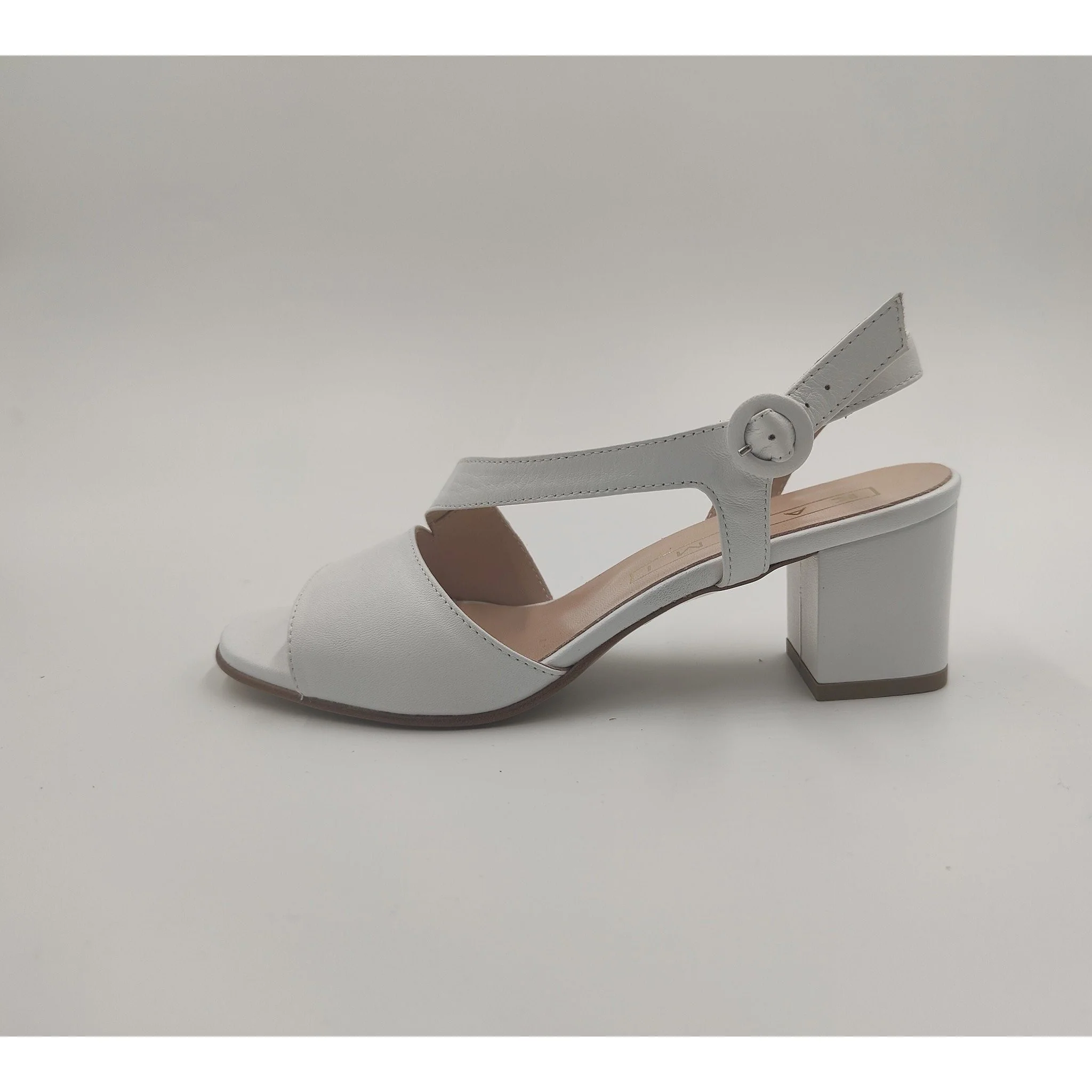 Sandalo in pelle , cinturino regolabile con fibbia ricoperta in pelle laminata, fodera e sottopiede in pelle, suola in altri materiali, tacco ricoperto in pelle laminata altezza cm 5,7. made in italy