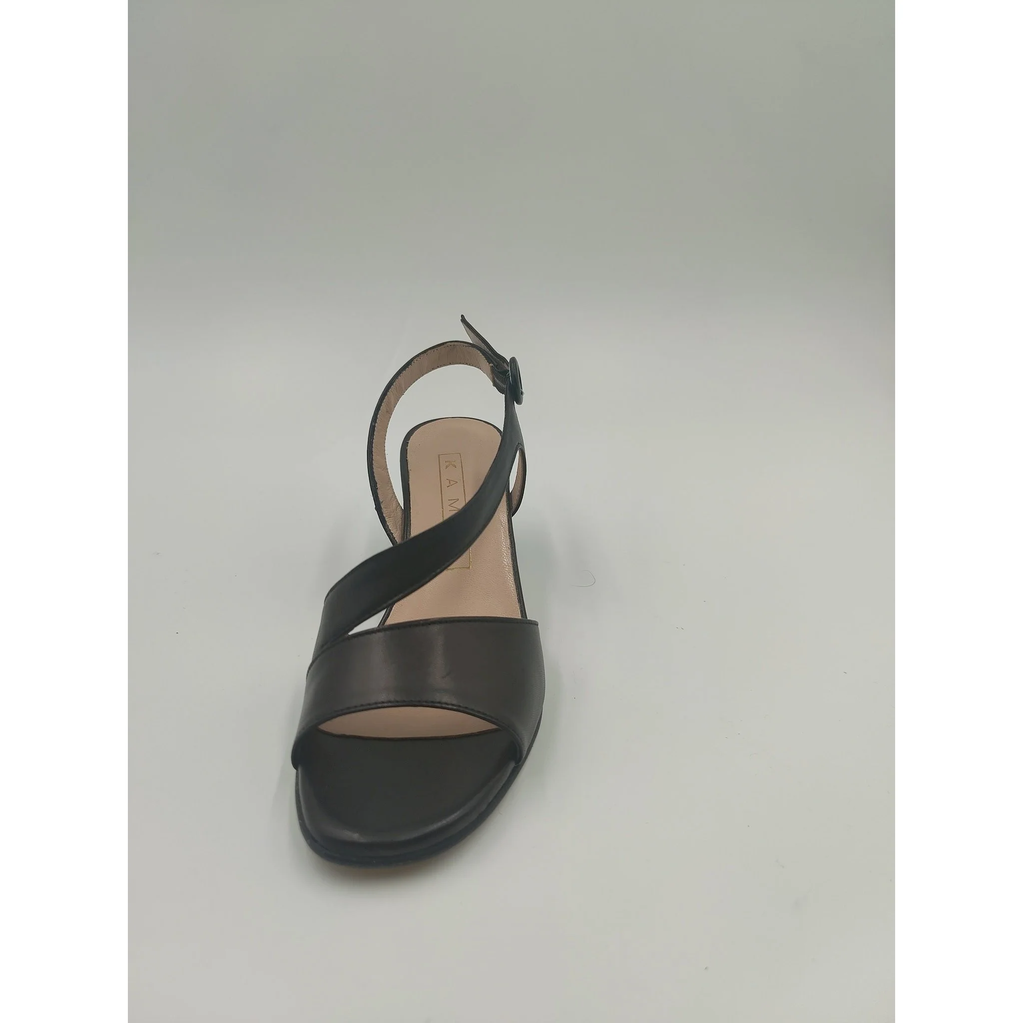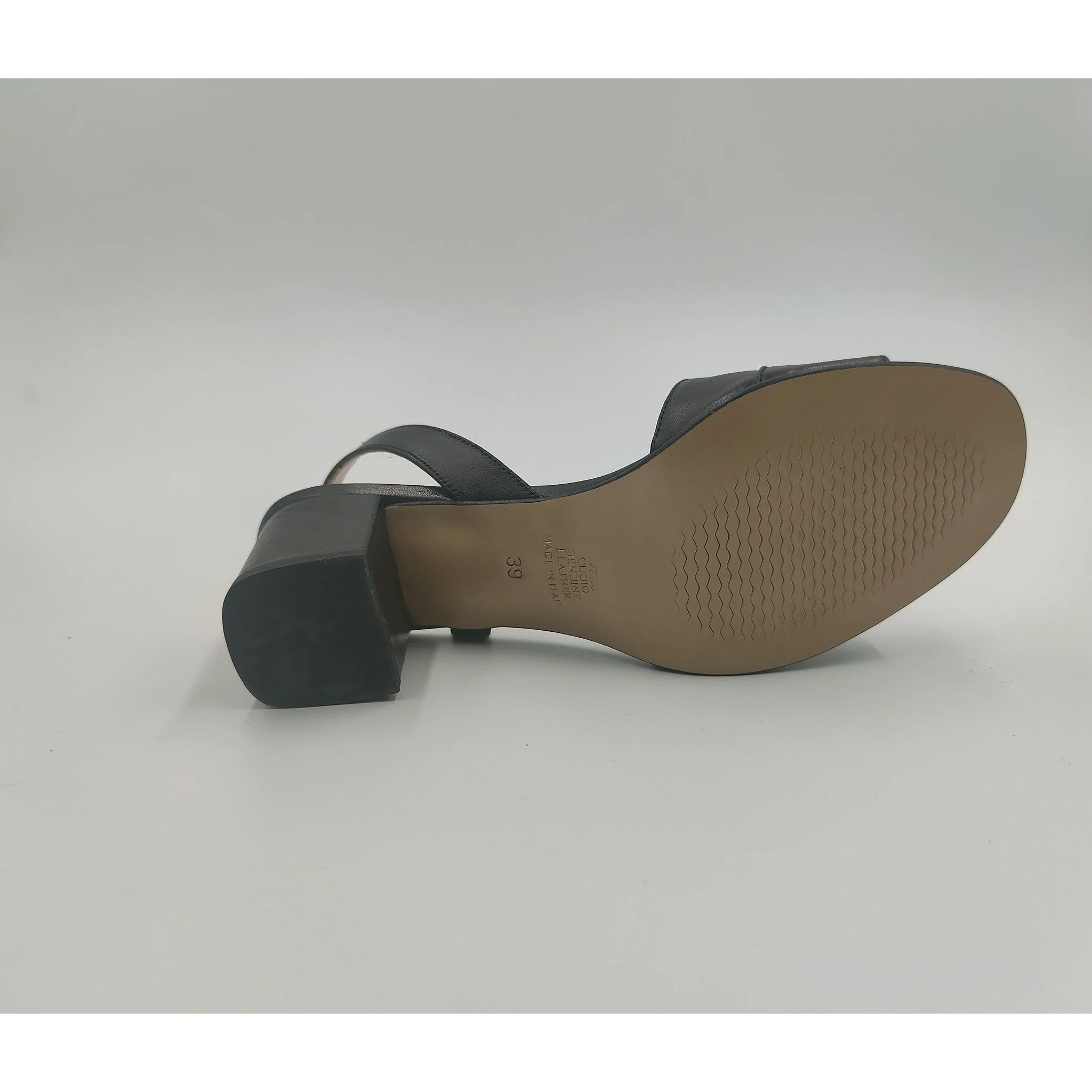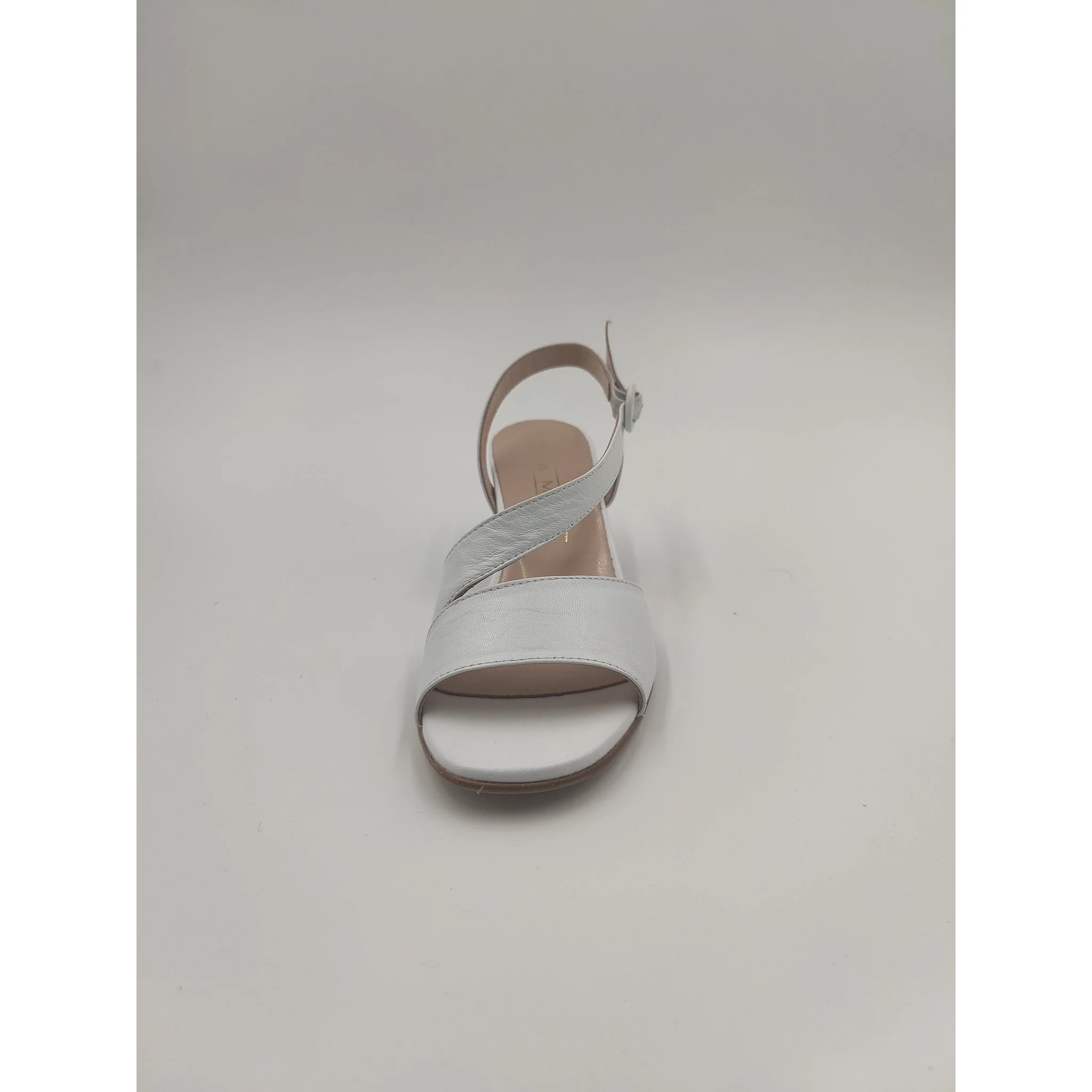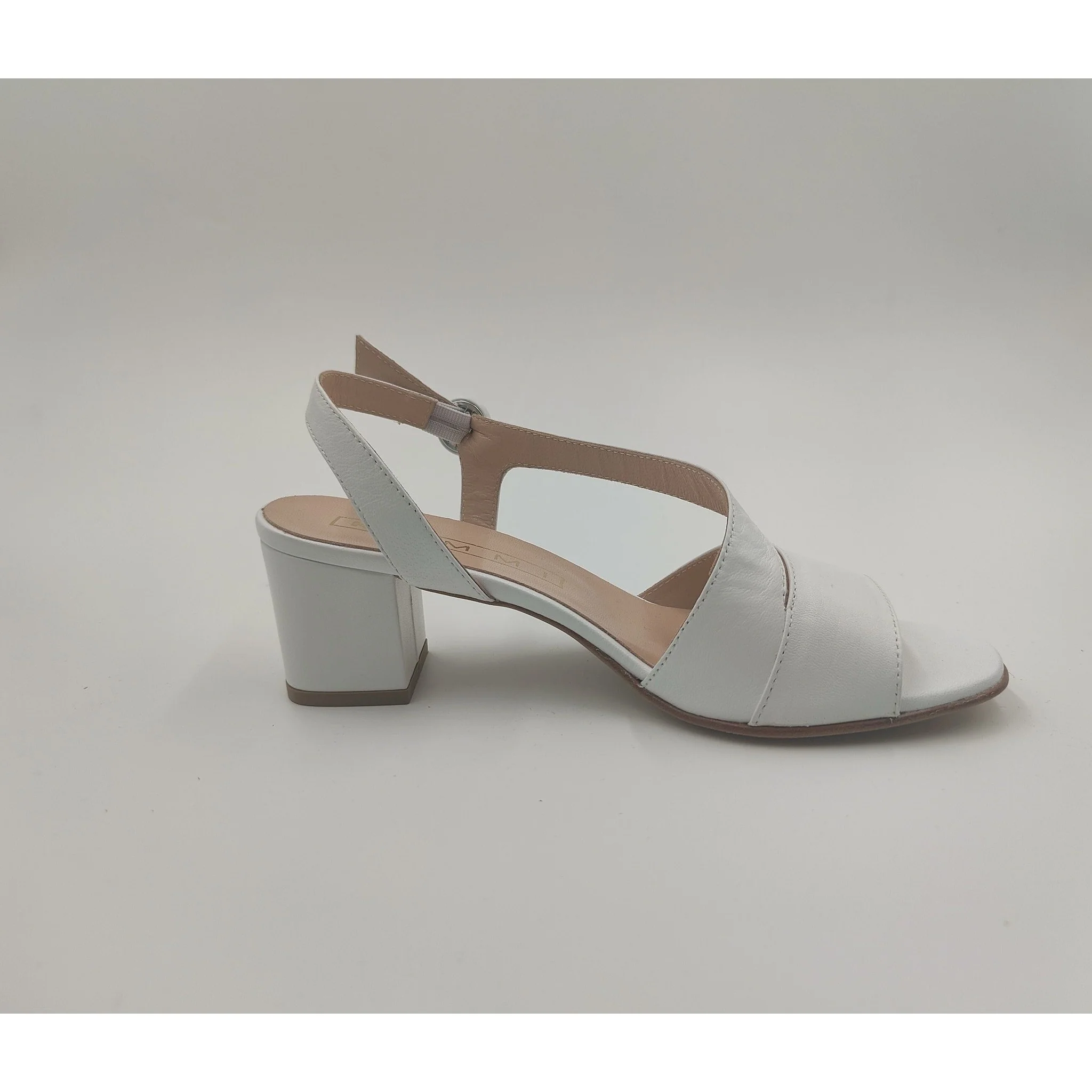 Sandalo in pelle , cinturino regolabile con fibbia ricoperta in pelle laminata, fodera e sottopiede in pelle, suola in altri materiali, tacco ricoperto in pelle laminata altezza cm 5,7. made in italy