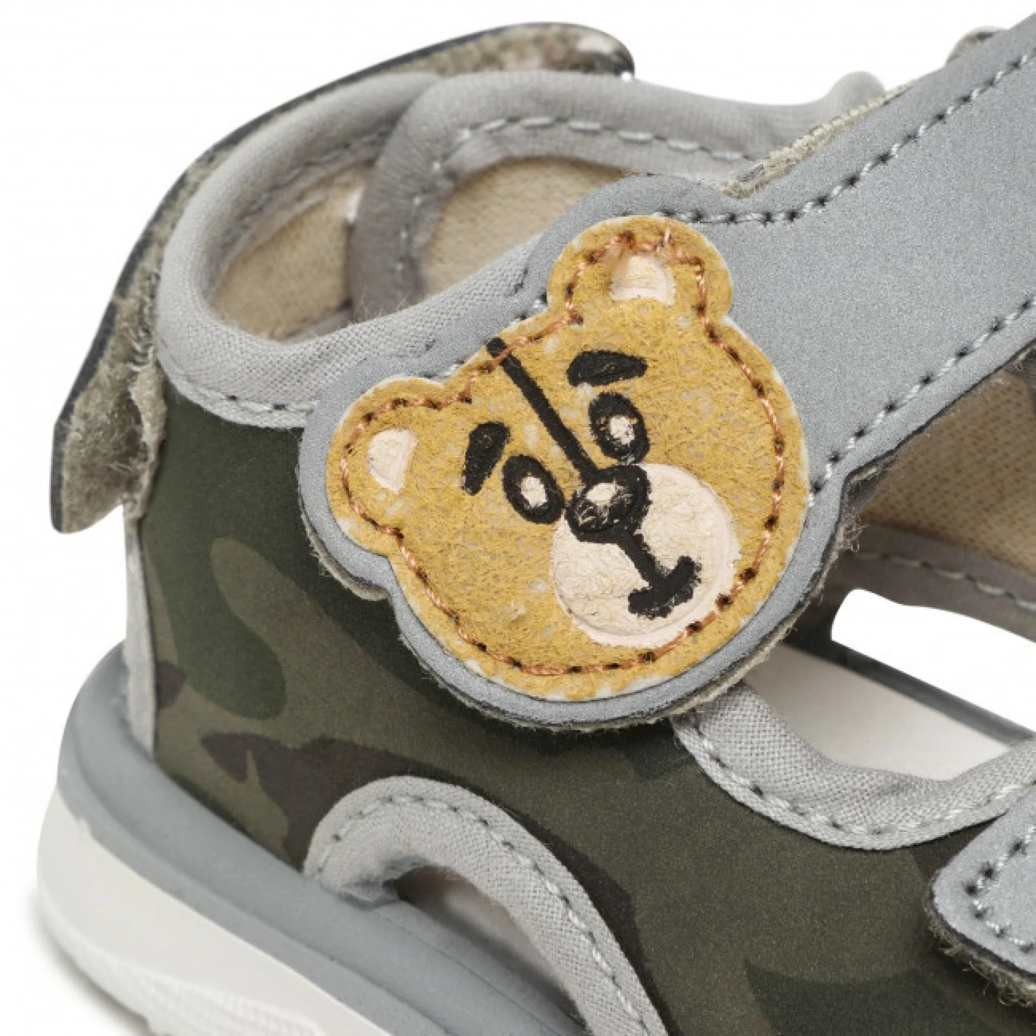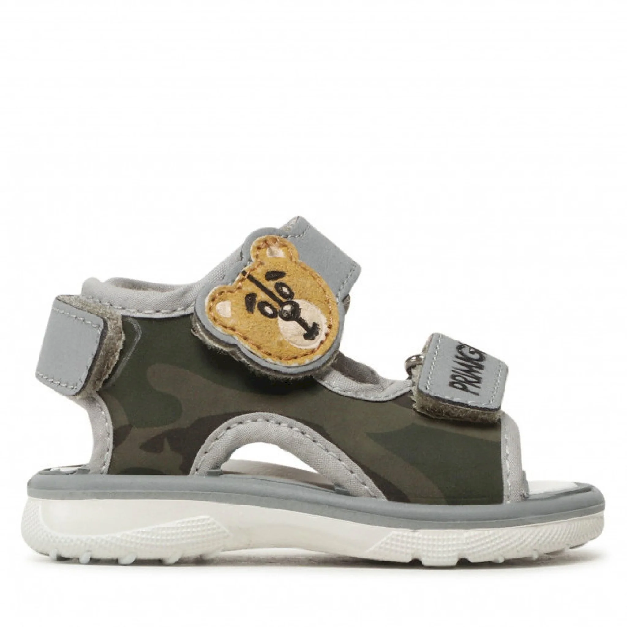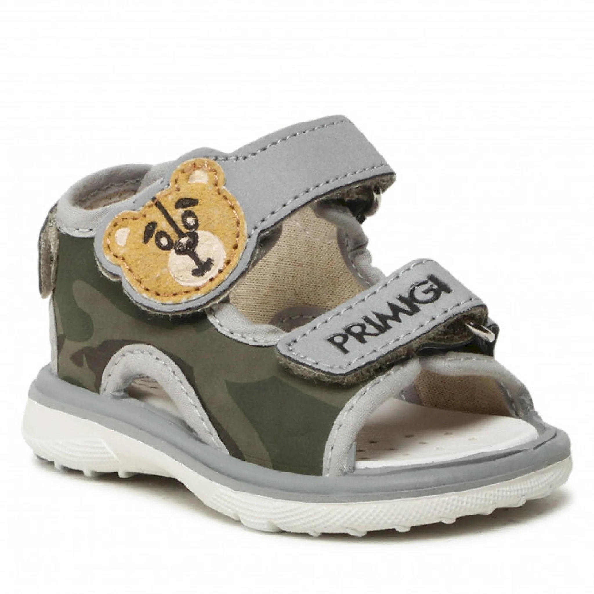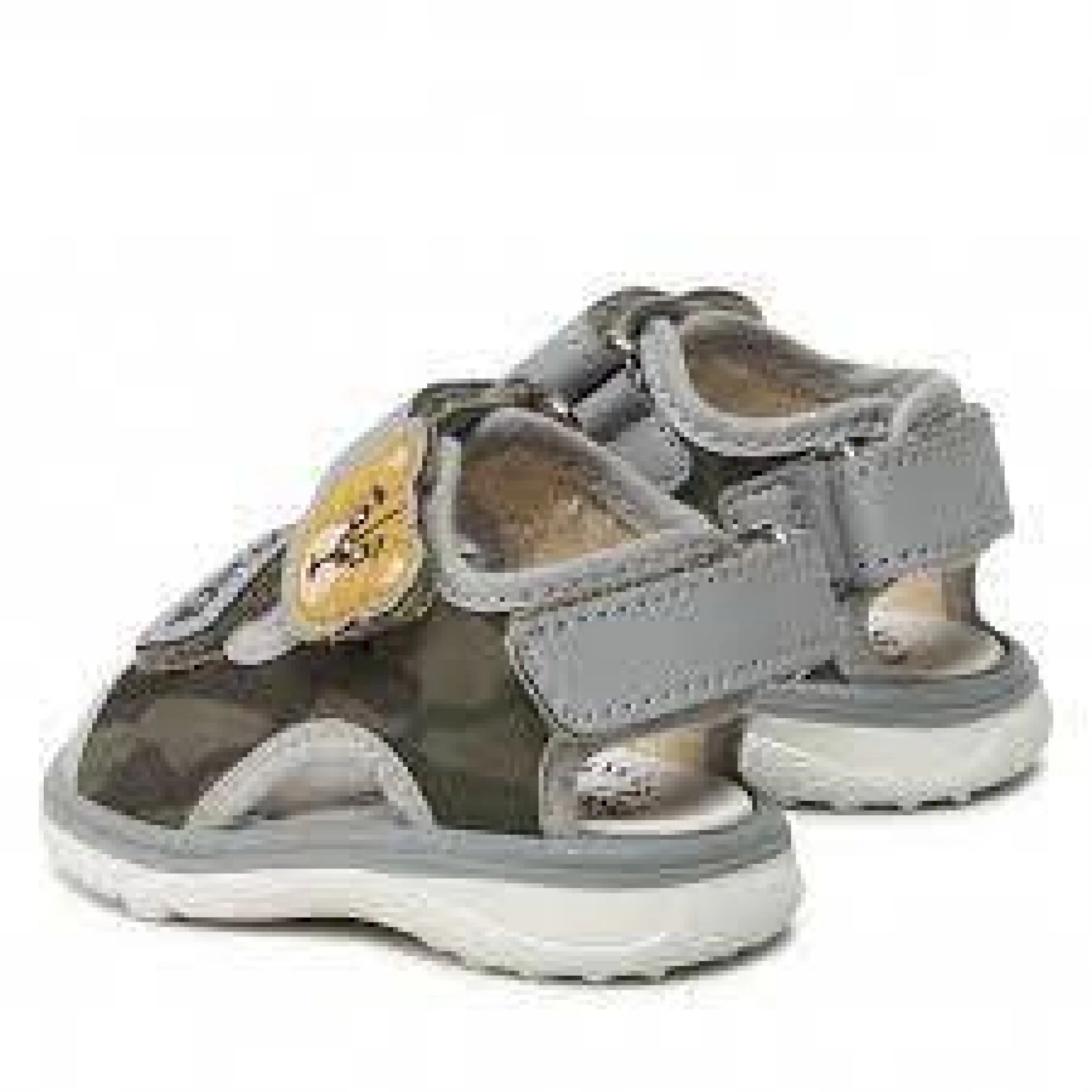 Sandalo primigi primi passi da maschietto grigio a strappi con fantasia militare.