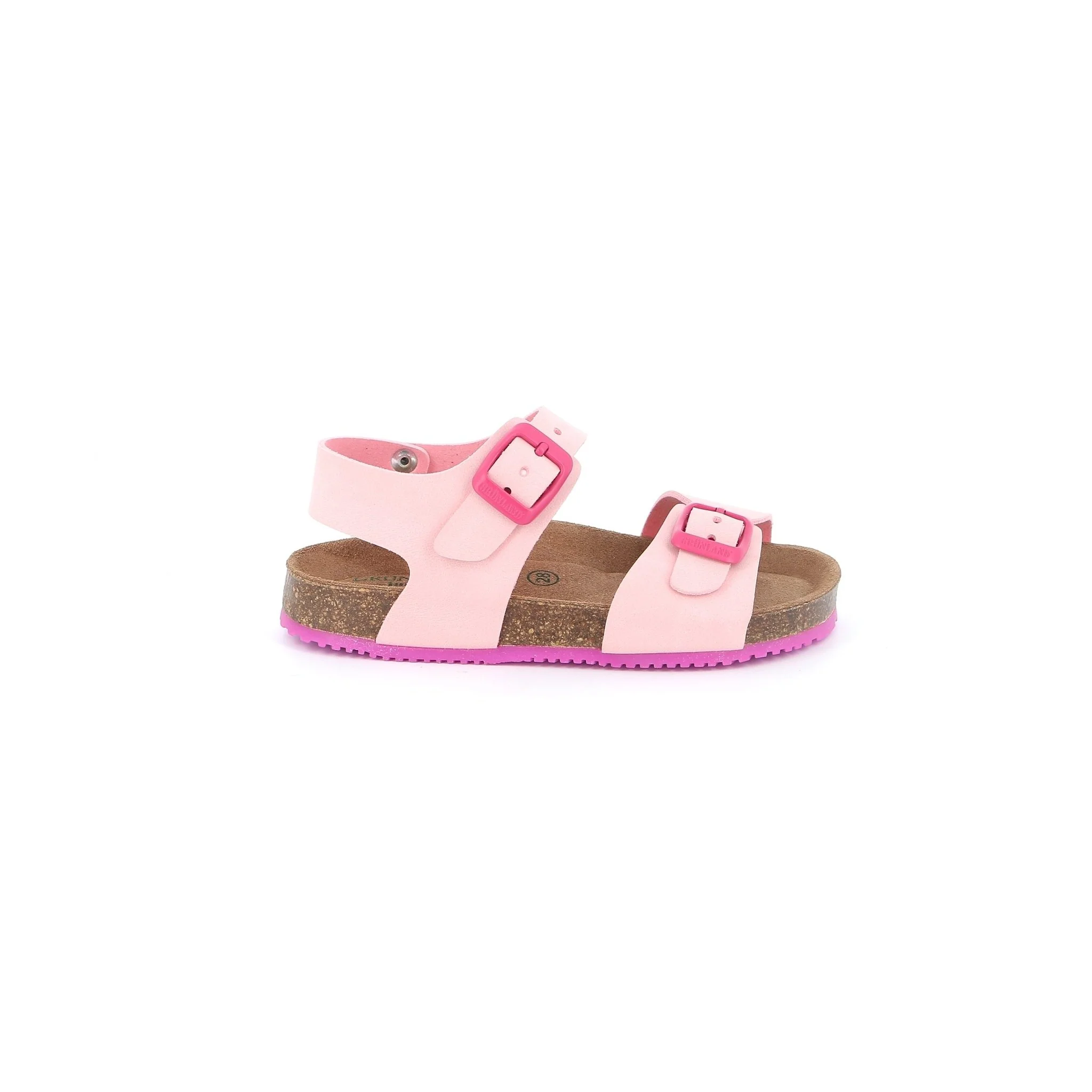 Un plantare extra soffice con struttura in sughero naturale che si prenderà cura dei piedini dei vostri bimbi. questo è il segreto dietro a questo modello meta di grünland. la suola in gomma antiscivolo risulta perfetta per tutte le avventure estive ed è tono su tono con le fibbie superiori