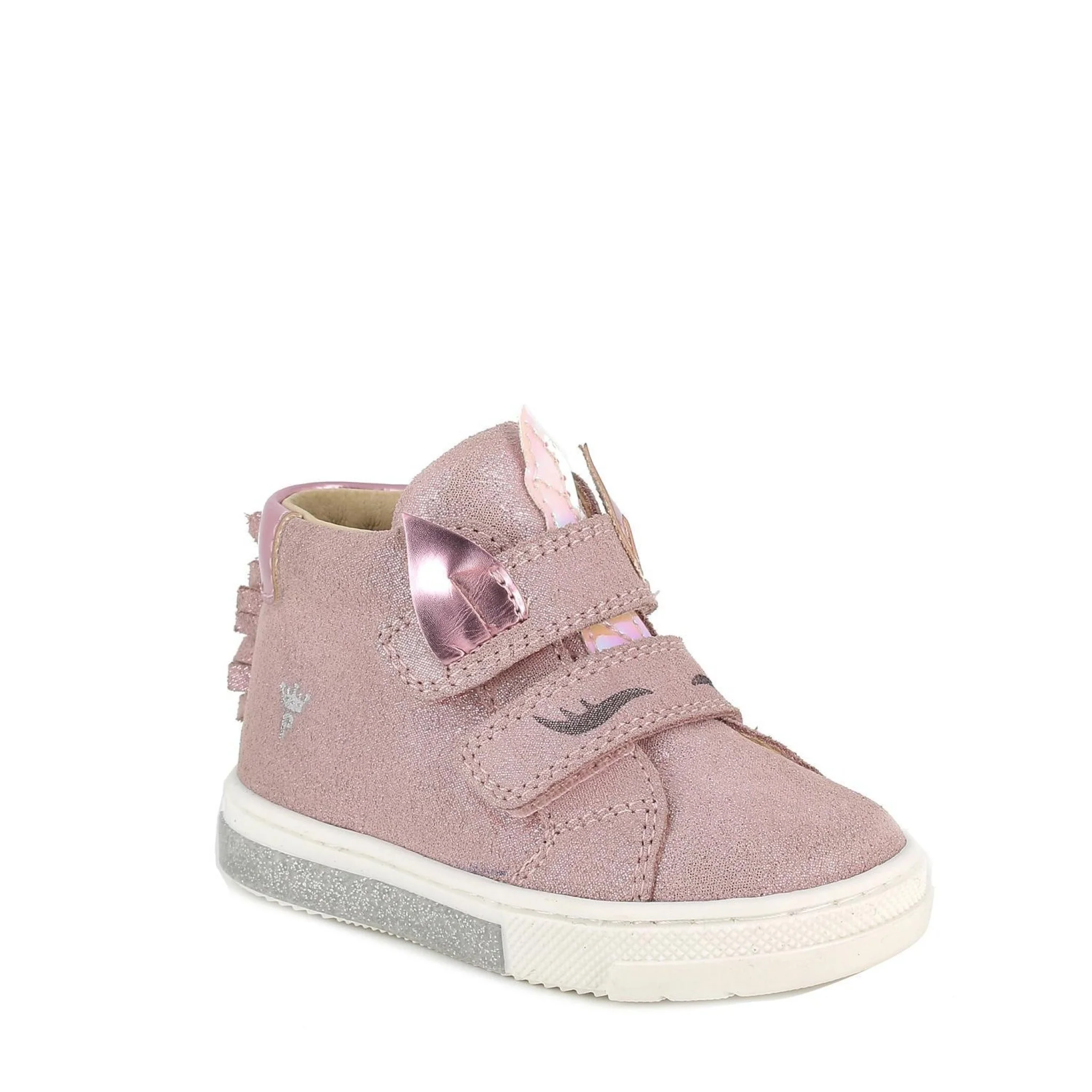 Sneakers con animaletto concepite per sostenere al meglio i suoi primi passi. queste scarpe da bambina assicurano il giusto sostegno al piedino grazie alle imbottiture attorno alla caviglia e al rinforzo posteriore. la suola piatta e morbida offre un appoggio stabile ed accompagna i movimenti nel modo adeguato. la calzata è facilitata dal taglio derby del modello e la regolazione è pratica e veloce grazie ai doppi strap. il sottopiede anatomico è estraibile e rivestito in pelle per assicurare traspirabilità e igiene.